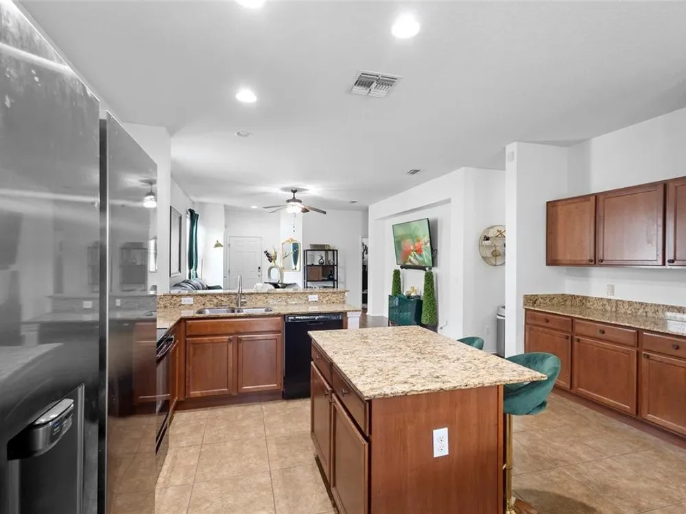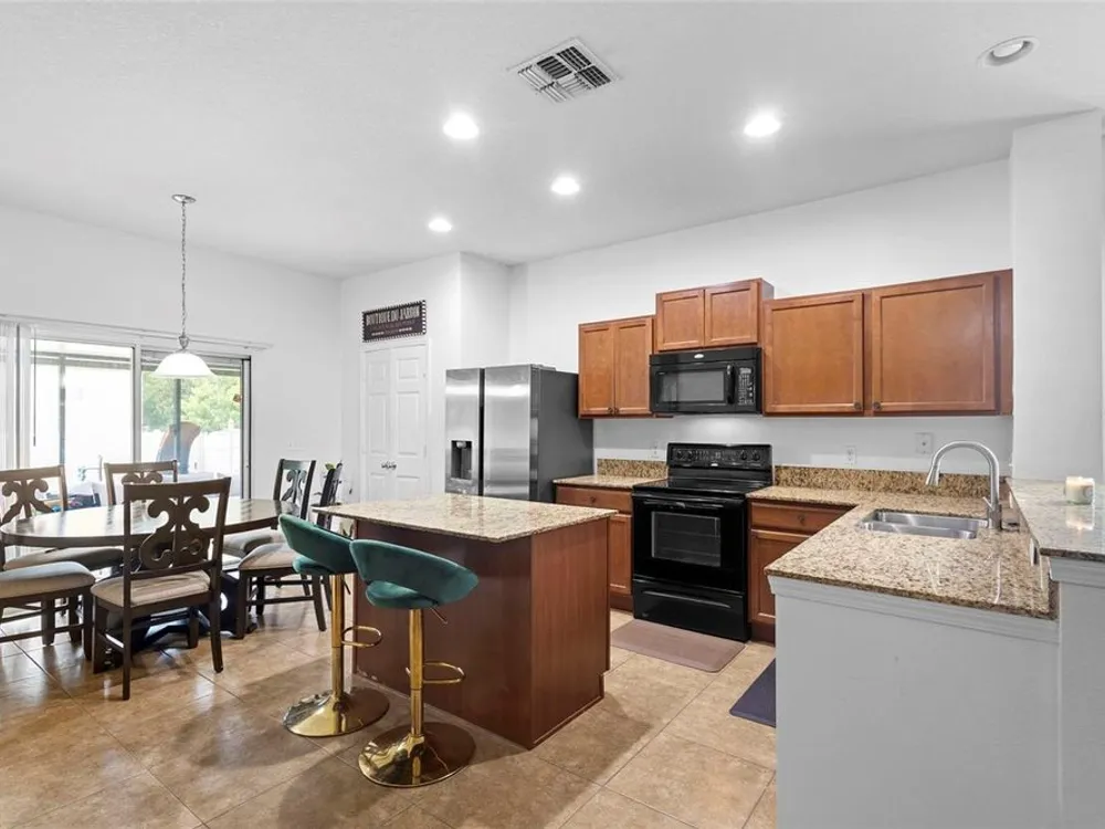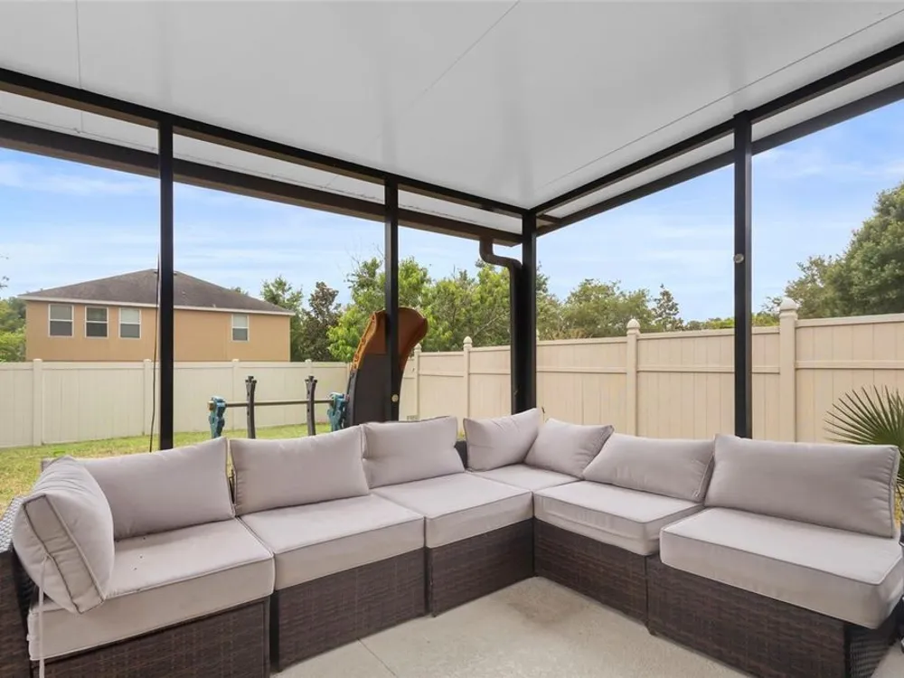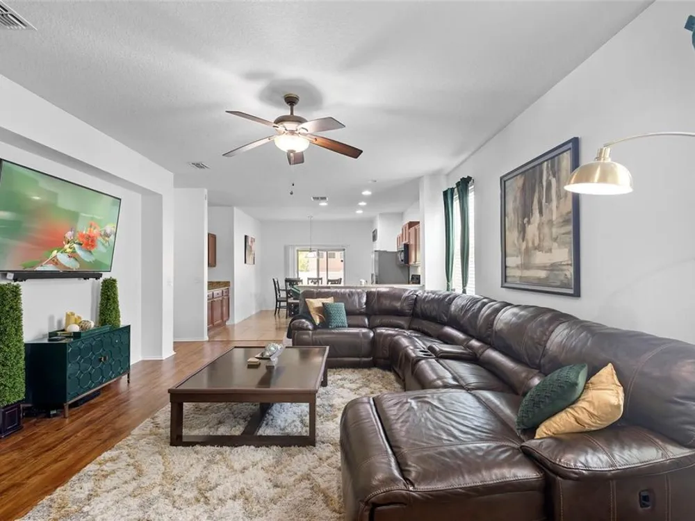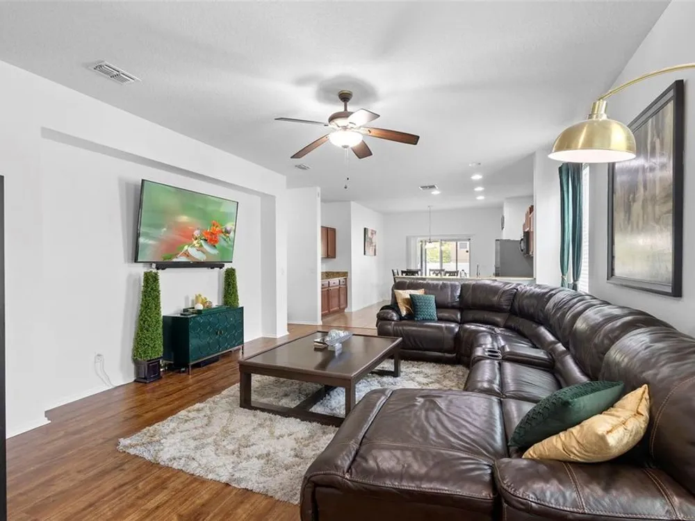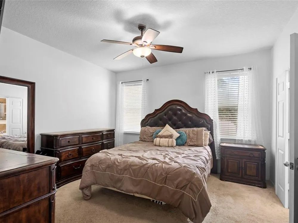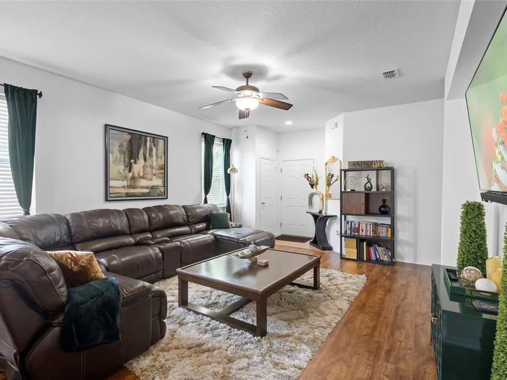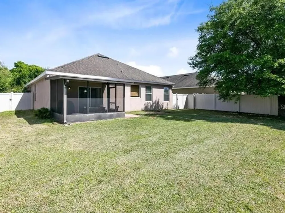 Welcome to the stunning community of Sullivan Ranch, where natural beauty, scenic views and exceptional amenities create the perfect place to call home! This cozy, 4 bedroom and 2 bathroom home offers 1,670 square feet of living space for all to enjoy. Upon entrance, you are greeted with a bright and open-concept great room that seamlessly flows into the kitchen and dinette. This spacious kitchen features granite countertops, an island, a bar top, and plenty of cabinet space. Adjacent to the main entertaining area is the second and third bedroom with a nearby guest bathroom. On the other side of the house sits the owner retreat. This spacious getaway includes a walk-in closet with a beautiful en-suite bathroom which has a garden tub, a walk-in shower, and double vanity. Next to the primary bedroom is the fourth bedroom which could be perfect for additional flexibility. Relax outside with the screened-in lanai and a spacious, fenced-in backyard. Perfect for pets, entertaining, or any outdoor activity. Sullivan Ranch community is known for its breathtaking views and amenities. The 5,000 sq ft clubhouse features a spacious outdoor living area with a double-sided fireplace and stunning views of the lake and the iconic wooden bridge. Beneath the bridge, a picturesque waterfall that flows into the lake, creating a peaceful, storybook-like setting. Miles of paved walking trails wind through the scenic community, showcasing its lush landscaping and serene atmosphere. Additional amenities include a junior-size Olympic swimming pool, a state-of-the-art fitness center, a large park complete with a splash pad, and a dedicated dog park. Conveniently located near major highways, top-rated schools, and shopping, this home offers easy access to everything you need. The historic downtown Mount Dora, is known for its charming boutiques, restaurants, and festivals, is just a 10-minute drive away. Don't miss out on this rare opportunity to own a piece of paradise. Schedule your private showing today!