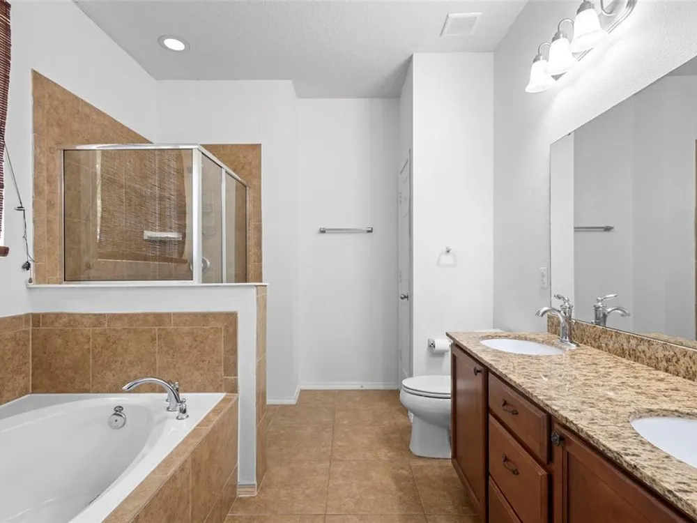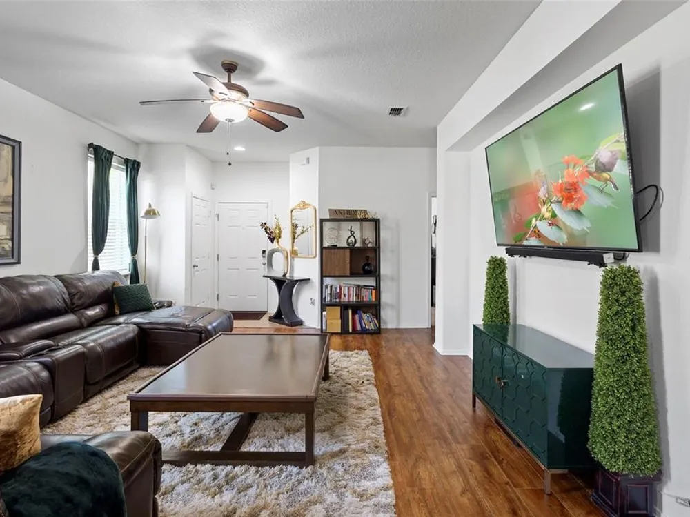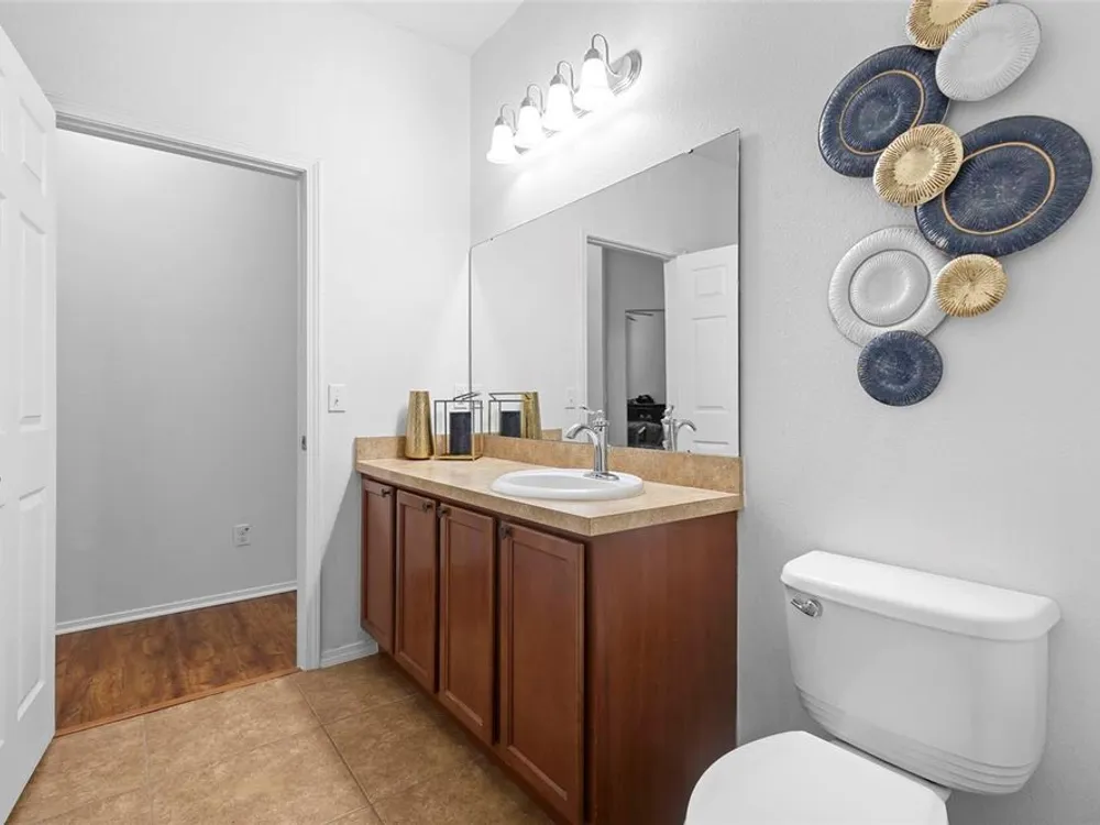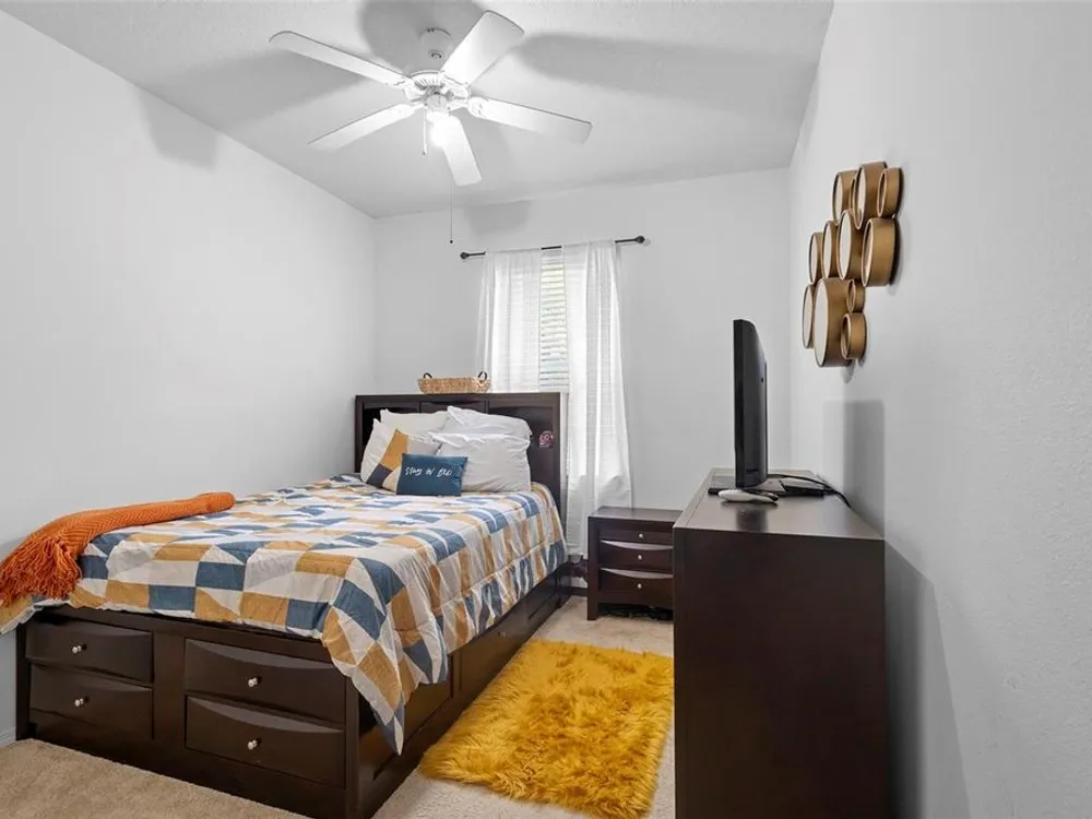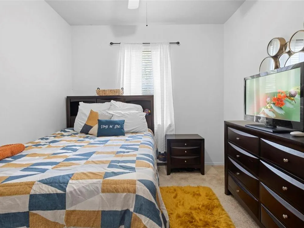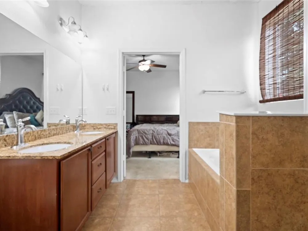 - Ceiling Fan(s), Eat-in Kitchen, Main Level Primary, Solid Surface Counters, Solid-Wood Cabinets, Stone Counters, Thermostat, Walk-In Closet(s)