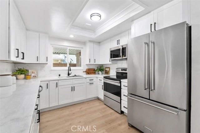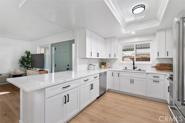 Beautifully Remodeled Light-Filled Villa Nova – Single Level Living. Welcome to 3025 Calle Sonora #D, a rare single-story, single-level Villa Nova model in Laguna Woods. Perfectly positioned on a light-filled corner location surrounded by lush greenery, this home offers exceptional privacy while remaining conveniently close to Gate 7. Recently remodeled—and never lived in since the remodel—this 2-bedroom, 2-bath residence combines comfort, elegance, and modern upgrades. With no stairs and direct access from the parking lot, it is handicap-friendly and easy to navigate. Step through an iron-gated entryway into a charming private courtyard, leading to a stylish new front door. Inside, you’ll be welcomed by a bright and airy floor plan featuring smooth ceilings, recessed lighting, fresh paint, luxury vinyl plank flooring, and double-pane windows—a perfect blend of style and functionality. The brand new open-concept kitchen is a true showpiece, boasting quartz countertops, custom soft-closing cabinetry, and top-of-the-line stainless steel appliances. Adjacent to the kitchen, the dining area and atrium invite in natural light and fresh air, enhancing the home’s indoor-outdoor flow. The spacious primary bedroom features mirrored wardrobe doors and a generous closet, while both bathrooms have been beautifully upgraded with quartz-top vanities and designer-tiled showers. The secondary bedroom also offers mirrored closet doors, a large closet and abundant natural light—perfect for guests or a home office Additional highlights include: • Private patio with extra storage closets • One carport with additional storage • Convenient laundry facility just steps from the front door • AC unit and heat for year-round comfort As a resident of Laguna Woods Village, you’ll enjoy world-class amenities including a 27-hole championship golf course, a 9-hole executive course, 7 clubhouses, 5 pools, art studios, hobby workshops, fitness centers, social clubs, and so much more—all within a secure, 24/7 guard-gated community. Nearby shopping, dining, and coastal destinations add to the appeal. This rare remodeled Villa Nova is move-in ready and waiting for its first new owner—don’t miss the opportunity to make it yours!