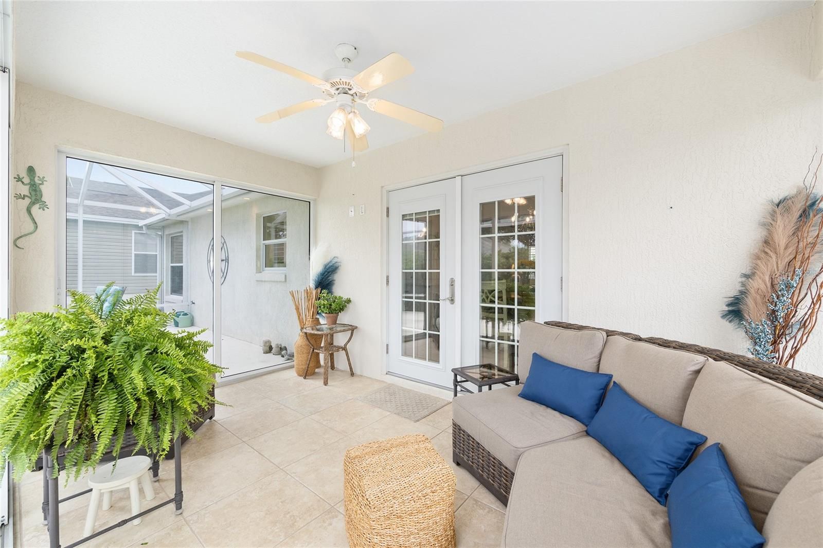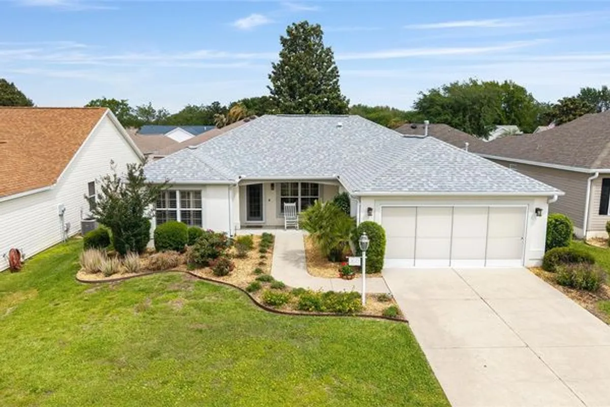 Have no fear, your dream home is right here! This 3/2 block and stucco home is located in the sought-out village of Polo Ridge. The maple floor plan is in a designer neighborhood, on a cul-de-sac street that backs up to the Glenview Golf Course. Nice mature landscaping with front porch seating area. Living room, dining room, and kitchen have 20' ceramic tile laid diagonally. The open kitchen floor plan offers plenty of counter space, island, and lighter color cabinets. All white appliances with a GAS stove! Living room is comfortable with ceiling fan and plantation shutters. The master bedroom offers luxury vinyl plank flooring, his and her walk-in closets, ensuite bathroom with double vanity sinks, tiled shower with seat, and separate toilet area for privacy. Solar tubes also help bring extra light to the room. The secondary bedrooms are on the opposite side of the home with luxury vinyl plank flooring, built-in closets, and plantation shutters. The secondary bathroom has a tiled floor with a tub/shower combo. French doors off the dining area lead to the lanai; which has been enclosed with full length sliding STACKABLE GLASS DOORS. An additional 585 SQFT screened outdoor patio creates an extra-large space to entertain, BBQ, or just relax. The laundry room is inside with washer/dryer, extra storage, and sink. Double car garage with pull-down stairs to the attic, and an added unique storage space. BOND is PAID! The ROOF is 2021. The AC (Carrier) is 2021. HWH is 2025. This home is also being sold TURNKEY; which also includes a 4-person, Yamaha GAS GOLF CART! This home was used as a part time AIRBNB rental with designer bedding and linens, as well as a fully stocked kitchen. This home was a 5-star review property with attention to detail! The LOCATION and amenities offered with this home can't get any better! This home is just North of CR 466 and just a 5-minute golf cart ride to The Southern Trace Shopping Center, Saddlebrook Pool and Softball fields, Savannah Center Sports Pool and of course, the Glenview Championship Golf and Country Club!
