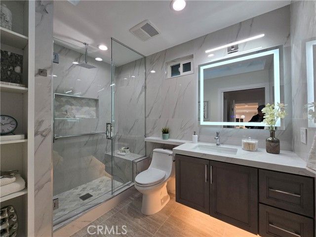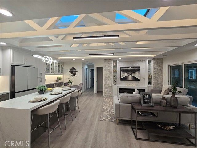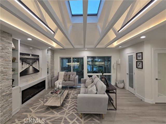 *** TOTALLY REMODELED CONDO WITH MODERN STYLE IN THE PRIVATE LAGUNA WOODS COMMUNITY *** NO STAIRS, NO ONE ABOVE NO ONE BELOW- GROUND FLOOR ENTRY***CASA DEL MAR MODEL** 1009 SQFT+170 APPROX. SQFT(ENCLOSED PATIO)*** LOCATED IN PEACEFUL NEIGHBORHOOD & BEAUTIFUL LANDSCAPED AREA** NEAR GATE 7, GOLF CART PATH & WALKING DISTANCE TO TENNIS COURTS & COMMUNITY CENTER**HOME FEATURES OPEN FLOOR PLAN WITH ARCHITECTURAL SKYLIGHTS IN THE LIVING AREA TO BRING MORE NATURAL LIGHT INSIDE. NEW CENTRAL AIR & HEATING SYSTEM. NEW PLUMBING & ELECTRIC WIRING. DURABLE FLOORING , RECESSED LIGHTS, AND DOUBLE PANE WINDOWS THRUGHOUT. LIVING ROOM FEATURES ENTERTAINMENT CENTER WITH BUILT IN DECORATIVE SHELVING WITH LIGHTS AND LED FIREPLACE. GOURMET KITCHEN WITH LARGE QUARTZ ISLAND WITH QUARTZ COUNTERTOPS. BRAND NEW APPLIANCES- SAMSUNG REFRIGERATOR. STYLISH KITCHEN CABINETS WITH PLENTY OF STORAGE, DISPLAY CABINETS & PANTRY, LARGE SINGLE TUB SINK. MODERN STYLE LIGHTING FIXTURES. LUXURY SAMSUNG WASHER DRYER COMBO IN THE HALLWAY CLOSET. BOTH BATHROOM HAVE SKYLIGHTS & BOASTING CUSTOM TILED SHOWERS. MASTER SUITE WITH WALK-IN CLOSET W/ ORGANIZER & SOLAR TUBE, SKYLIGHTS. ENCLOSED PATIO W/ SLIDING DOOR HAVE ACCESS TO BEDROOM & LIVING ROOM. *** LAGUNA WOODS IS A RESORT LIVING STYLE COMMUNITY. ONE OF THE BEST SENIOR COMMU