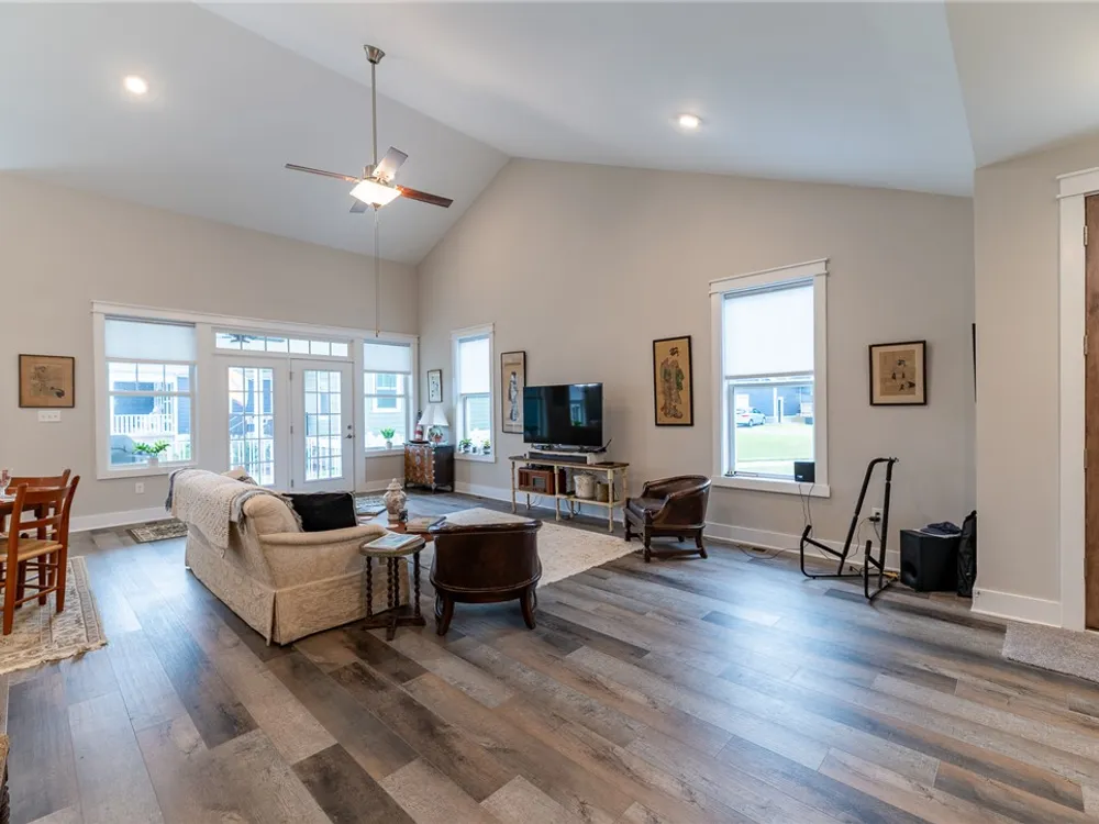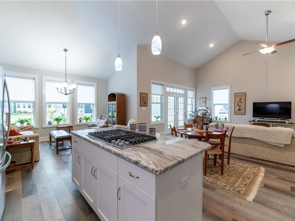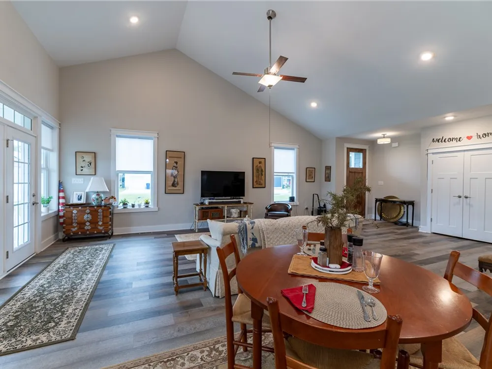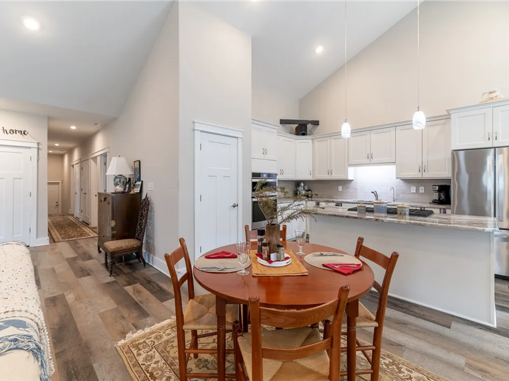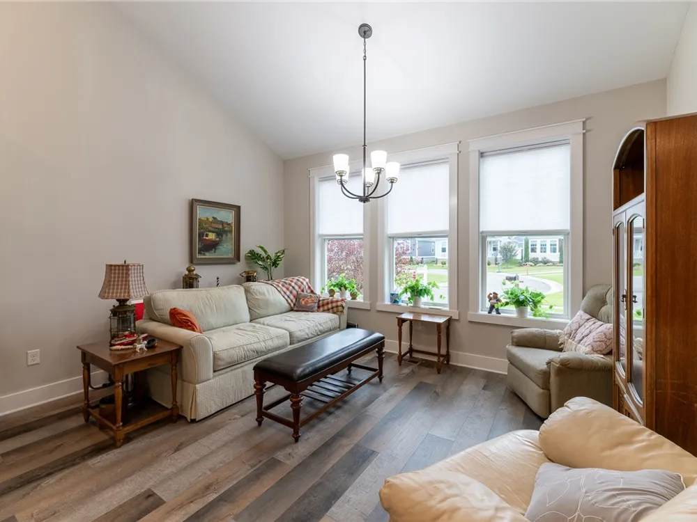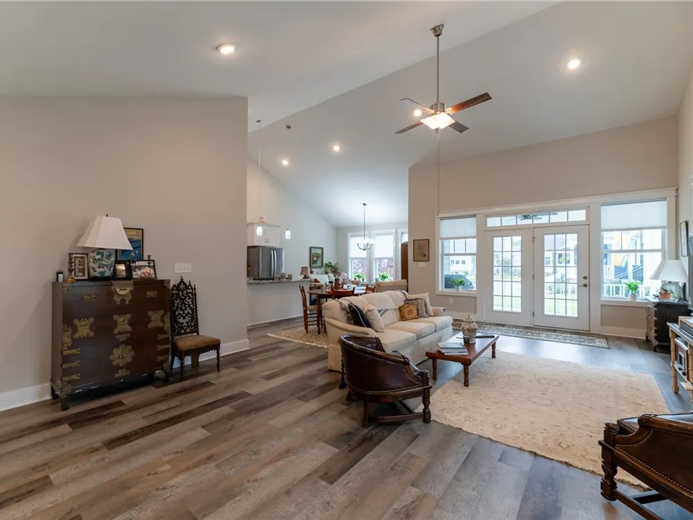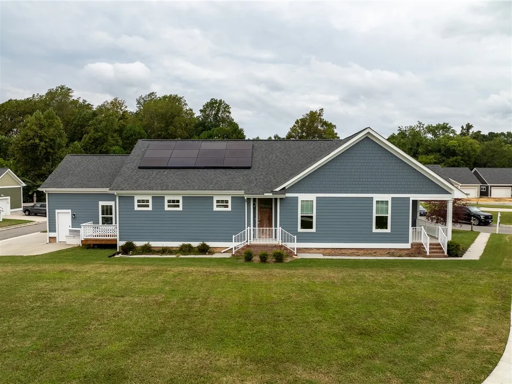 Discover refined comfort in this beautifully crafted, intelligently designed rancher featuring effortless one-level living. Here, your lifestyle goes to the next level. Don't miss the vaulted great room with lots of windows, just the right amount of natural light. The gourmet kitchen acts as the centerpiece of this space with an expansive granite island, double ovens, gas cooktop with downdraft exhaust, custom tile backsplash & sleek stainless steel appliances. Get away to your resort style primary bedroom which includes a beautiful bathroom with its dual shower heads with full glass, & dual vanities! Energy efficiency is provided by Solar Panels, 6" insulated walls & the HVAC system utilizes a recirculating heat system so no matter the season, you are covered. Outside enjoy your cozy front porch with guests. Parking is a breeze: 2 car garage & off street parking for 3 more vehicles, 2-3 more in the front means everyone has a space. Enjoy close proximity to everything Williamsburg!