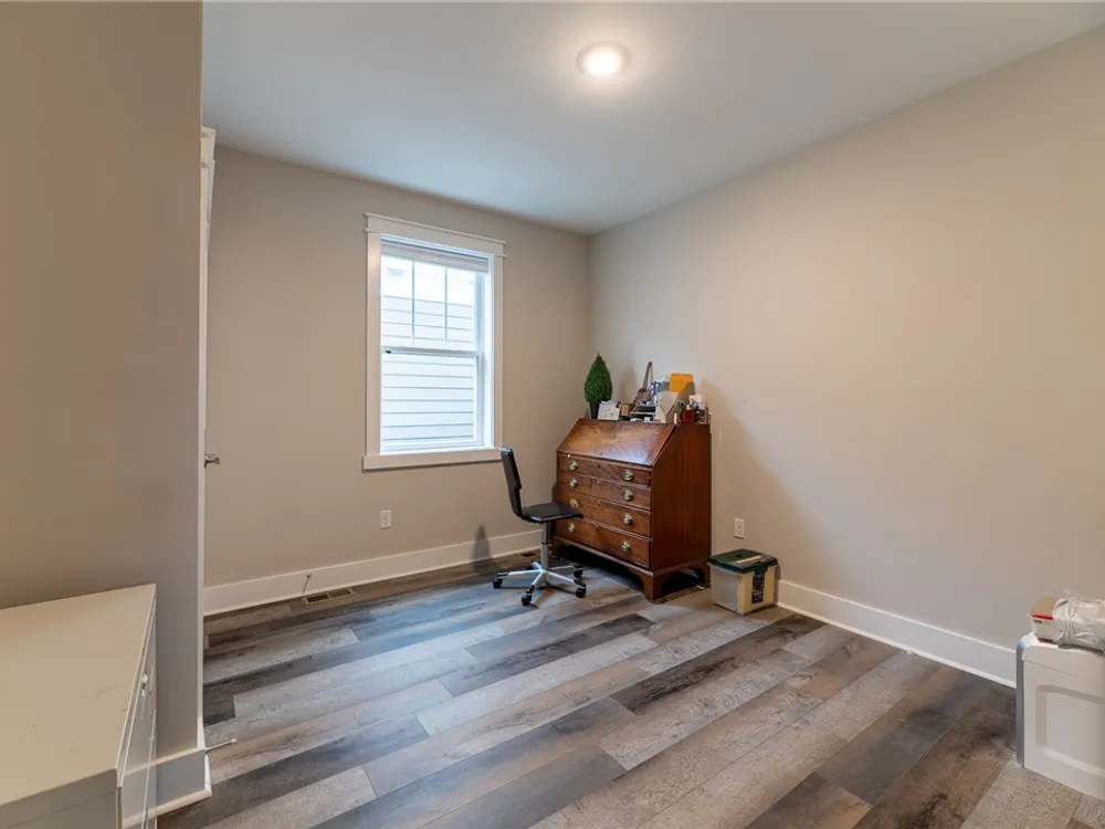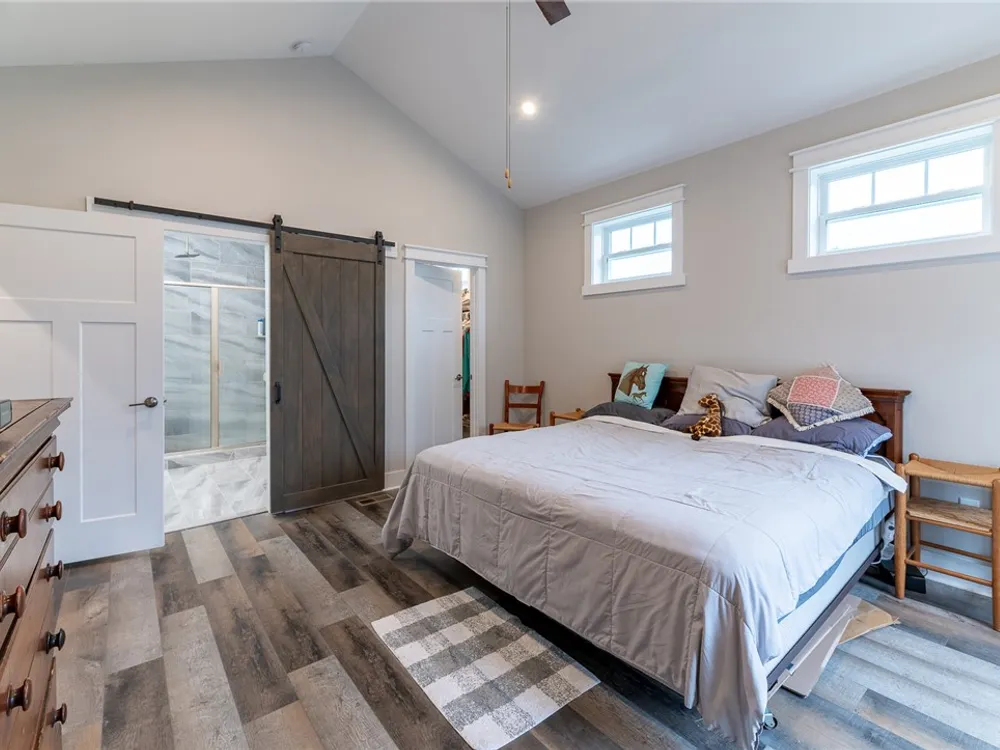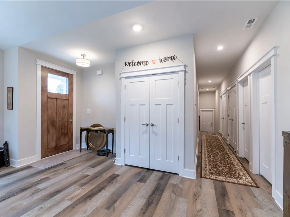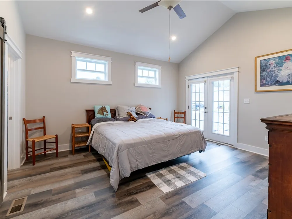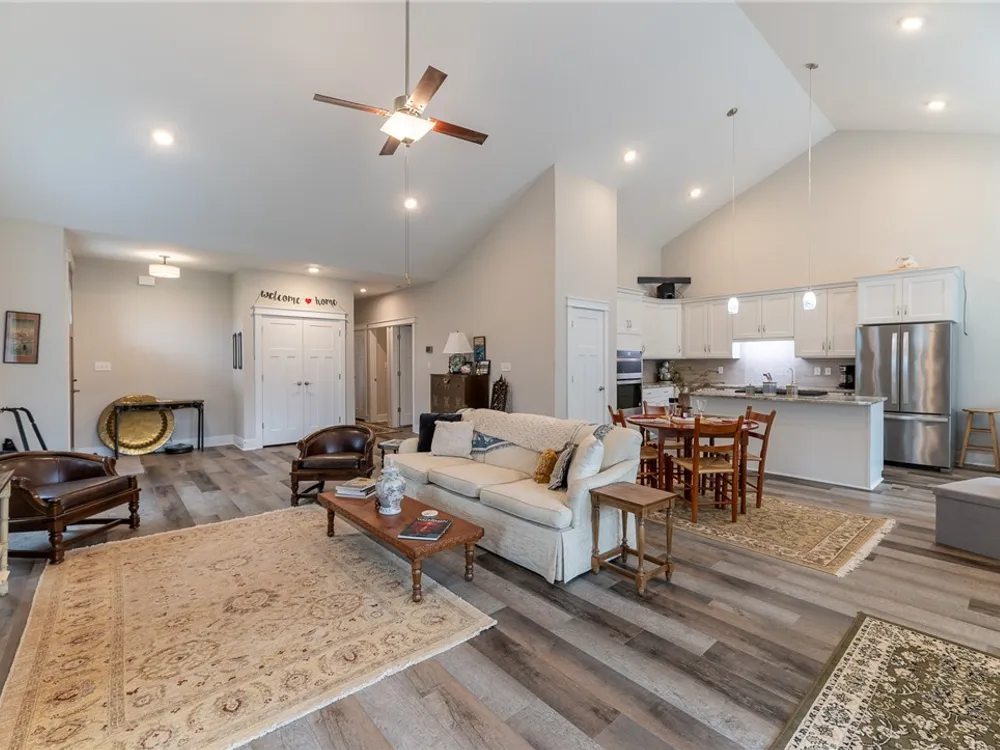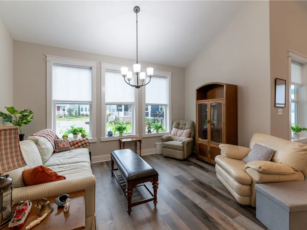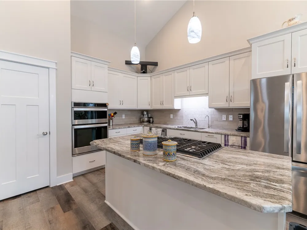 Discover refined comfort in this beautifully crafted, intelligently designed rancher featuring effortless one-level living. Here, your lifestyle goes to the next level. Don't miss the vaulted great room with lots of windows, just the right amount of natural light. The gourmet kitchen acts as the centerpiece of this space with an expansive granite island, double ovens, gas cooktop with downdraft exhaust, custom tile backsplash & sleek stainless steel appliances. Get away to your resort style primary bedroom which includes a beautiful bathroom with its dual shower heads with full glass, & dual vanities! Energy efficiency is provided by Solar Panels, 6" insulated walls & the HVAC system utilizes a recirculating heat system so no matter the season, you are covered. Outside enjoy your cozy front porch with guests. Parking is a breeze: 2 car garage & off street parking for 3 more vehicles, 2-3 more in the front means everyone has a space. Enjoy close proximity to everything Williamsburg!