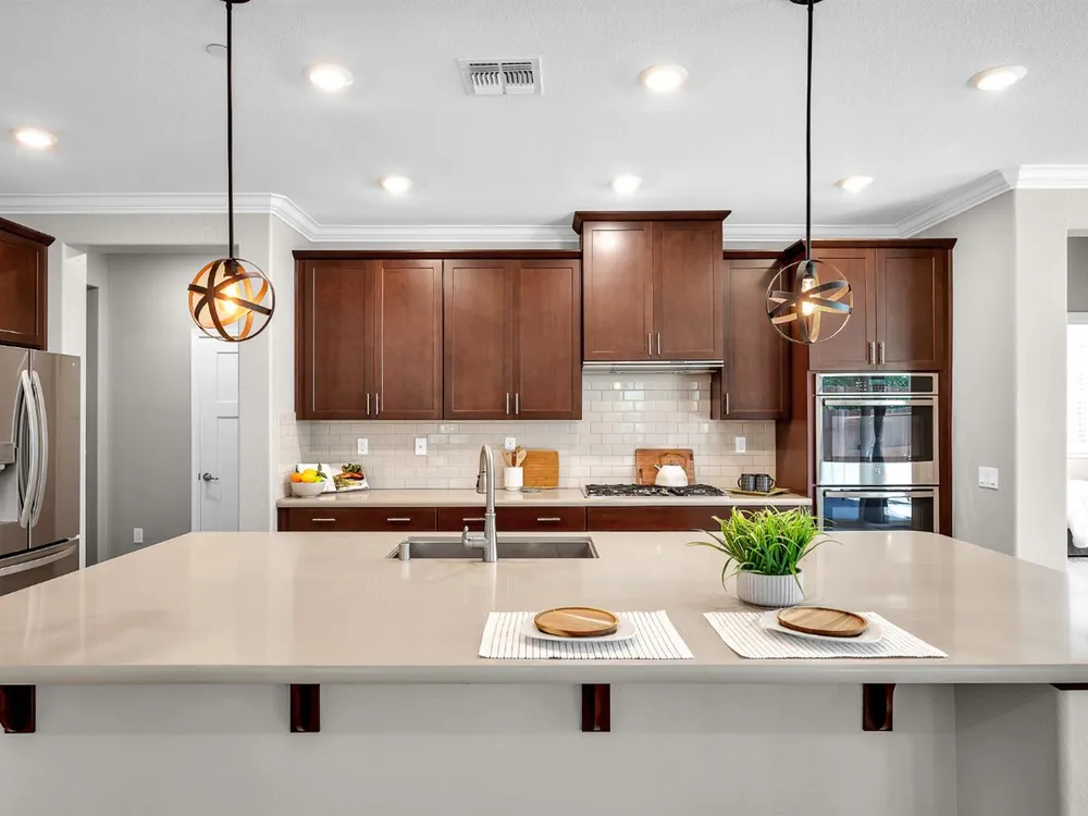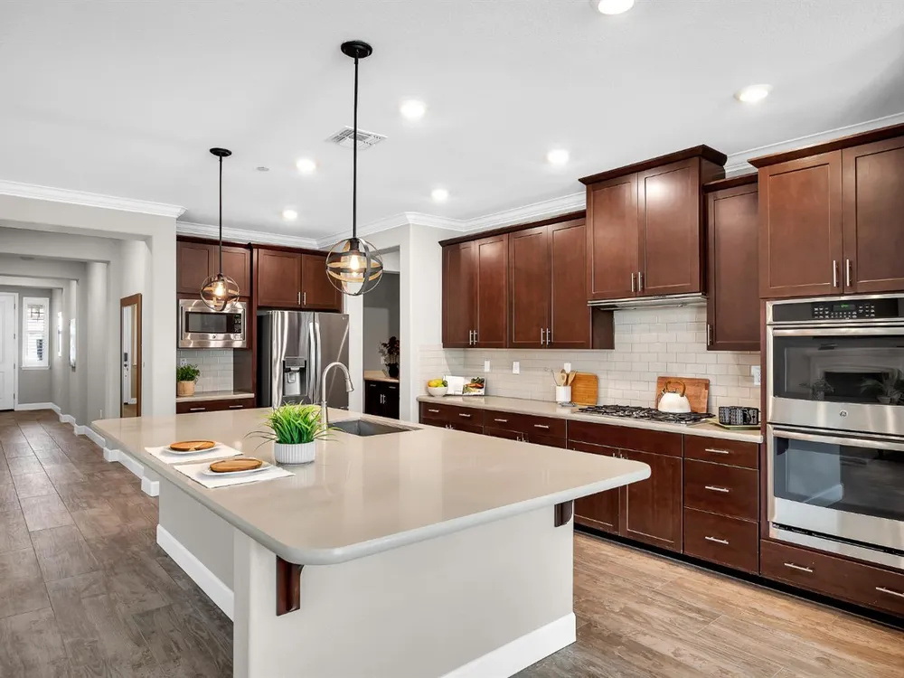 - Built-In Electric Oven, Gas Cooktop, Range Hood, Dishwasher, Microwave, Double Oven, Plumbed For Ice Maker