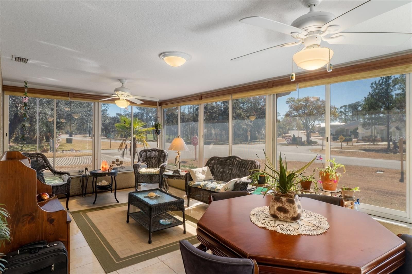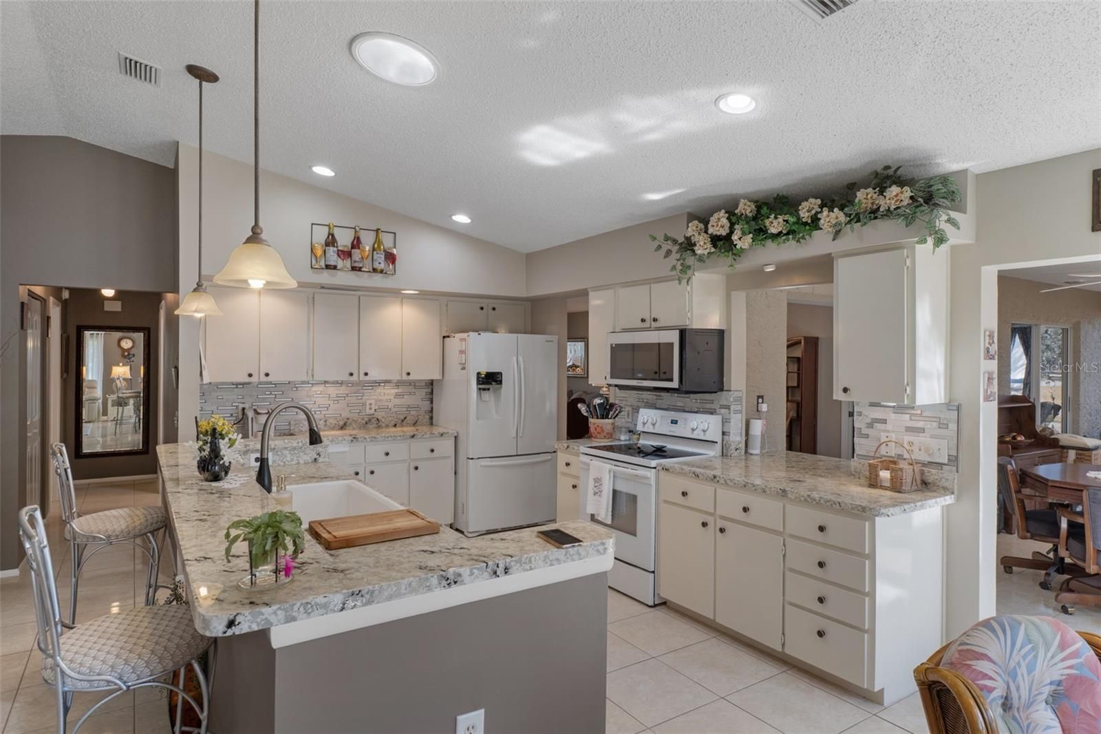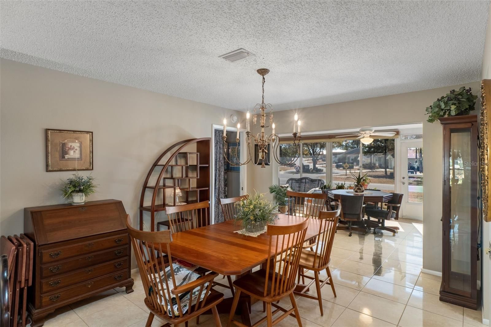 Welcome to this lovely Victoria model offering 2 bedrooms, 2 baths, and a 2-car garage with a desirable split floor plan. This home is conveniently located near the Country Club, Pool, Performing Arts Center, and Pro Shop. Being sold partially furnished, it’s ready for you to move in and start enjoying the lifestyle. This well-maintained home features numerous updates, including a new Roof (2018), Solar Panels (2019) for significantly reduced electric costs, HVAC (2025), Windows (2012), Water Heater (2021), and Garage Door Opener (2024). Additional upgrades include oversized gutters with leaf guards and ceramic tile flooring in the main living areas. carpeting in bedrooms. Solar Tubes in the living room, guest bath, and kitchen enhance the home with abundant natural light. Enter from the inviting front porch into the spacious living and dining room combination that opens to a large enclosed lanai with slider windows, creating a bright and airy extended living space. The kitchen and family room boast Cathedral ceilings and an updated design with upper cabinets removed to enhance the open, spacious feel. The microwave and dishwasher are just two years old. The primary bedroom has dual walk-in closets, and an en-suite bath. An inside laundry room with laundry tub, upper cabinets, and two additional closets provides exceptional storage and convenience. Timber Pines is an award winning, 55+ Active Adult Gated Community with 4 golf courses, 2 pools & hot tubs, Country Club, Restaurant and Lounge, Performing Arts Center, 2 Pro Shops, 12 newer, State-of-the-Art Pickle Ball Courts, Tennis, 2 Dog Parks, and a State-of-the-Art Wellness Center & Fitness Center & over 100 clubs, and activities.