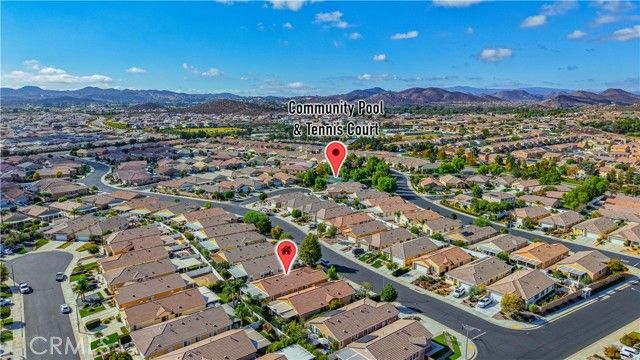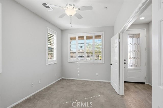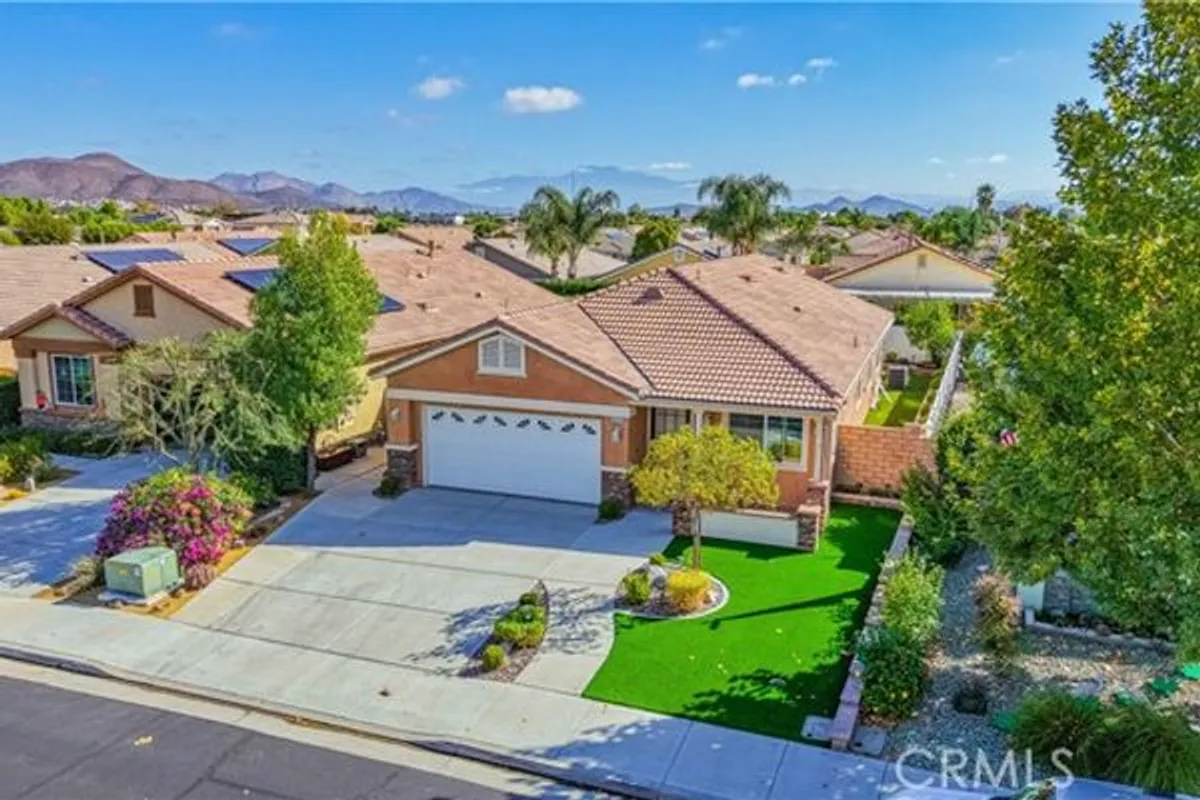 HUGE *$25,000 Price Reduction* On the Gorgeous "TURNKEY" 2-bedroom, 2-bath home with a versatile Den that can easily convert into a 3rd bedroom. Offering 1,813 square feet of comfortable living space. Built in 2016, located in the desirable gated Orchid/Primrose 55+ Senior community at 30282 Silicate Dr., Menifee, CA 92584. This stunning home combines modern upgrades featuring; upgraded plank tile flooring in common areas, and cozy carpeting in the bedrooms, complemented by a Therma-Tru raised panel front door with decorative glass insert, and stylish two-tone gray flat finish paint. The Double door walled-in Den provides privacy for a home office or guest room. Other features are; indoor Laundry with utility sink, white Thermofoil cabinetry adding extra storage, and a clean look, plus newer Washer & Dryer included! Ceiling fans are installed throughout, and the home is pre-wired for flat-screen TVs. Wood shutters and dual-pane windows enhance comfort and energy efficiency. The great room, located just off the kitchen, features a beautiful indoor fireplace—creating a warm and inviting space perfect for relaxing or entertaining. The kitchen is a true centerpiece, featuring stainless steel appliances, white thermofoil cabinets, a custom backsplash, pendant lighting, a center island to include the range with gas cook top and vented hood, pull-outdrawers for pots and pans, and a frosted glass pantry door. The primary suite includes mirrored closet doors, recessed lighting with dimmer controls, framed mirrors, a silver aluminum stand up shower enclosure, separate soaking tub, and ADA-height toilets with privacy door. The exterior has been beautifully upgraded with a landscaped front yard featuring a custom walkway, wall planter, curb, decorative rock, shrubs, tree, and synthetic turf. The backyard offers low-maintenance enjoyment with synthetic turf, gravel, a drip irrigation system, aluminum rain gutters, and an alumawood patio cover with ceiling fans—perfect for relaxing or hosting gatherings. The two-car garage includes coach lights and fluorescent lighting, tankless water heater, side door to rear yard. This beautiful lot spans 5,227square feet with amazing curb appeal in one of Menifee’s most sought-after senior communities. A must see!