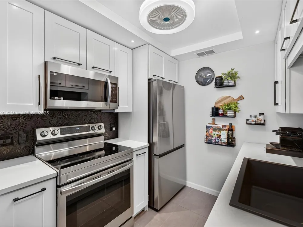 Wow! Completely remodeled with permits! This stunning, modern 2-bedroom, 1.5-bath unit offers breathtaking lake views in Deerfield’s Century Village. The gorgeous kitchen features white cabinets, quartz waterfall countertops, stainless steel appliances, & recessed lighting. Enjoy knockdown ceilings, waterproof/sunproof vinyl flooring & tile in the beautifully updated bathrooms. Relax on the large screened balcony with serene water views (roller-shutters). Move-in ready & offered fully furnished & tastefully decorated! Conveniently located next to the free laundry room. Rentable after 1 year! HOPA-verified community with clubhouse, theater, art studios, billiards, fitness center, pickleball, tennis, heated pools, 24/7 security, & a courtesy shuttle—just 4 miles from the beach