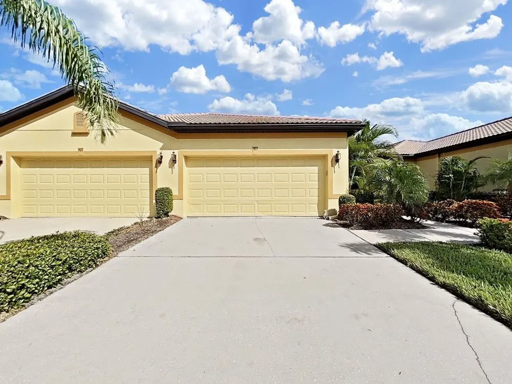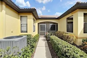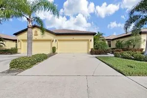 Southshore Falls is a paradise Premiere 55+ community with Florida Lifestyle & FUN!! This beautiful 2 bedroom/ 2 bath with DEN/flex room villa has an open floorplan and is light & bright with natural sunshine. As you enter the screened entrance way, you are welcomed through an arched doorway to an inviting floor plan that seamlessly connects living and dining and kitchen. The kitchen has a 2023 appliance stainless steel package including dishwasher, stove, refrigerator, and microwave. There is plenty of room to entertain in the dining area kitchen nook with added seating at the breakfast bar for casual dining complete with granite counter tops and upgraded backsplash. The kitchen has 42” cabinets for lots of storage. There are six ceiling fans. In the master bath there are dual sinks and a walk-in shower and bath tub in the guest bath. The split floor plan provides privacy for both homeowner and guests. This lovely home has tile flooring throughout with the exception of carpeting in the master and guest bedrooms and laminate wood flooring in the den. The den has glass French doors. The covered lanai has plenty of room for your plants. Southshore Falls has a 24/7 gated and guarded entrance; a 14,000 square foot Clubhouse featuring a Ballroom; State-of-the- art Fitness Center; Billiard room, Craft room, Library/Card room, Outdoor amenities include 2 Swimming pools, a Resistance pool, Hot tub, Shuffleboard, Bocce Ball; Pickle Ball Courts, Putting Green, Nature Trails with beautiful landscaping and ponds. There are several clubs and activities including: Mahjongg, Trivia, Bingo, Photography Club, Paint, Jewelry Making, Scrabble, Trivia, Golf Club & Softball offsite, Active Women’s Club; Out & About Club; Bike Club; Food Truck Nights with schedule at clubhouse; Magic Show; Women’s luncheon Pot- luck singles; Mix & Mingle; Singles Club; & Live entertainment. Check with the clubhouse to identify what is included & what have fees. If you are not in the mood to cook - no worries! There are favorite food trucks scheduled four times in the month of October. Just check out THE SCOOP newspaper available at the State - of - the -Art clubhouse. Good things to know about this home: New A/c in 2023; hot water heater in 2021.