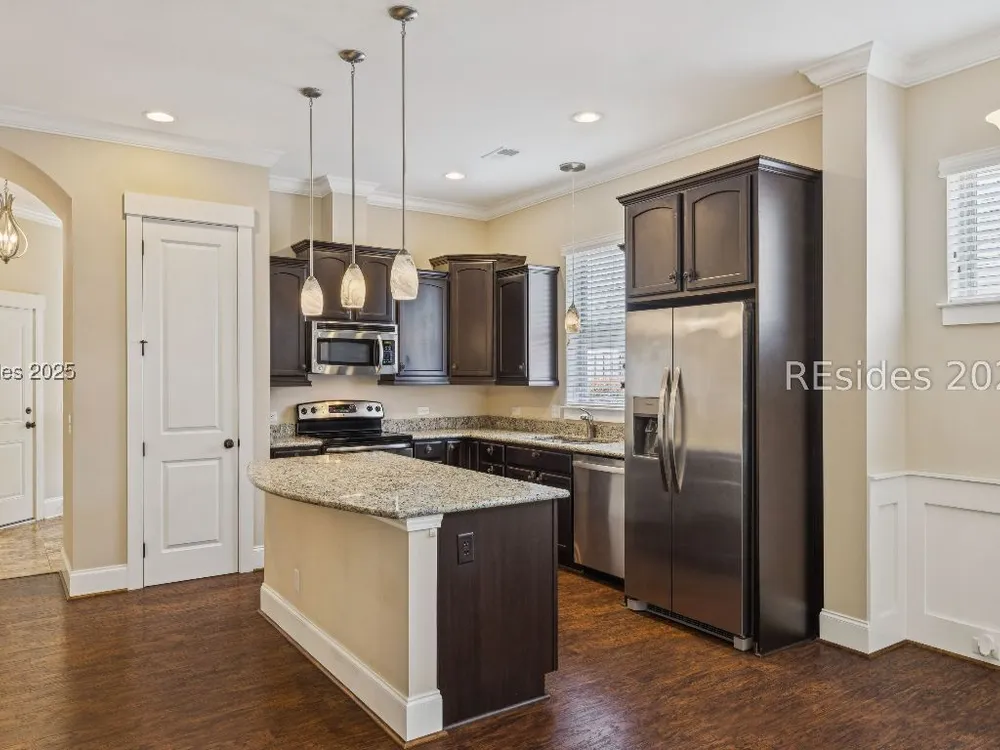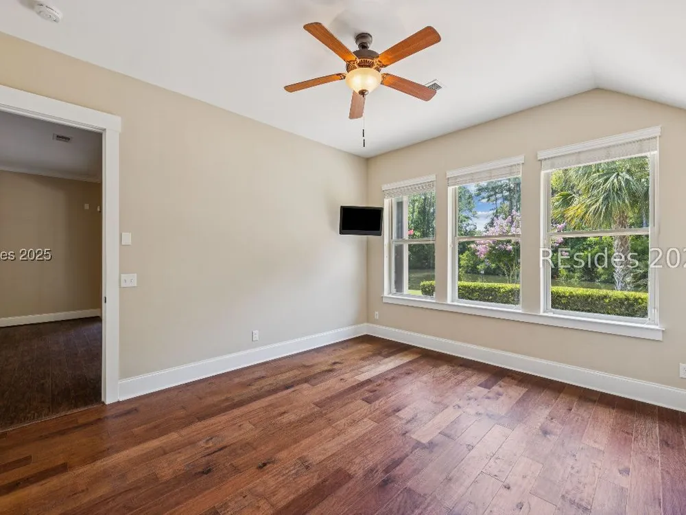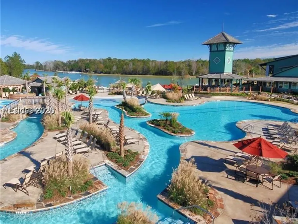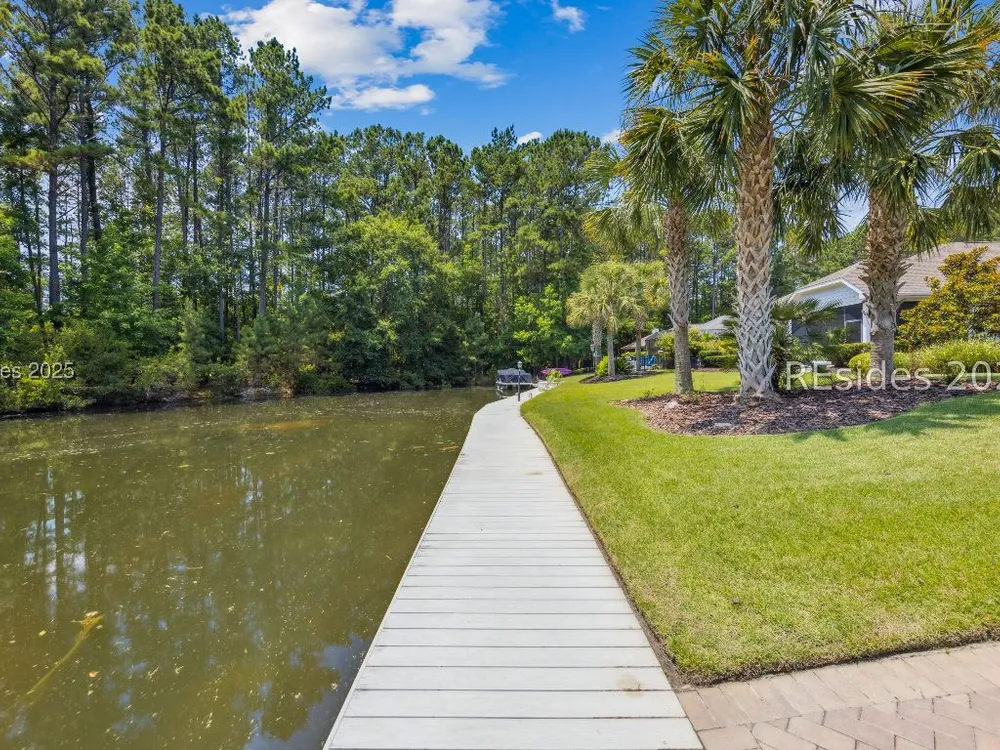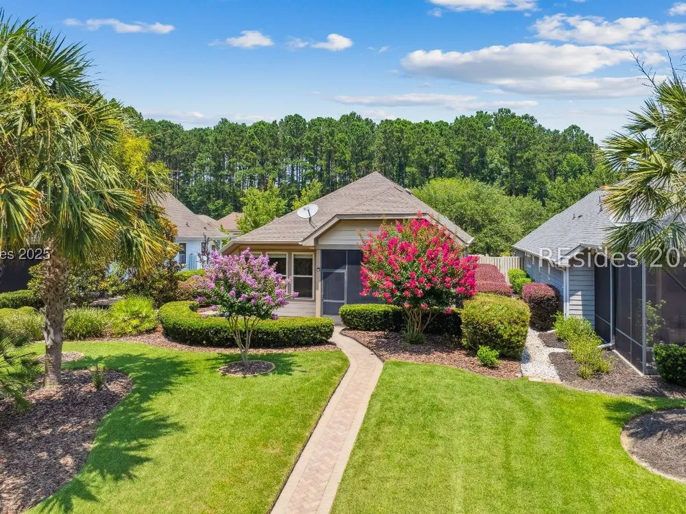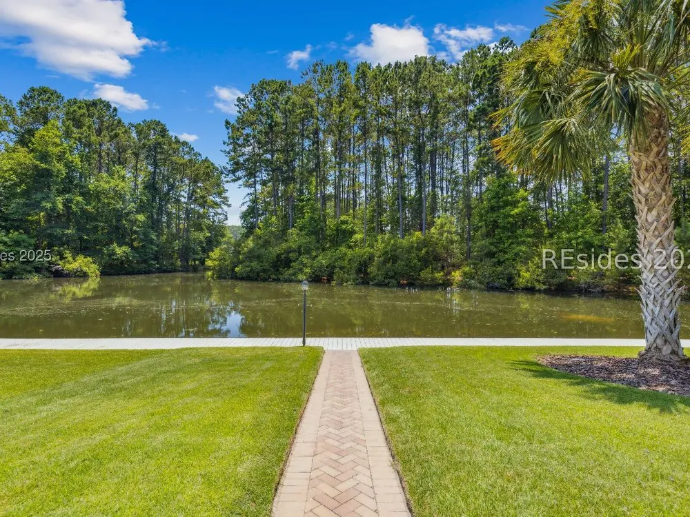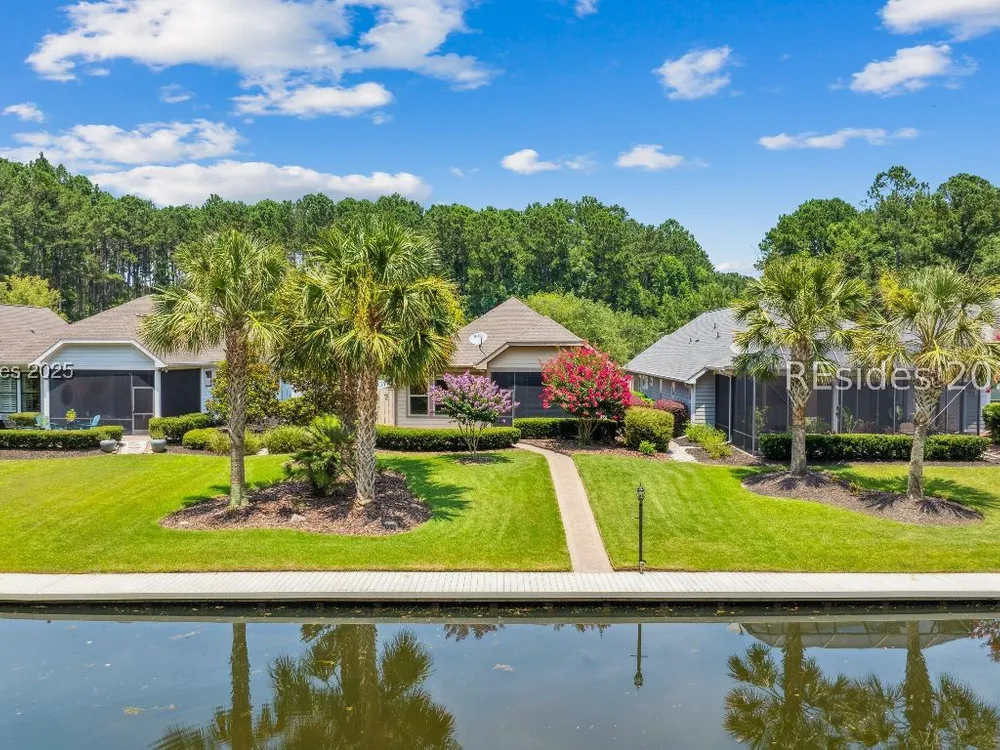 Wake up to sparkling lake views and palm trees swaying outside your window. This lakefront cottage in Hampton Lake offers the perfect blend of coastal charm and resort-style living. Immaculate one-story home features an open-concept design, gleaming wood floors, and abundant storage throughout. Relax on your screened porch or view the stars on paver deck. Newly landscaped rear yard with personal lighted boardwalk and dock. Many recent updates include new HVAC. Layout that lives larger than expected, All nestled in one of the Lowcountrys most sought-after communities.