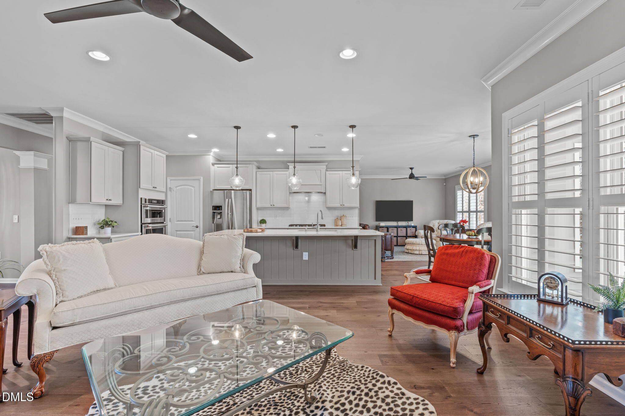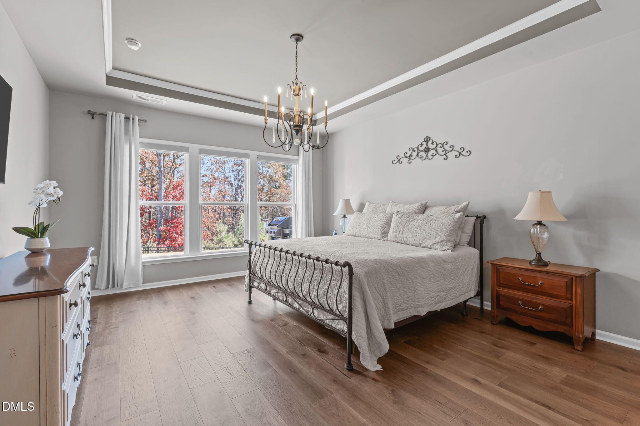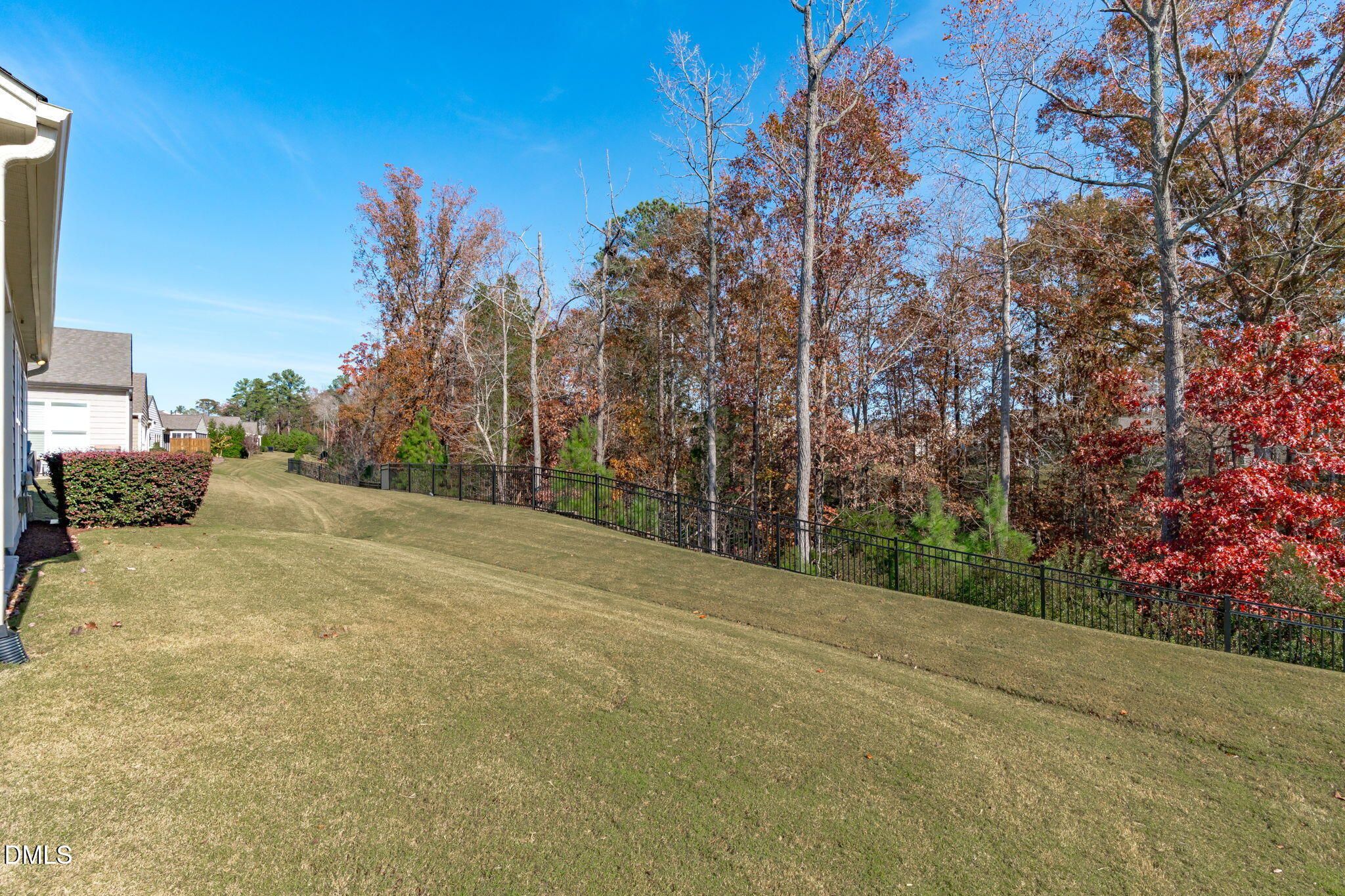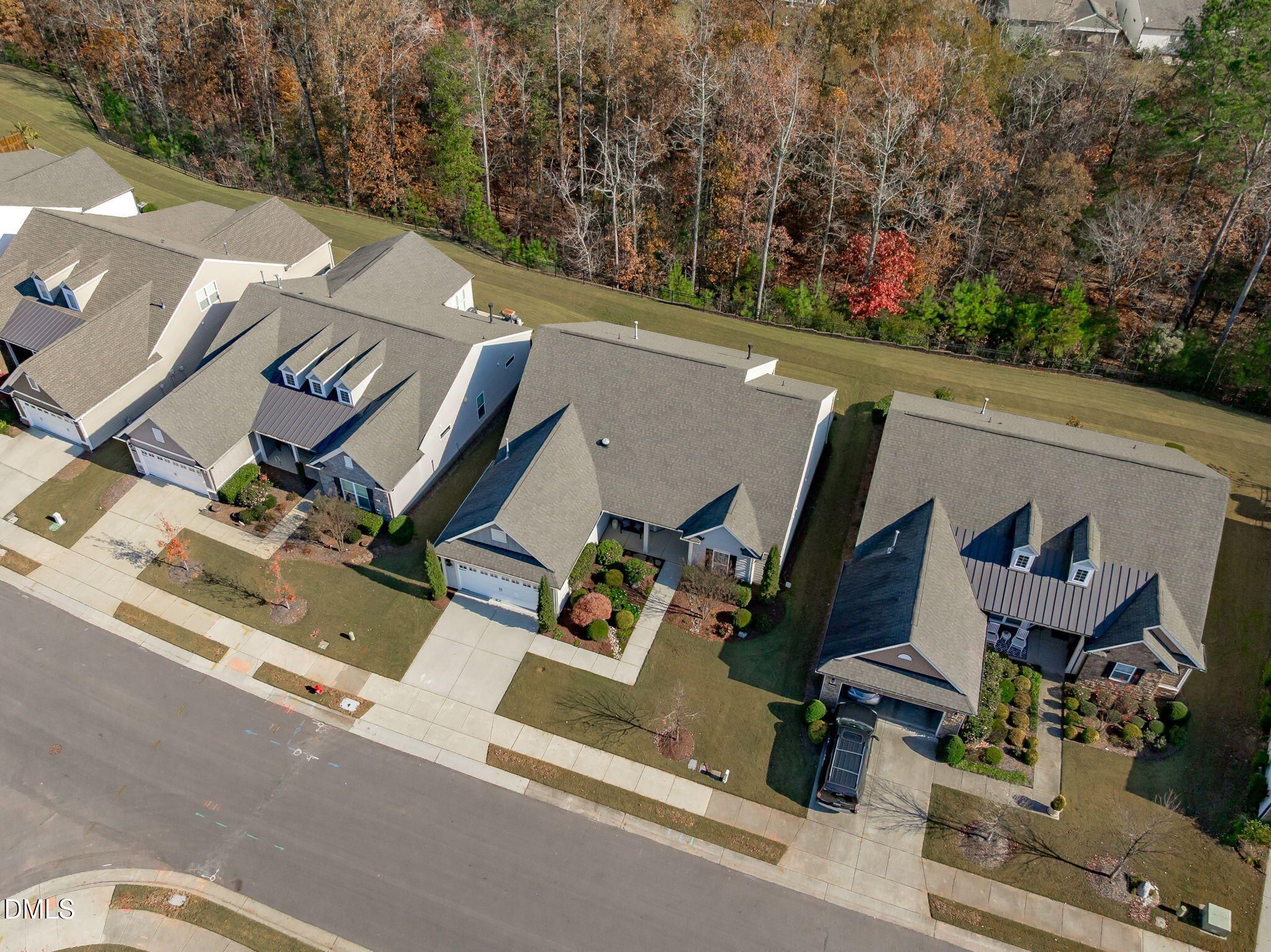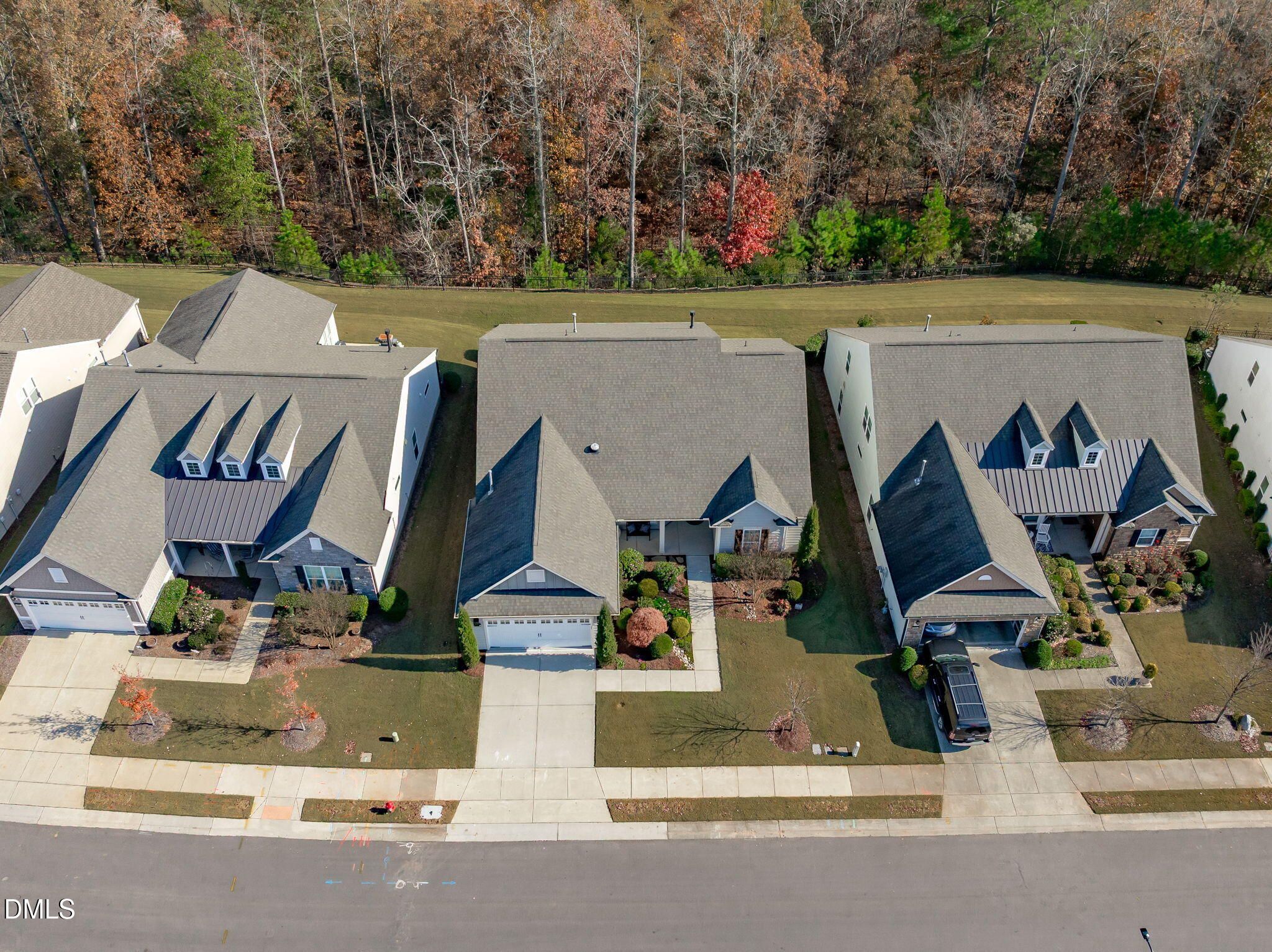 Welcome to Carolina Arbors, a premier 55+ active lifestyle community in Durham. This beautifully maintained Napa floor plan offers one of the most desirable homesites in the neighborhood, situated on an interior lot backing to a wooded buffer that provides exceptional privacy. The main level includes three bedrooms including the primary suite, with a fourth bedroom or bonus room upstairs along with conditioned walk-in storage. The floor plan lives beautifully with an open concept layout that includes a dining room, kitchen with eat-in space, and a keeping or sitting area. The large island allows for effortless entertaining and everyday comfort. Plantation shutters and custom pull-down blinds enhance the interior. The primary suite features dual vanities, a soaking tub, a separate tiled shower, a spacious water closet, and an oversized walk-in closet with built-in shelving. The gourmet kitchen is designed for both style and functionality with upgraded built-in stainless steel appliances, a gas range with hood, quartz countertops, large island with pendant lighting, and convenient pull-out drawers. New flooring extends throughout the main level with tile in all wet areas. Additional features include a large screened porch and separate 14x10 grilling patio, a dedicated laundry room with cabinetry, and an irrigation system that has been winterized for the season. The home has been meticulously maintained inside and out, with a new HVAC system installed in 2024. Residents of Carolina Arbors enjoy an award-winning amenity lifestyle including a clubhouse, indoor and outdoor pools, fitness center, pickleball and tennis courts, walking trails, and a billiards room. This home offers privacy, comfort, and the exceptional lifestyle that Carolina Arbors is known for.