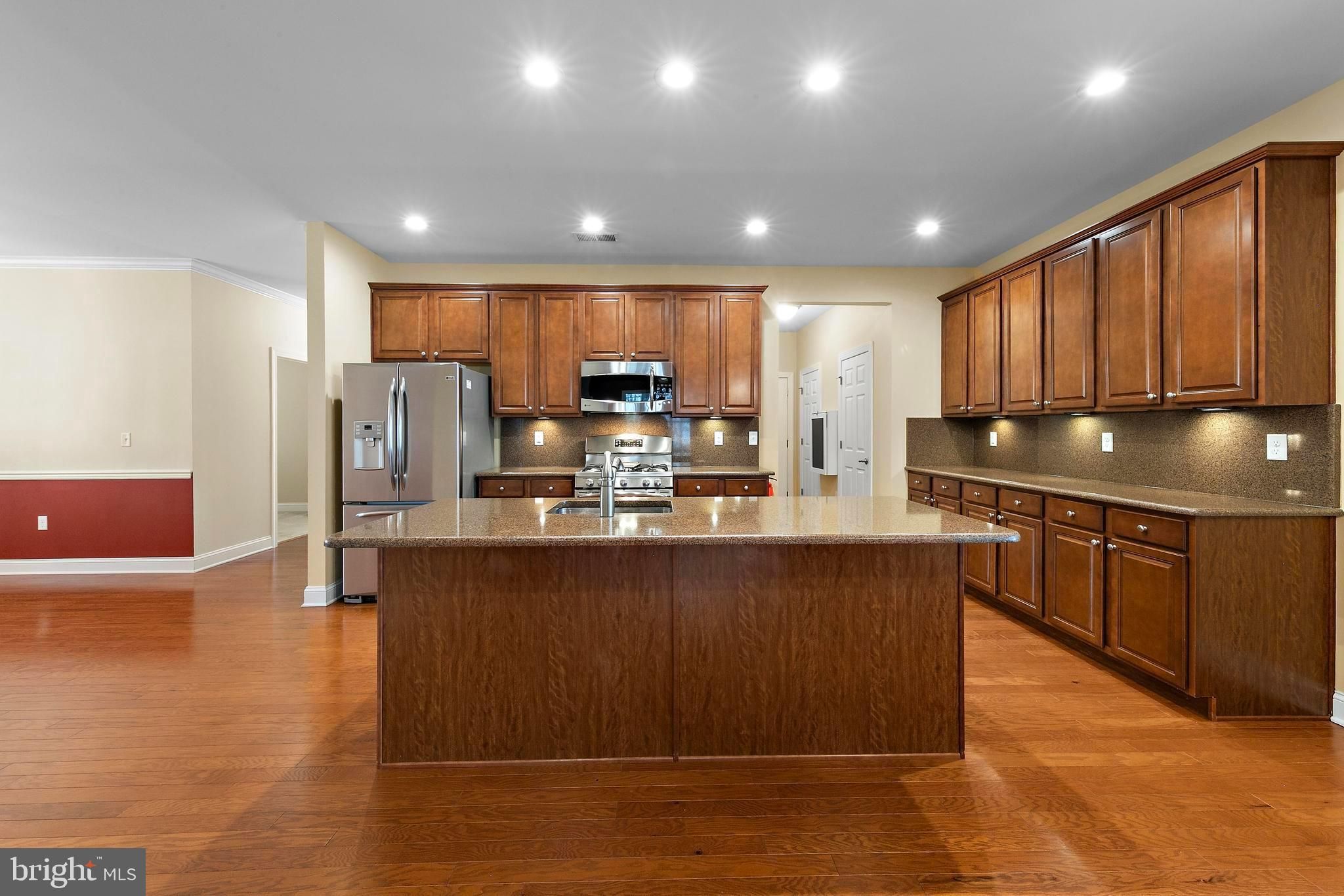 - Bathroom - Stall Shower, Bathroom - Tub Shower, Family Room Off Kitchen, Floor Plan - Open, Kitchen - Eat-In, Kitchen - Island, Pantry, Primary Bath(s), Recessed Lighting, Sprinkler System, Upgraded Countertops, Walk-in Closet(s), Wood Floors, Central Vacuum, Ceiling Fan(s), Chair Railings, Crown Moldings, Formal/Separate Dining Room