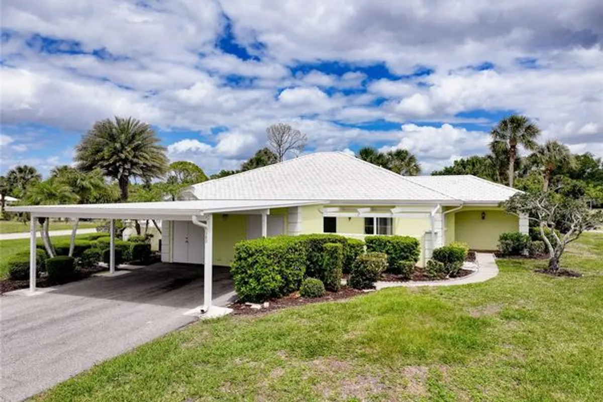 Step into this beautifully maintained, rarely available three-bedroom two-bathroom villa located in the Plantation Golf and Country Club. This gem is being offered turnkey furnished. This home boasts an open floor plan, creating a seamless flow between living spaces, perfect for entertaining and everyday living.The updated kitchen features modern appliances and elegant finishes, making it a chef's delight. The primary suite includes a double vanity and a generous walk-in closet for ultimate convenience. Enjoy stunning golf course views from your patio, enhancing your outdoor experience. Recent upgrades include a new roof installed in 2023 and a hot water heater replaced in 2021, new flooring, and fresh paint ensuring peace of mind for the new homeowner.Don’t miss this opportunity to own a slice of paradise in Augusta Villas! While membership to Plantation Golf and Country Club is not mandatory, it offers two championship 18-hole golf courses, tennis and pickleball courts, and dining and social activities.Situated close to Wellen Park, pristine beaches, shopping, and a variety of recreational activities, this villa offers the perfect blend of luxury and lifestyle. Perfect for a full time home, winter retreat or an investment opportunity! Rental history available upon request.