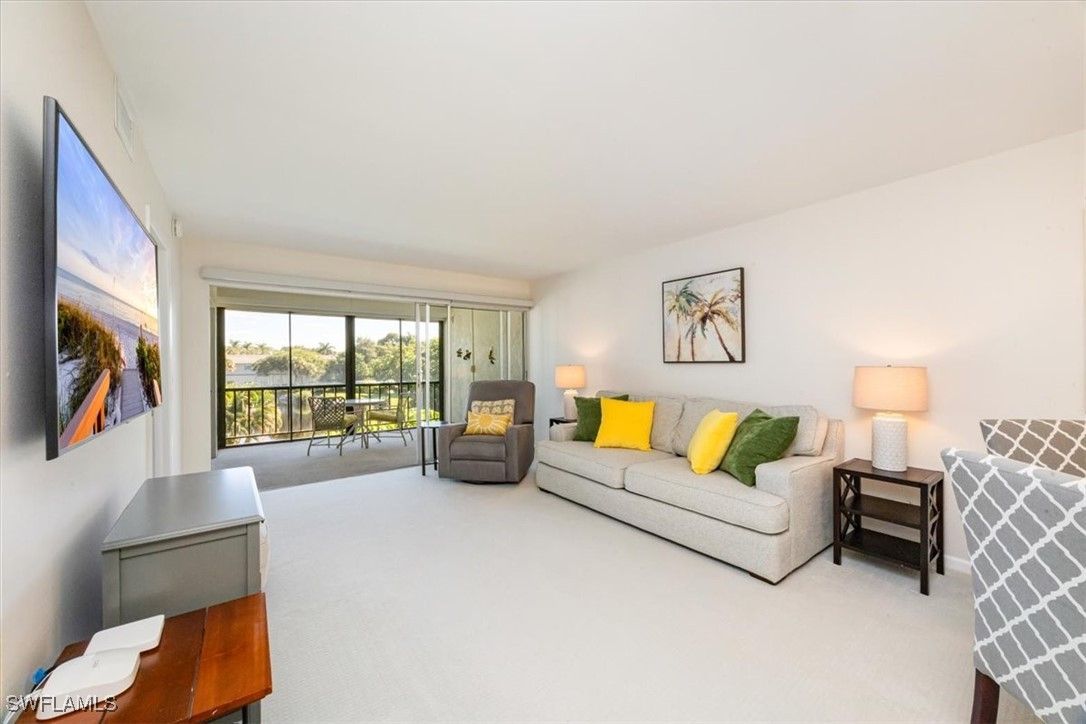 Experience serene lakefront living in this top floor, turnkey-furnished 2 bed, 2 bath residence offering over 1,000 square feet of comfortable, well-designed space. An inviting open floor plan seamlessly connects the updated kitchen, dining room, and living area to the screen-enclosed lanai, creating an ideal setting for everyday living and entertaining. The kitchen features stainless steel appliances, granite countertops, and a convenient pass-through to the dining room. Step out to the lanai and enjoy peaceful lake views that elevate the home’s relaxed ambience. The primary suite includes a walk-in closet and a beautifully renovated bathroom, while the spacious guest bedroom offers generous closet space and easy access to the full guest bath. For added comfort and convenience this unit is equipped with impact windows and an electric storm shutter on the lanai! Chateau Suzanne is a low-density, well-managed community known for its pristine grounds and tranquil lakefront pool. Residents also have the option to join the prestigious Moorings Property Owners Association, which provides private beach access with gated entry, tiki huts, picnic areas, restrooms, and secure bike and vehicle parking. All of this is located just minutes from Naples’ premier destinations, including Fifth Avenue, Historic Third Street South, Waterside Shops, and Mercato. This is an exceptional opportunity to enjoy effortless coastal living in one of Naples’ most desirable locations.