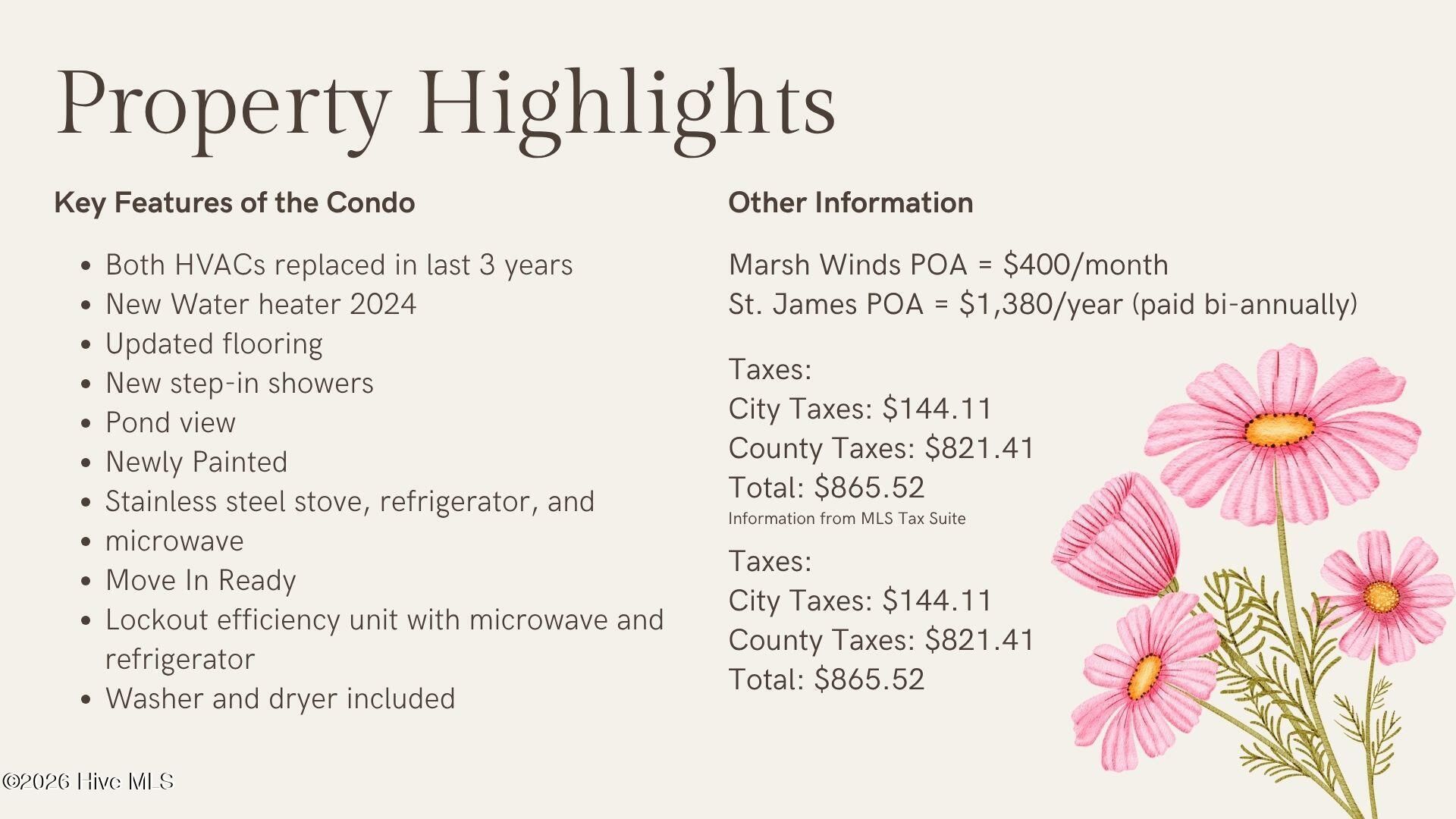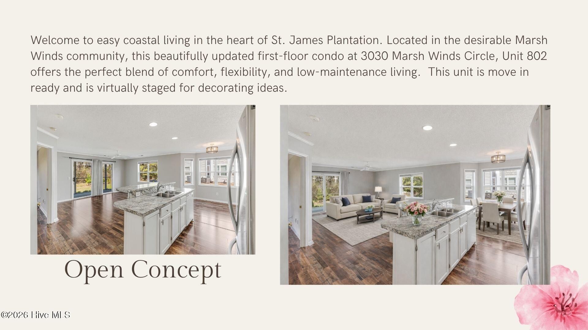 Welcome to easy coastal living with built-in flexibility in the heart of St. James Plantation. This ground-floor 2-bedroom, 2-bath condo offers something rare... the ability to enjoy your own coastal retreat while creating income potential at the same time. Designed with a lockout efficiency unit, the space can be used as a full 2-bedroom residence, a private guest suite, or a separate rental opportunity. Step inside to a freshly updated interior with new flooring, fresh paint, and beautifully renovated step-in showers that add both style and everyday comfort. The open living area flows seamlessly to your patio, where peaceful pond views create a quiet, private backdrop with no buildings behind you... just space to relax and unwind. The kitchen features stainless steel appliances, and both HVAC systems have been replaced within the last three years, along with a new water heater in 2024, offering confidence in the major systems. The lockout efficiency unit includes its own entrance along with a microwave and brand-new mini refrigerator, making it ideal for guests or short-term rental use. With exterior maintenance, pest control, master insurance, and community upkeep covered by the HOA, this is truly low-maintenance ownership. Whether you're looking for a coastal getaway, a smart second home, or a property with income potential, this condo offers the flexibility to fit your lifestyle. Living in St. James Plantation means more than just owning a home... it's a lifestyle. Enjoy access to the beach club, walking trails, parks, dog parks, and the Marsh Winds pool just steps from your door. Option to buy in to the Clubs at St. James is possible. Contact Chantelle in the membership department for more information.
