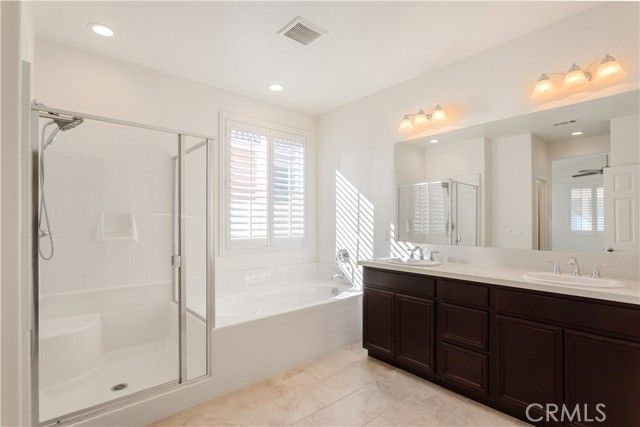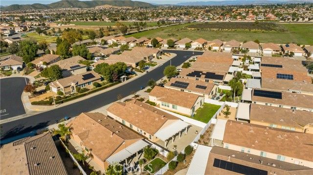 Welcome to this beautifully upgraded home located behind the gates of the highly sought-after senior community of Orchid in Menifee. Built in 2018, this thoughtfully designed residence offers 2 spacious bedrooms, 2 full bathrooms, and approximately 1,818 sq. ft. of living space, all situated on a nearly 5,700 sq. ft. lot. The interior features upgraded tile flooring throughout, modern cabinetry, and sleek stainless steel appliances, creating a clean and contemporary feel. High ceilings, custom shutters throughout, and an open, flowing floor plan make this home ideal for both everyday comfort and entertaining. The low-maintenance backyard is perfect for relaxing or hosting guests, complete with a covered Alumawood patio designed for year-round enjoyment. Additional highlights include a two-car garage and numerous tasteful upgrades throughout the home. Residents of Orchid enjoy resort-style amenities, including a pool, spa, tennis courts, and pickleball courts, all within a secure, gated community. Located in the heart of Menifee, one of Southern California’s fastest-growing cities, this home offers convenient access to shopping, dining, medical facilities, parks, golf courses, and the Menifee Lakes area. The city is known for its welcoming community feel, well-maintained amenities, and proximity to major freeways, making it easy to enjoy both local conveniences and nearby coastal or wine country destinations. This is a beautiful, move-in-ready home in a premier 55+ community—an exceptional opportunity to enjoy comfort, style, and an active lifestyle.