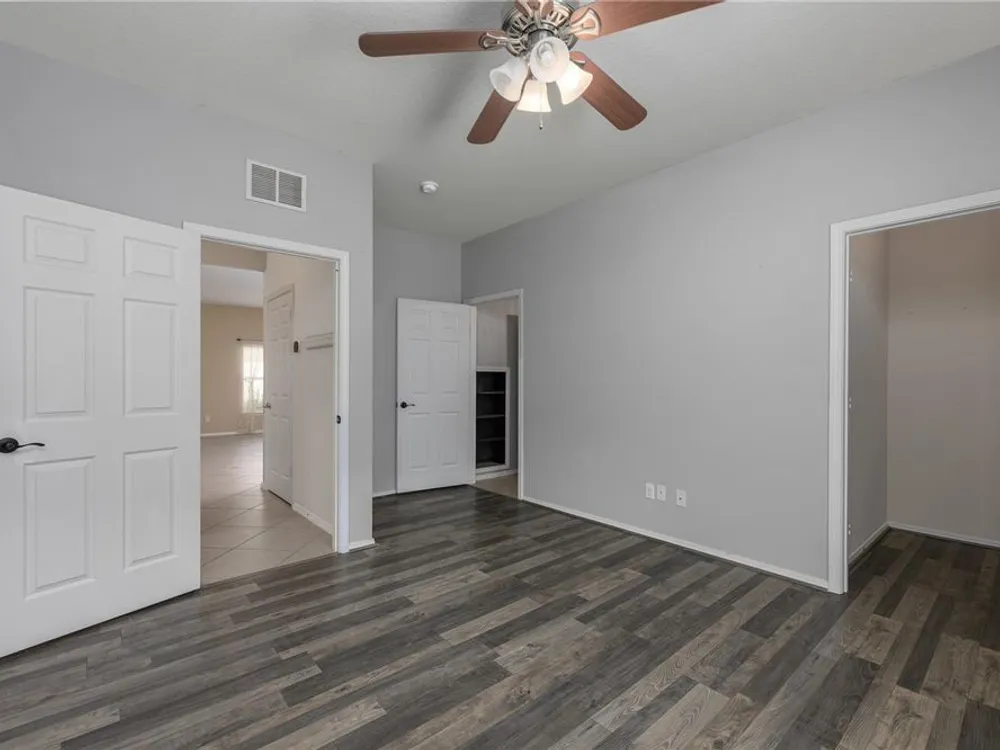 - Ceiling Fan(s), High Ceilings, Upper Level Primary, Solid-Wood Cabinets, Split Bedrooms, Thermostat, Walk-In Closet(s)