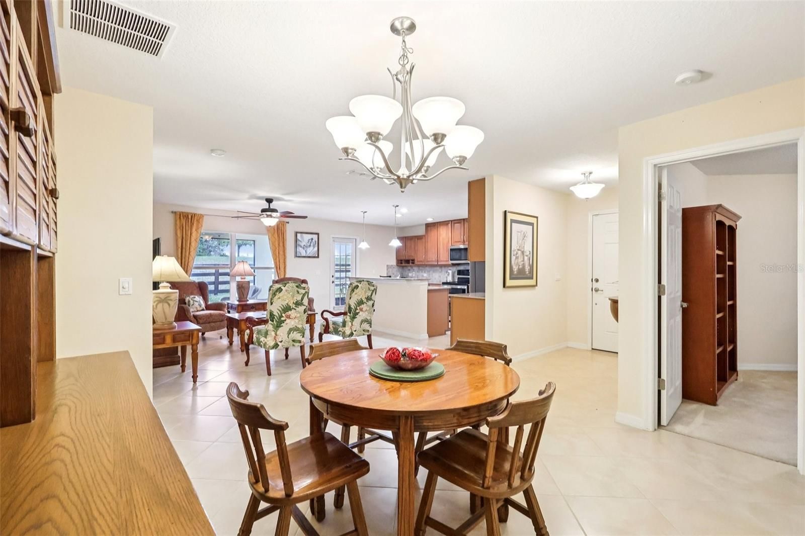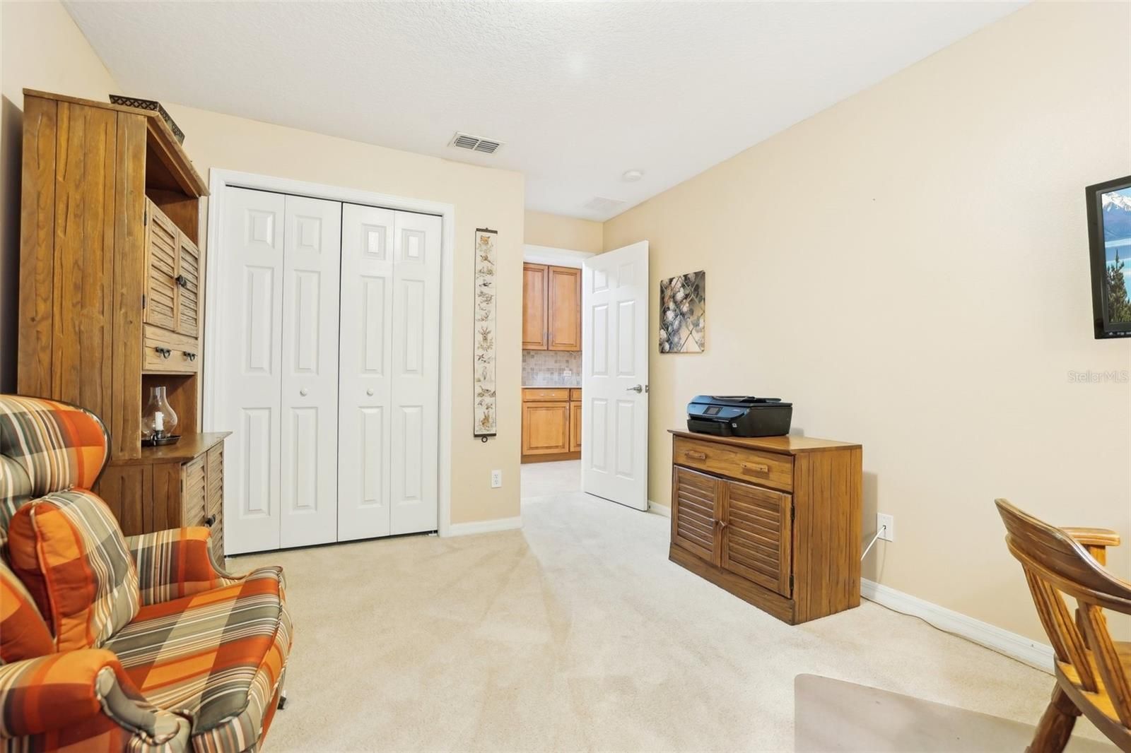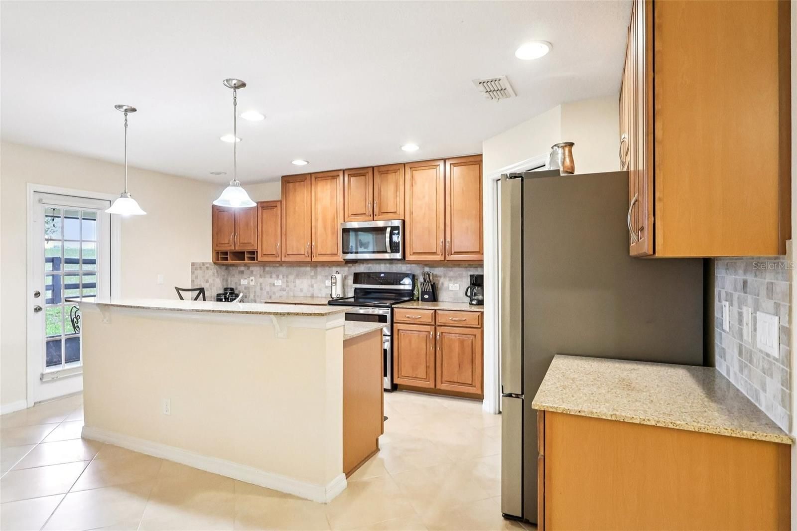 Welcome to Sullivan Ranch – Central Florida Living at Its Finest! Step into this beautifully maintained 3-bedroom, 2-bath Villa in the desirable gated community of Sullivan Ranch. With breathtaking views from your screened lanai, this home offers the ideal blend of comfort, style, and low-maintenance living. As the largest of the four Villa models, this residence features an open, light-filled floor plan with thoughtful upgrades throughout. The chef’s kitchen boasts a walk-in pantry, built-in desk, raised-panel solid wood cabinets, elegant 3cm light granite countertops, and a brand-new stainless steel refrigerator. A stylish mix of upgraded lighting and plumbing fixtures adds a designer touch. The primary suite offers a spa-like retreat with a walk-in shower, oversized soaking tub, and dual vanity. Light grey/beige tile flooring flows throughout the main living areas and baths, with plush carpet in the bedrooms. Additional highlights include a coffee bar near the garage entrance providing additional storage or workspace, oversized 2-car garage with storage cabinets and shelving, and a roof replaced in 2023 (covered by HOA). Washer and dryer are included for your convenience. Lifestyle perks are endless – a low HOA fee covers yard care, irrigation maintenance, exterior painting, roof repair/replacement, and even perimeter termite treatment. Community amenities include a resort-style pool, clubhouse, gym, lighted walking trails, dog park, and beautifully maintained grounds with walking trail winding through the park-like community. Located minutes from Round Lake Charter School (PreK–8), the Central Florida Beltway, and the charming historic downtowns of Mount Dora, Eustis, and Tavares, this home offers easy access to shopping, dining, theme parks, and more. Don’t miss your chance to own this move-in ready Villa with unmatched views and a maintenance-free lifestyle in one of Central Florida’s premier communities.