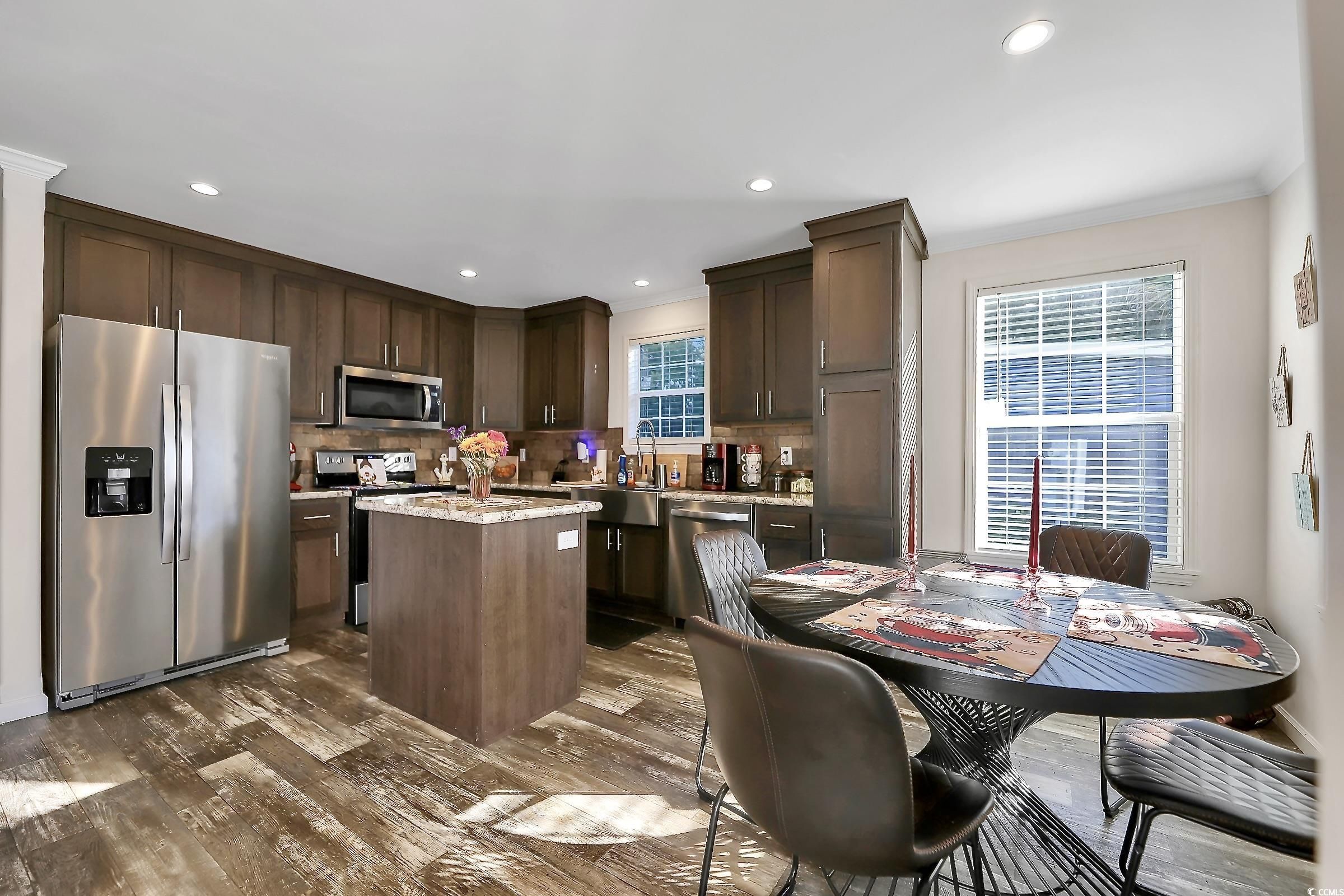 - Ceiling Fan(s), Dual Sinks, Main Level Primary, Separate Shower, Kitchen Island, Stainless Steel Appliances, Solid Surface Counters