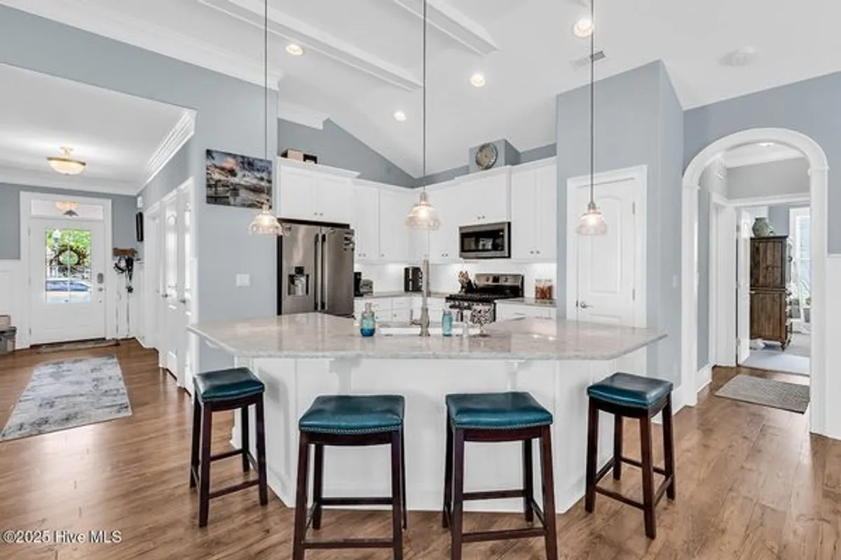 Back on Market at no fault of seller. Welcome to exceptional living at 3032 Eno Lane, a custom-built home with four bed, three bath (fourth bedroom currently being used as office) in Brunswick Forest's highly sought after Park Landing community. An elegant foyer with judges panels draws you into a grand open-concept living area, where soaring 14-foot ceilings with exposed beams create a dramatic and inviting atmosphere. This space is perfect for entertaining, with built-in shelving and a gas fireplace, and flows seamlessly into a chef-inspired kitchen. Prepare gourmet meals with ease, surrounded by beautiful Quartz countertops and a spacious counter-height island. Tons of natural light enters through the abundant 6' windows throughout and the double sliding doors. Enjoy outdoor living on the generous screened-in porch, surrounded by custom plantings and crepe myrtles, with low-maintenance Hardie Plank siding and HOA-provided lawn care for stress-free enjoyment. PLEASE Note: Only a portion of the yard is fenced in but can be extended to property lines should you choose. This home is just a short trip from Brunswick Forest's world-class amenities, including pools, tennis, pickleball, walking/biking trails, with the private Cape Fear Golf Course surrounding the community. Just minutes to local shops and Brunswick County beaches. Don't miss out, call for a showing today!