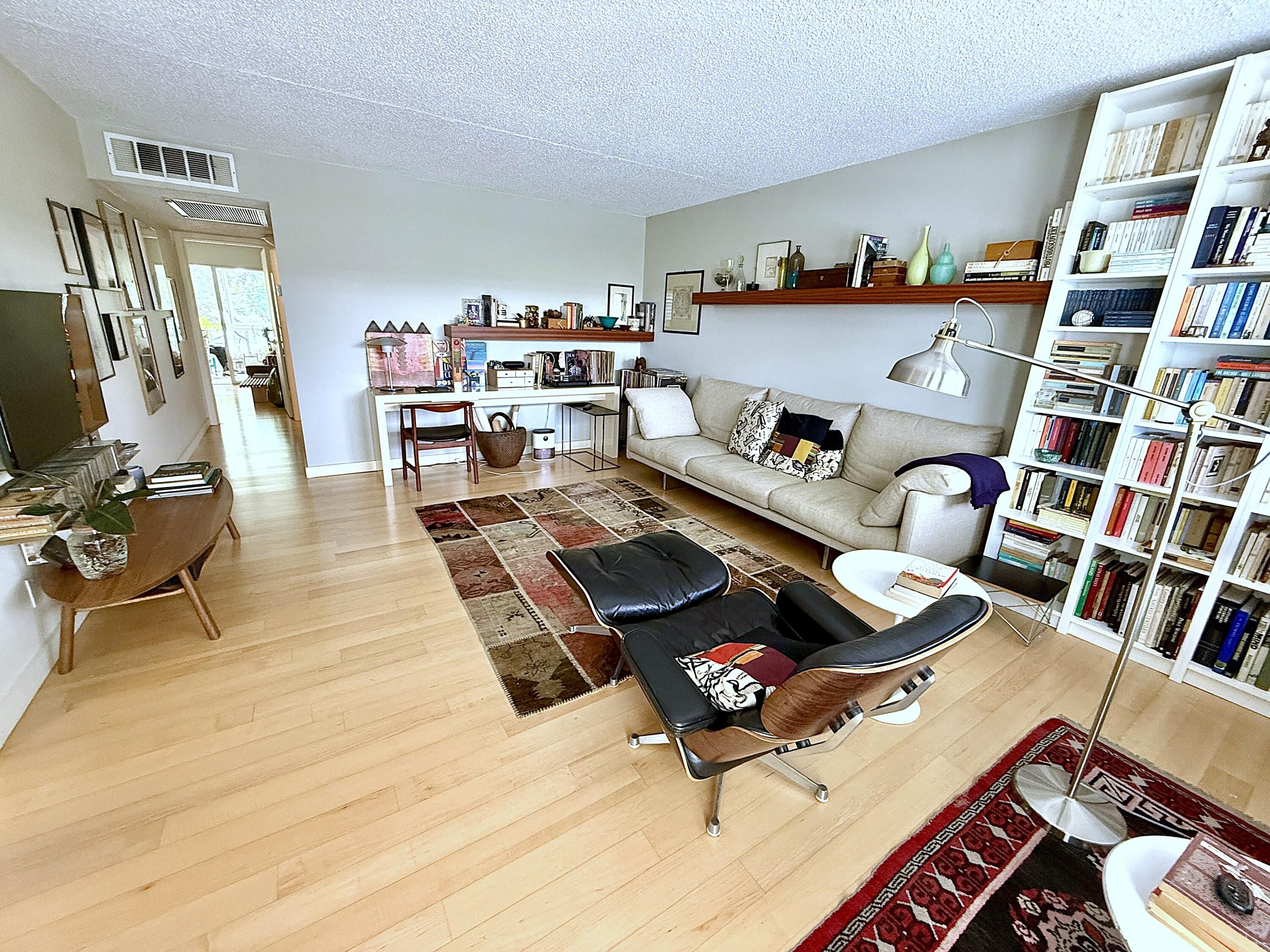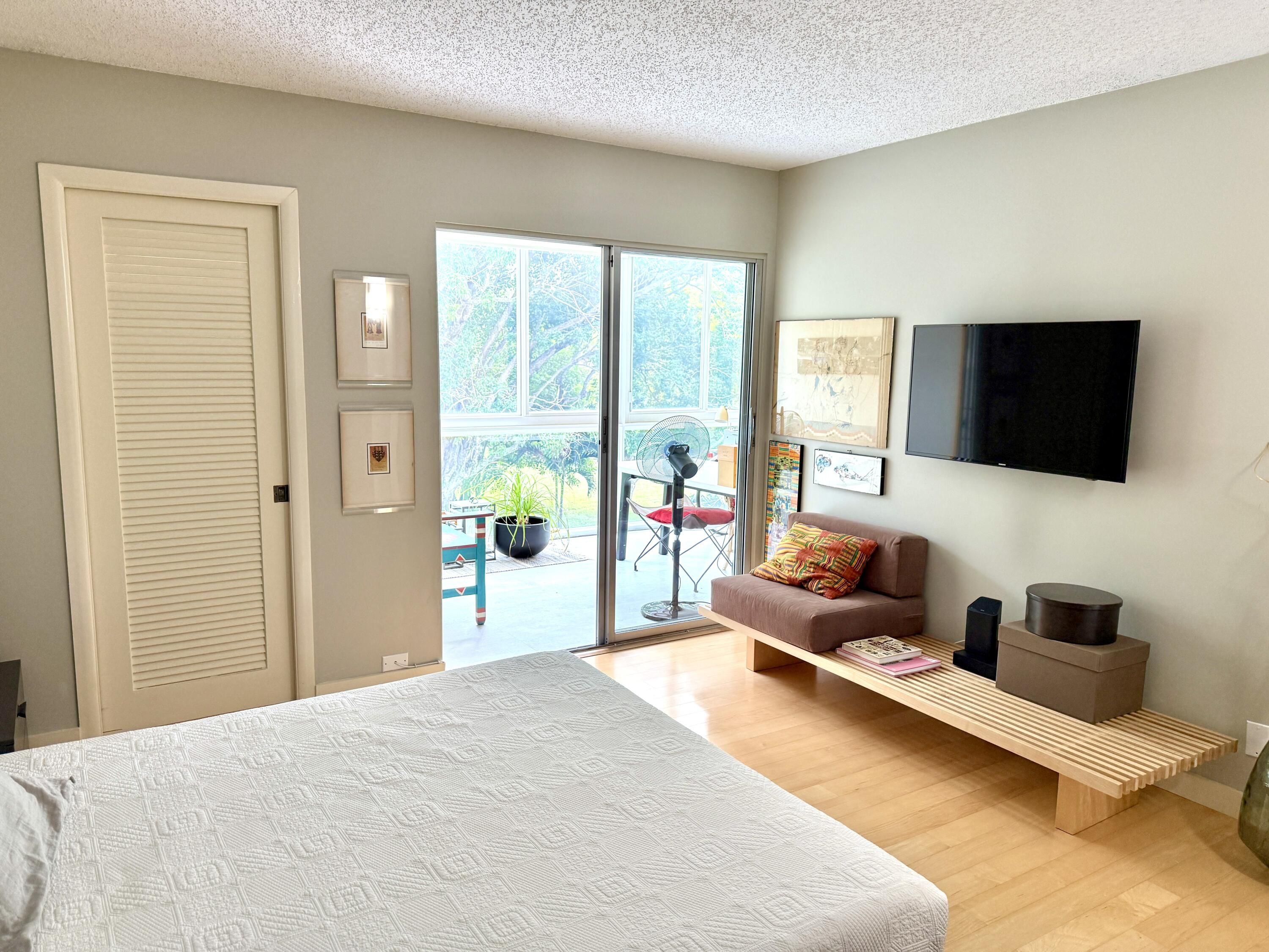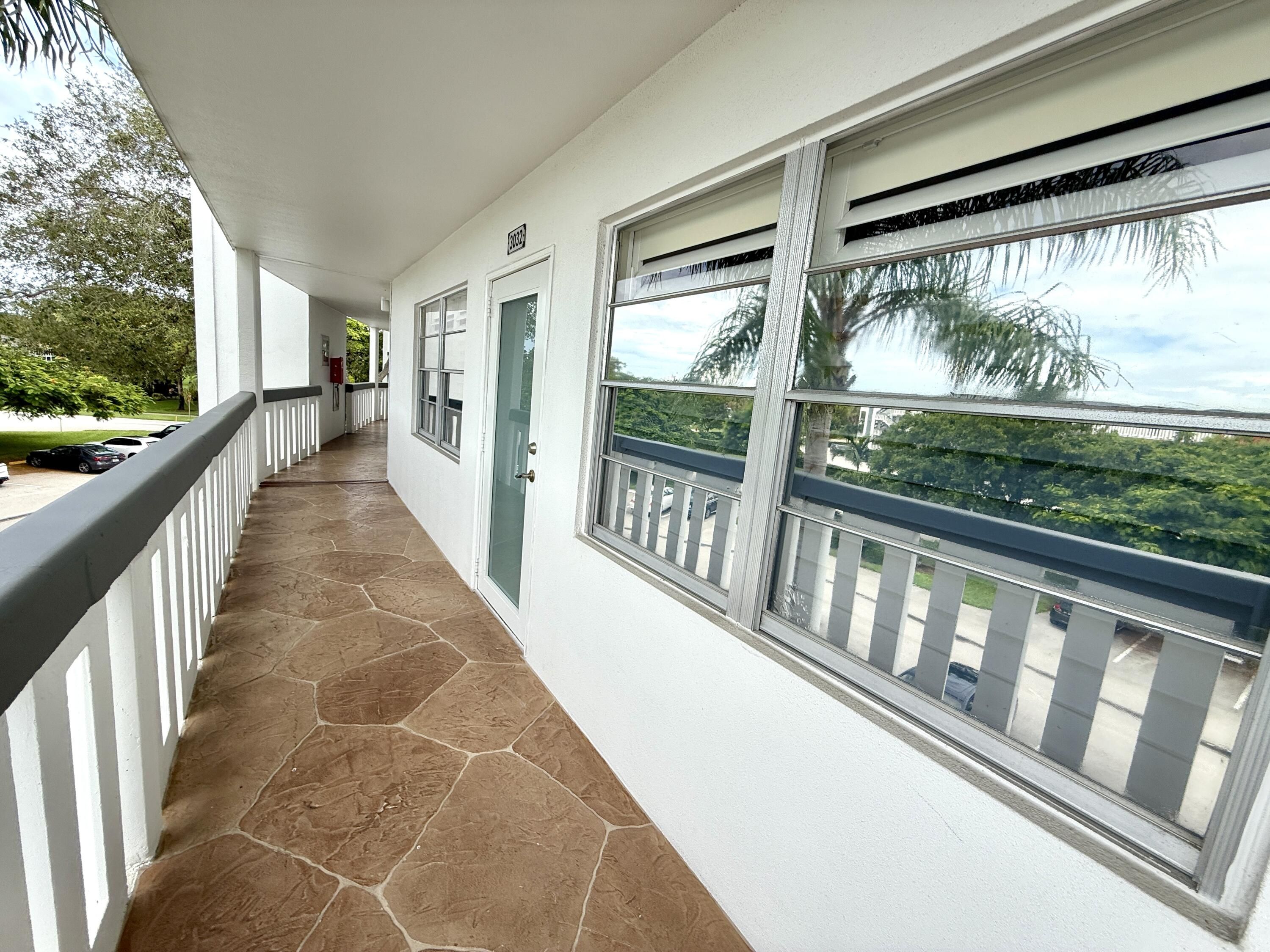 Outstandiing Garden View from Large Enclosed Patio w/ Impact Hurricane Windows & Impact Front Door. Enjoy this Lovely, Spacious 2 BR 2 Baths 1000 SF unit. Renovated kitchen with stainless steel appliances. Replaced AC & hot water heater 2022. Gorgeous hard wood floors throughout & plantation shutters in LR & DR. Building well maintained & roof replace in 2022. Walking distance to Oakridge community pool. Clubhouse has indoor+outdoor pools, cafe, 1600 seat theater, clubs, tennis, billiards, pickleball, volleyball, ping pong, bocce, shuffleboard, fitness center, hiking+bike trails, putting green. Close to beaches, entertainment, dining, shopping. 55+ age.