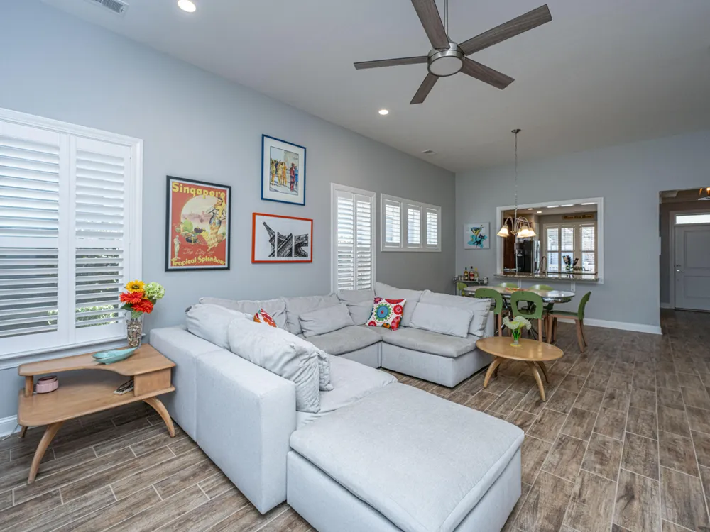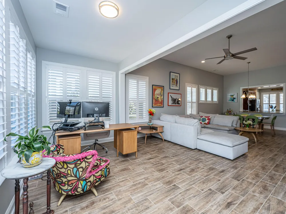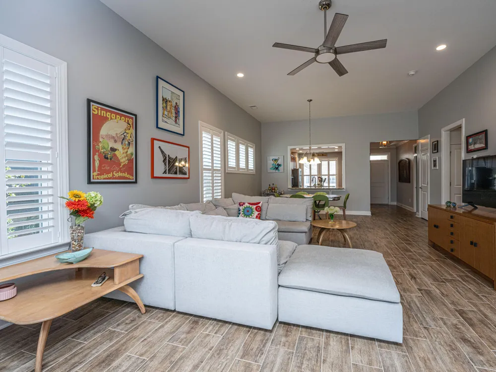 - Smooth Ceilings, Tray Ceiling(s), High Ceilings, Garden Tub, Kitchen Island, Walk-In Closet(s), Ceiling Fan(s), Eat-in Kitchen, Entrance Foyer, Living/Dining Room, Pantry