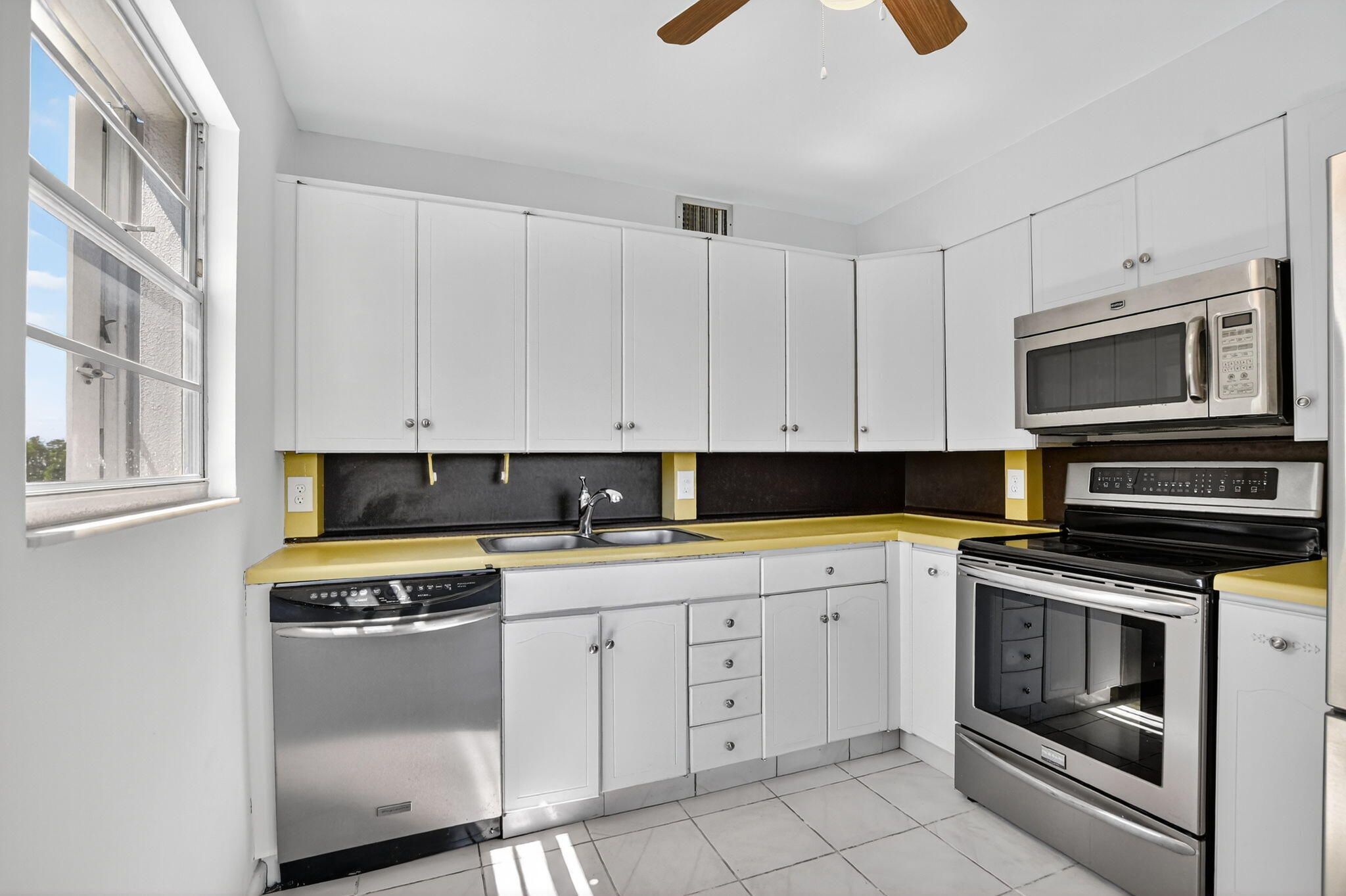 Experience the perfect combination of light, space, and comfort in this larger corner two-bedroom, two-bathroom condo. Oversized windows throughout fill every room with natural light and frame serene garden views. The primary suite offers an impressive walk-in closet, providing both style and functionality. Recent enhancements include fresh designer paint, new modern lighting, and storm shutters throughout. A brand-new air conditioning system, installed just last month, ensures comfort in every season.This spacious corner residence is move-in ready and awaits its next owner. Schedule your private showing and present your offer today.