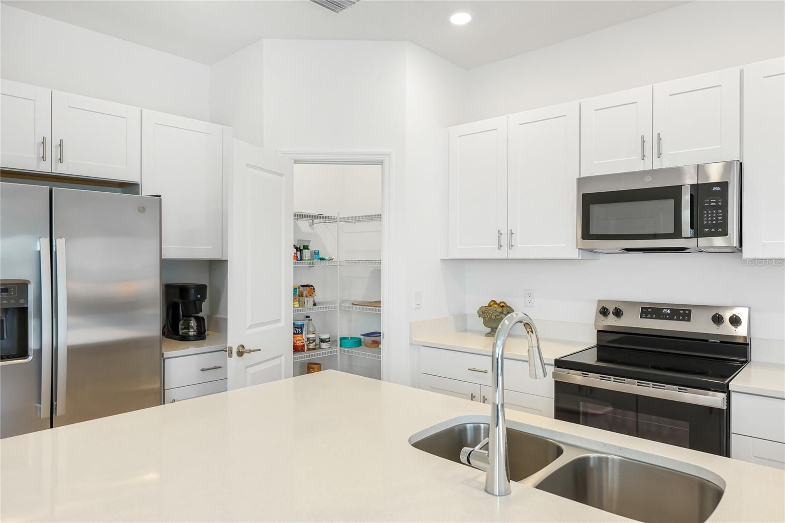 - Eat-in Kitchen, Kitchen/Family Room Combo, Open Floorplan, Upper Level Primary, Solid Surface Counters, Walk-In Closet(s), Window Treatments
