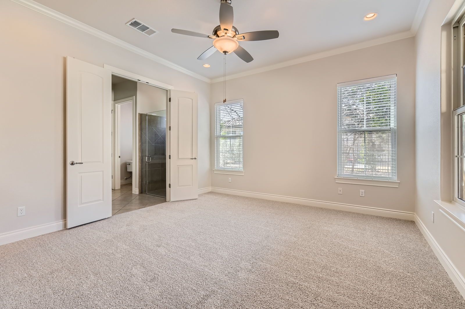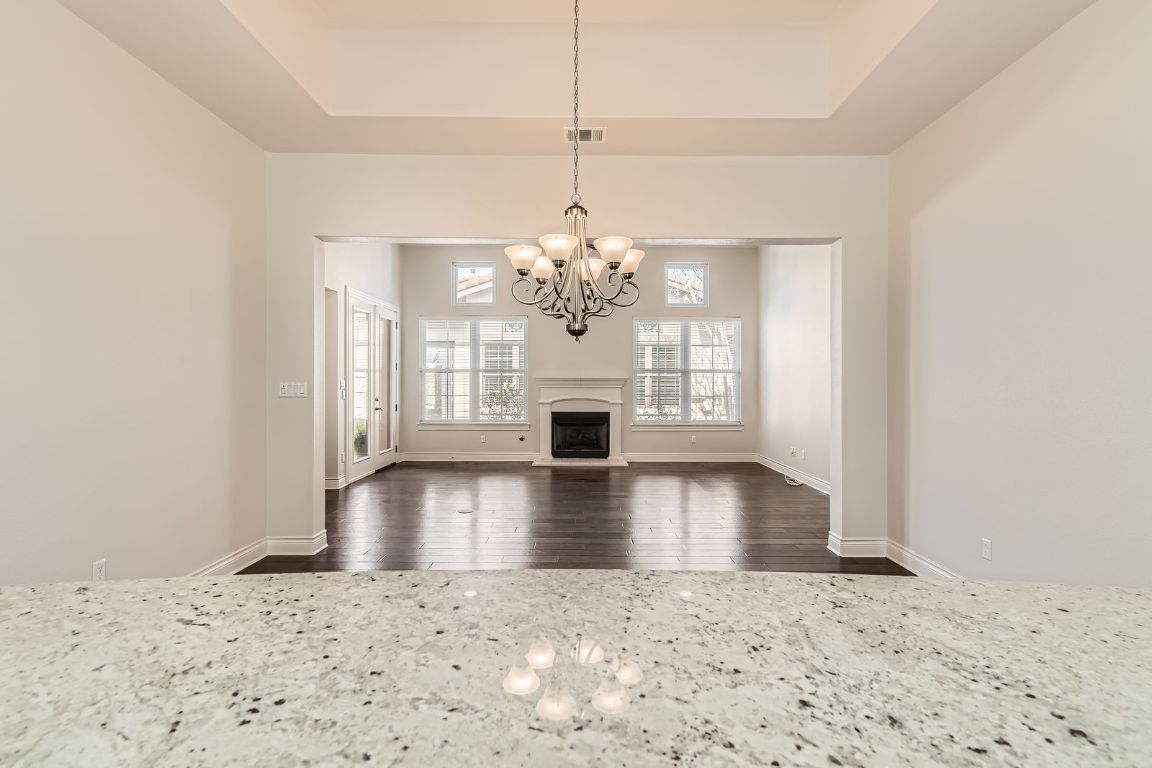 - Breakfast Bar, Ceiling Fan(s), Chandelier, Crown Molding, Entrance Foyer, French Door(s)/Atrium Door(s), Granite Counters, High Ceilings, Kitchen Island, NoInteriorSteps, Open Floorplan, Pantry, Recessed Lighting, Storage, Bar, Natural Woodwork, Walk-In Closet(s)