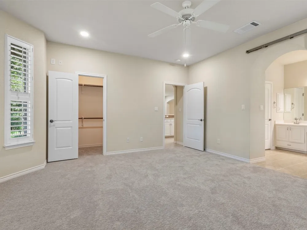- Breakfast Bar, Built-in Features, Ceiling Fan(s), Separate/Formal Dining Room, Double Vanity, Entrance Foyer, French Door(s)/Atrium Door(s), Granite Counters, Kitchen Island, Multiple Dining Areas, Multiple Primary Bathrooms, NoInteriorSteps, Open Floorplan, Pantry, Recessed Lighting, Storage, Solid Surface Counters, Walk-In Closet(s)