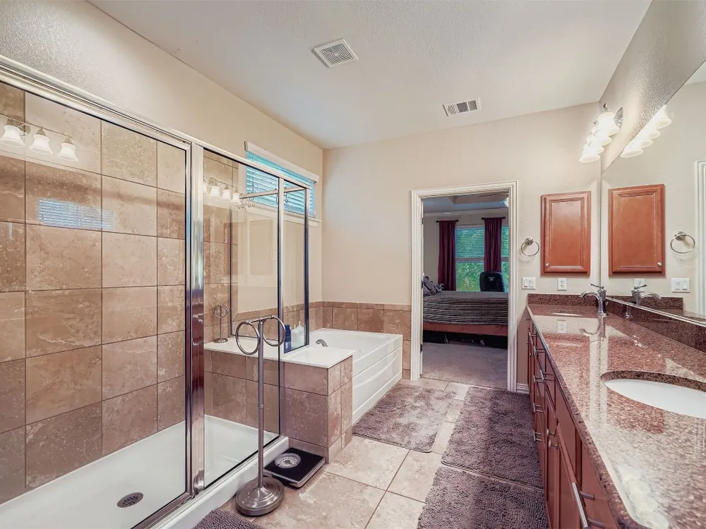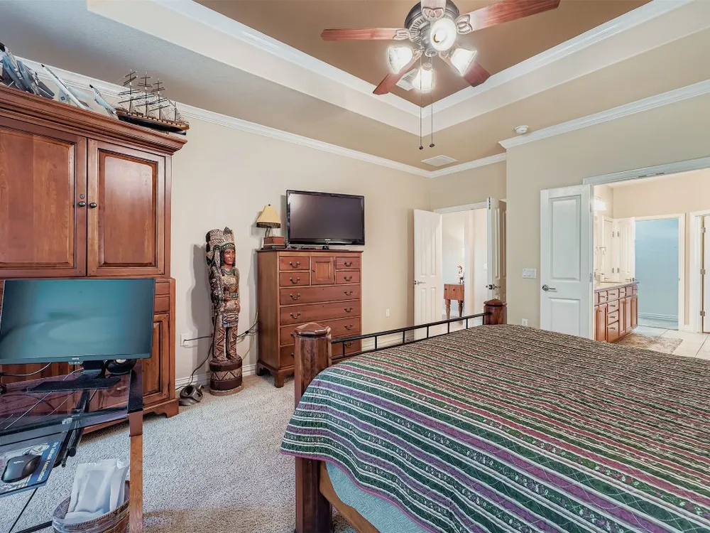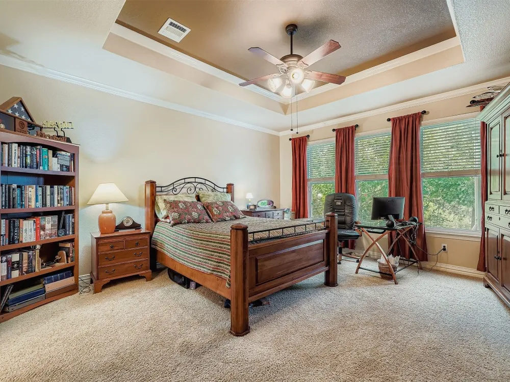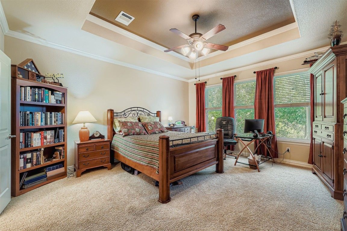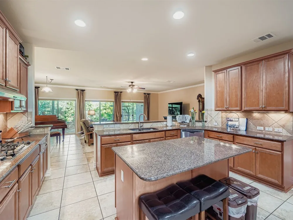 - Breakfast Bar, Tray Ceiling(s), Ceiling Fan(s), Crown Molding, Separate/Formal Dining Room, Double Vanity, Granite Counters, High Ceilings, In-Law Floorplan, Kitchen Island, Multiple Living Areas, Multiple Dining Areas, Main Level Primary, Multiple Primary Suites, NoInteriorSteps, Open Floorplan, Pantry, Walk-In Closet(s), High Speed Internet