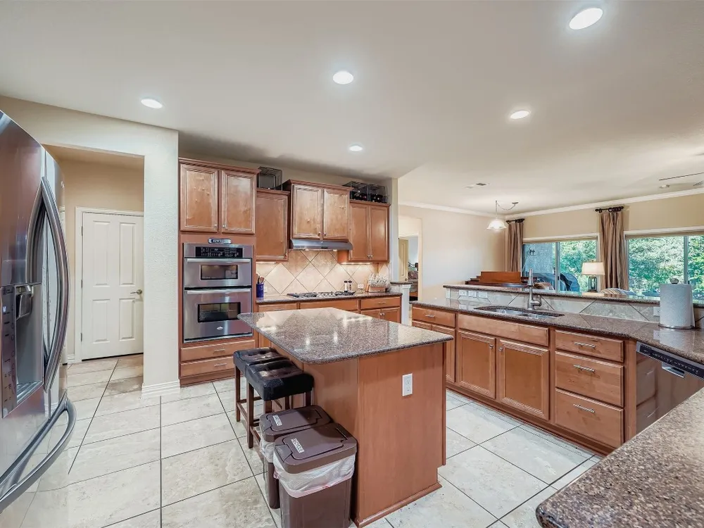 - Dishwasher, Exhaust Fan, Gas Cooktop, Disposal, Microwave, Oven, Refrigerator, Stainless Steel Appliance(s), Water Softener