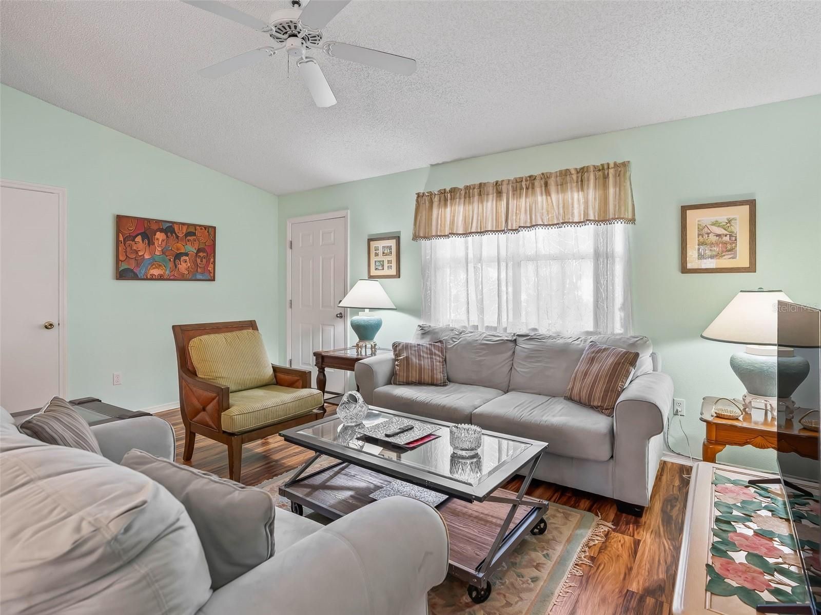 - Ceiling Fan(s), Kitchen/Family Room Combo, Living/Dining Room, Open Floorplan, Main Level Primary, Split Bedrooms, Thermostat, Vaulted Ceiling(s), Walk-In Closet(s)