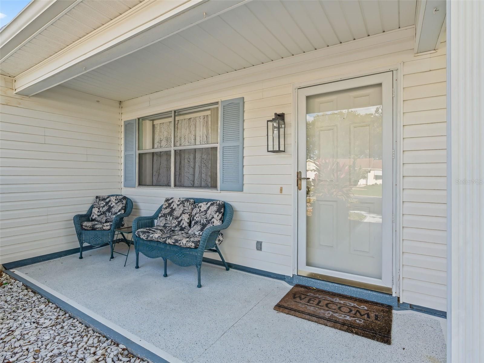 Fantastic Location! Exceptional home situated on a nice size Pond with a View of the Wildlife Preserve! No Rear Neighbors! 2/2 + Family Room Custom Laramie in the Village of Rio Ponderosa! BOND PAID! HVAC 2023! FURNISHED! This highly sought after Village of Rio Ponderosa is conveniently located between Lake Sumter Landing and Spanish Springs Town Square, where you can enjoy nightly Entertainment 365 days a year! This Laramie model offers a 1 1/2 Car Garage, Stunning Painted Concrete Driveway and Walkway, an Open Concept and Split Floor plan with Vaulted ceilings, Gorgeous Laminate Flooring, a Family room, and a Spacious Dining and Living area combination featuring sliding door access to the Screened Lanai, creating a Spectacular Space for Social Gatherings, and Relaxing with Family! The Light, Bright Kitchen showcases a Gorgeous Upgraded Light Fixture, Cabinets with New Hardware, New Quartz Countertops, Plenty of Counter Space, Vaulted ceiling, and a Nice Size Breakfast Bar. The 12 x 13 Family offers an additional living space, and features a Designer Chandelier. The Split Floor plan provides Maximum Privacy for both the Owners and their Guest, with the Primary Suite commanding one side of the home, while the Family room, Guest Bedroom and Guest Bathroom are located on the opposite side of the home. The Primary suite offers a Gorgeous Preserve and Pond View, 2 Walk in Closets, and an En Suite Bathroom. The En Suite bathroom showcases a Stunning Vessel Sink, New Quartz Topped Vanity, and a Walk in Shower. The Second Bedroom provides a Nice Size Built in Closet, and the Guest Bathroom has a Vessel Sink, New Quartz Countertops, Tub & Shower combination, and offers convenience, along with plenty space for your guests. Retreat to the Screened Lanai to Relax, and Enjoy Your Own Private Oasis with No Rear Neighbors, Multiple Sitting areas, with Water, and Preserve Views, or Cookout on the Back Patio! This Private Paradise is perfect for Enjoying Outdoor Dining, Beautiful Florida Sunsets, and Tropical Breezes! This Custom Laramie Offers a Fantastic Location, a Well Designed Floor Plan, No Rear Neighbors, a Tremendous Outdoor Living Space with Panoramic Views of the Wildlife Preserve , a Screened Lanai, and a Backyard with a Beautiful Parklike setting, Enhancing the Outdoor Living Experience! The Village of Rio Ponderosa is Conveniently Located between Lake Sumter Landing and Spanish Springs; close to El Santiago and Savannah Recreation Centers; Tierra Del Sol Country Club; De La Vista Executive Golf Course; additional recreation centers, golf, pickle ball, and swimming pools; the Villages Regional Hospital; and CR 466 and US HWY 27/441 with Plenty of Shopping, Restaurants, Banks, and Medical.