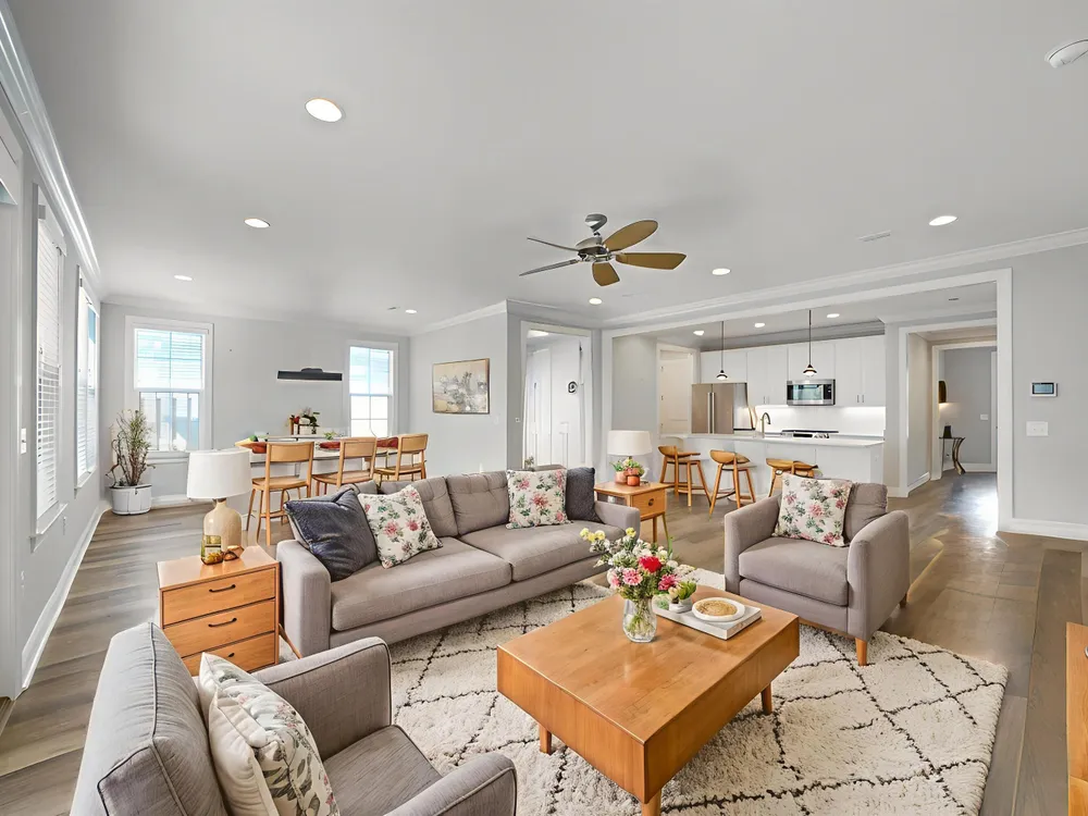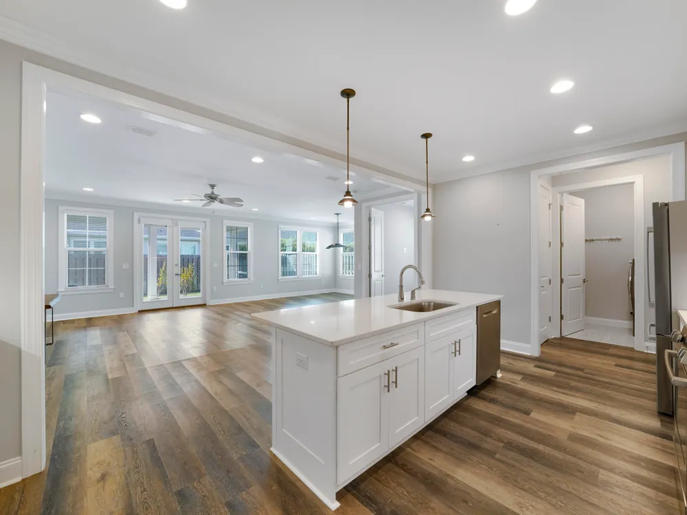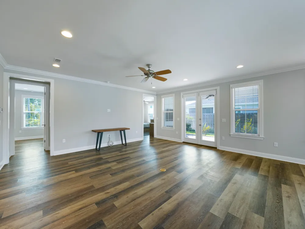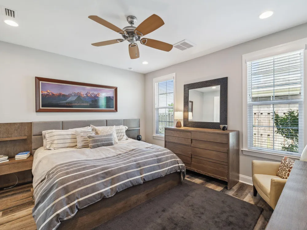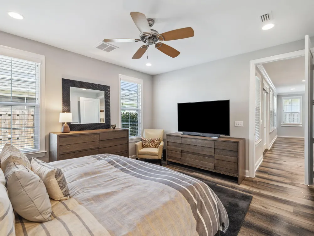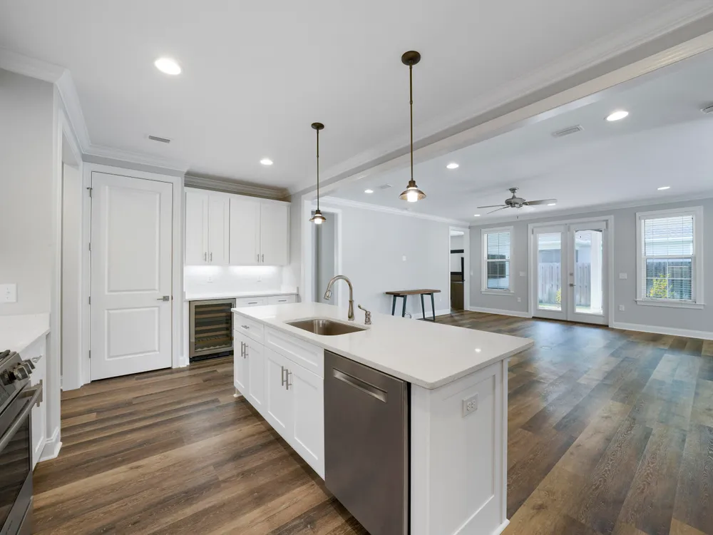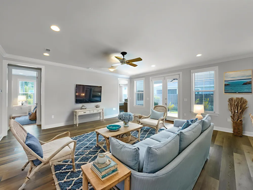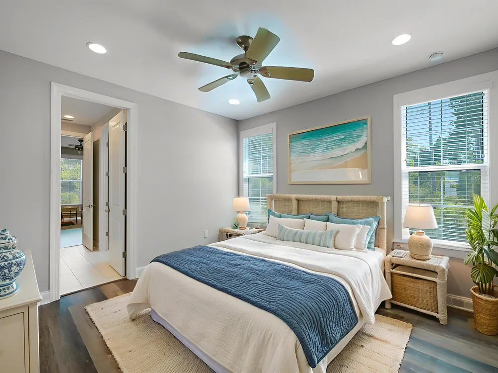 Discover coastal living at its finest at 304 Windrow Way, nestled in the Stillwater in the sought-after Watersound Origins, non-short term rental, community. This expanded Bella II floor plan offers single-story living with 3 bedrooms, 2.5 bathrooms, a dedicated office, and a 2-car garage. Designed with comfort and functionality in mind, the open-concept layout features 9' ceilings, quartz countertops in the kitchen and baths, soft-close wood cabinetry, stainless steel Bosch gas appliances, under-cabinet lighting, crown molding, and luxury vinyl flooring throughout the main living spaces.The thoughtful design continues outdoors with timeless heirloom brick, a gas stub for grilling, an irrigation system, and a spacious screened-in back porch--perfect for relaxing or entertaining.