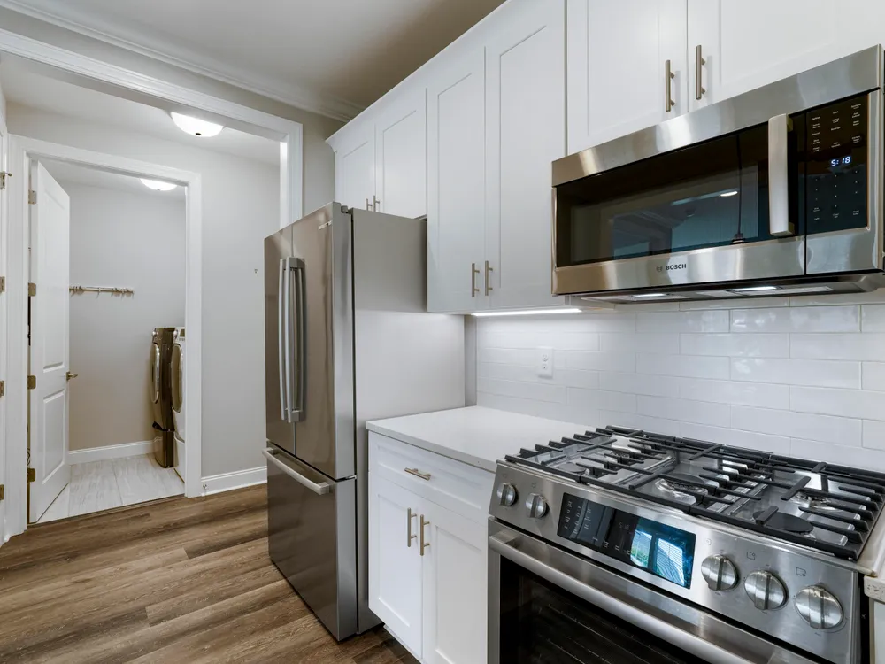 - Dishwasher, Disposal, Dryer, Microwave, Refrigerator, Ice Maker, Gas Stove, Gas Oven, Washer, Wine Refrigerator