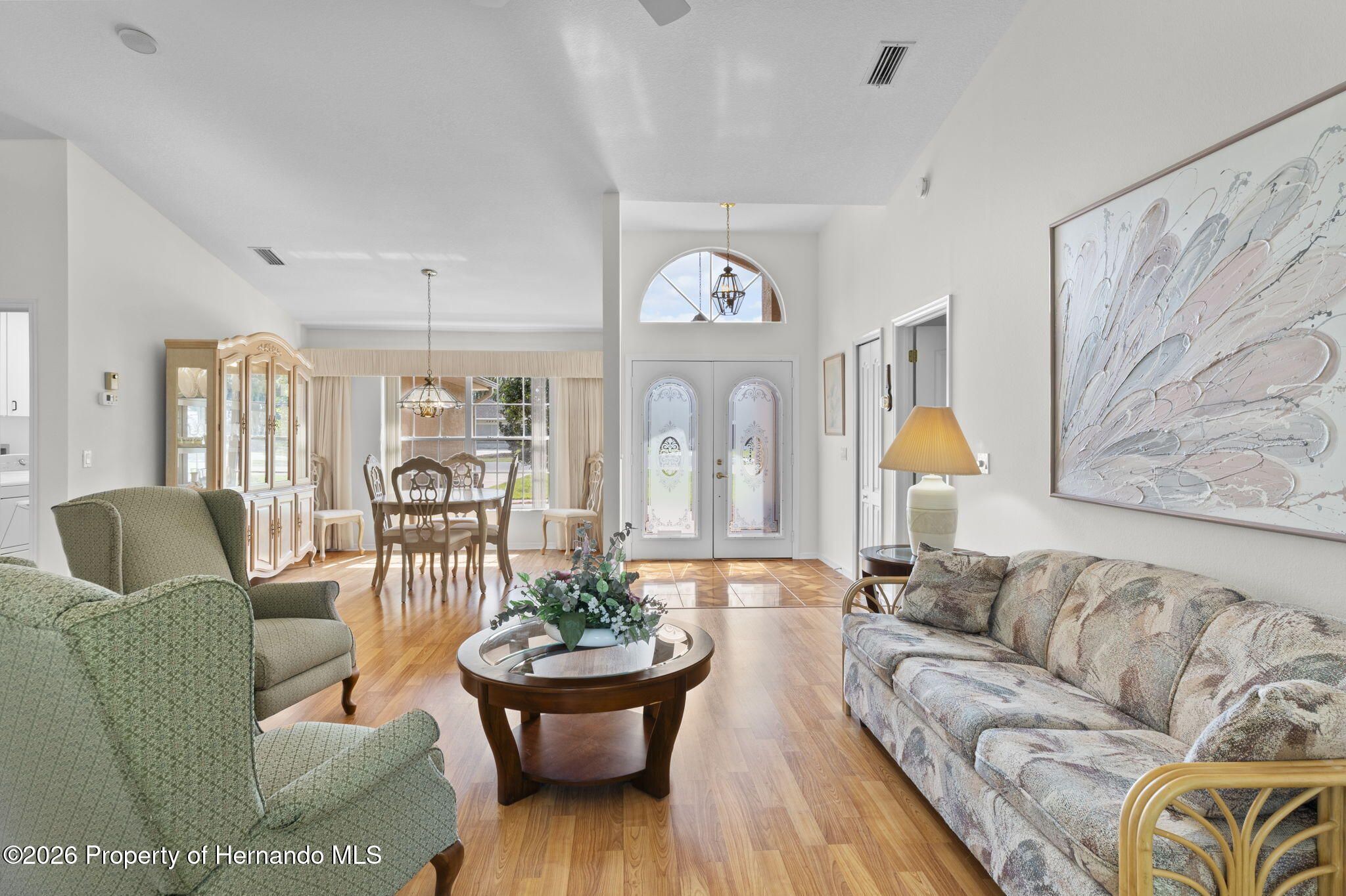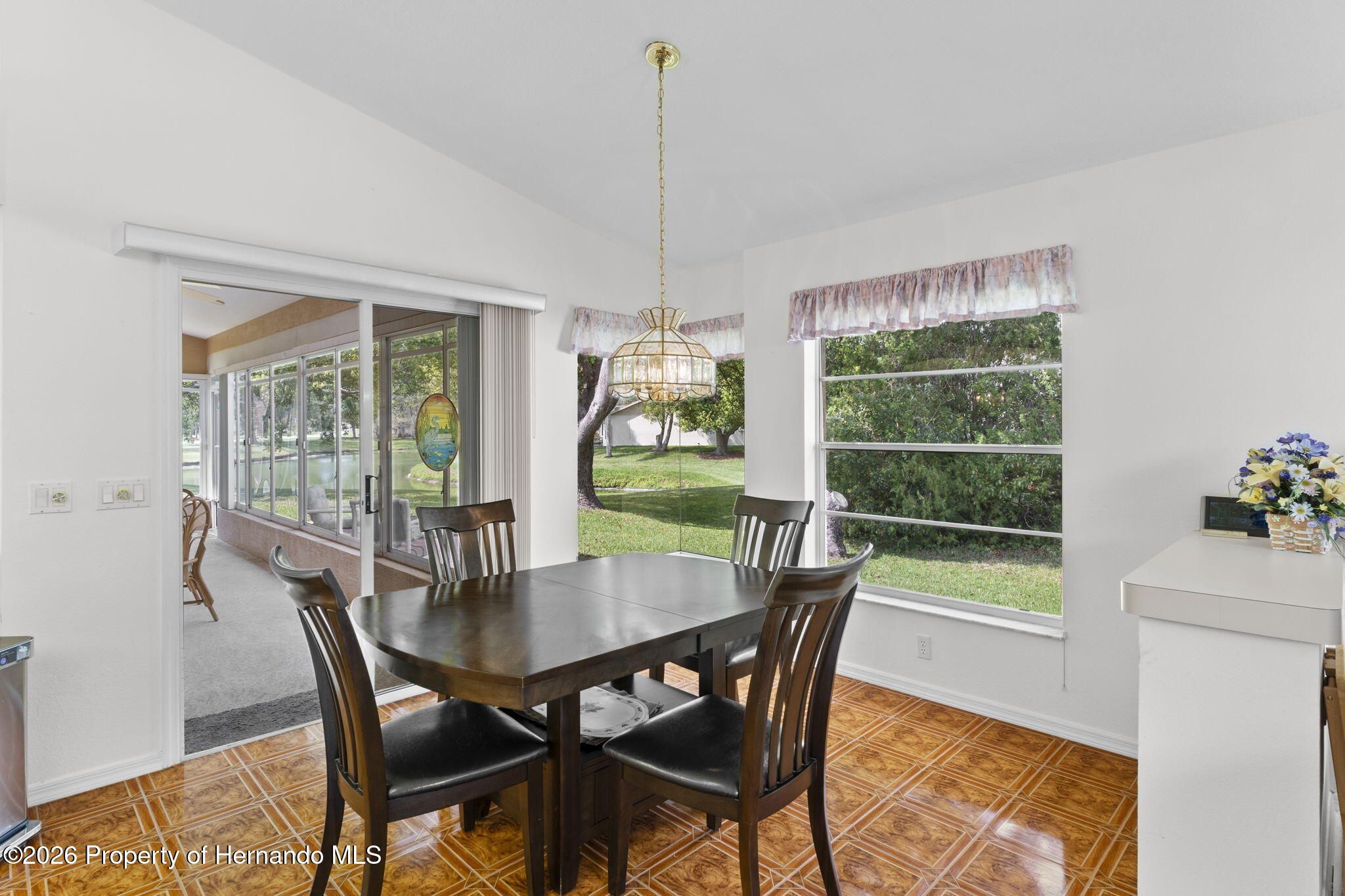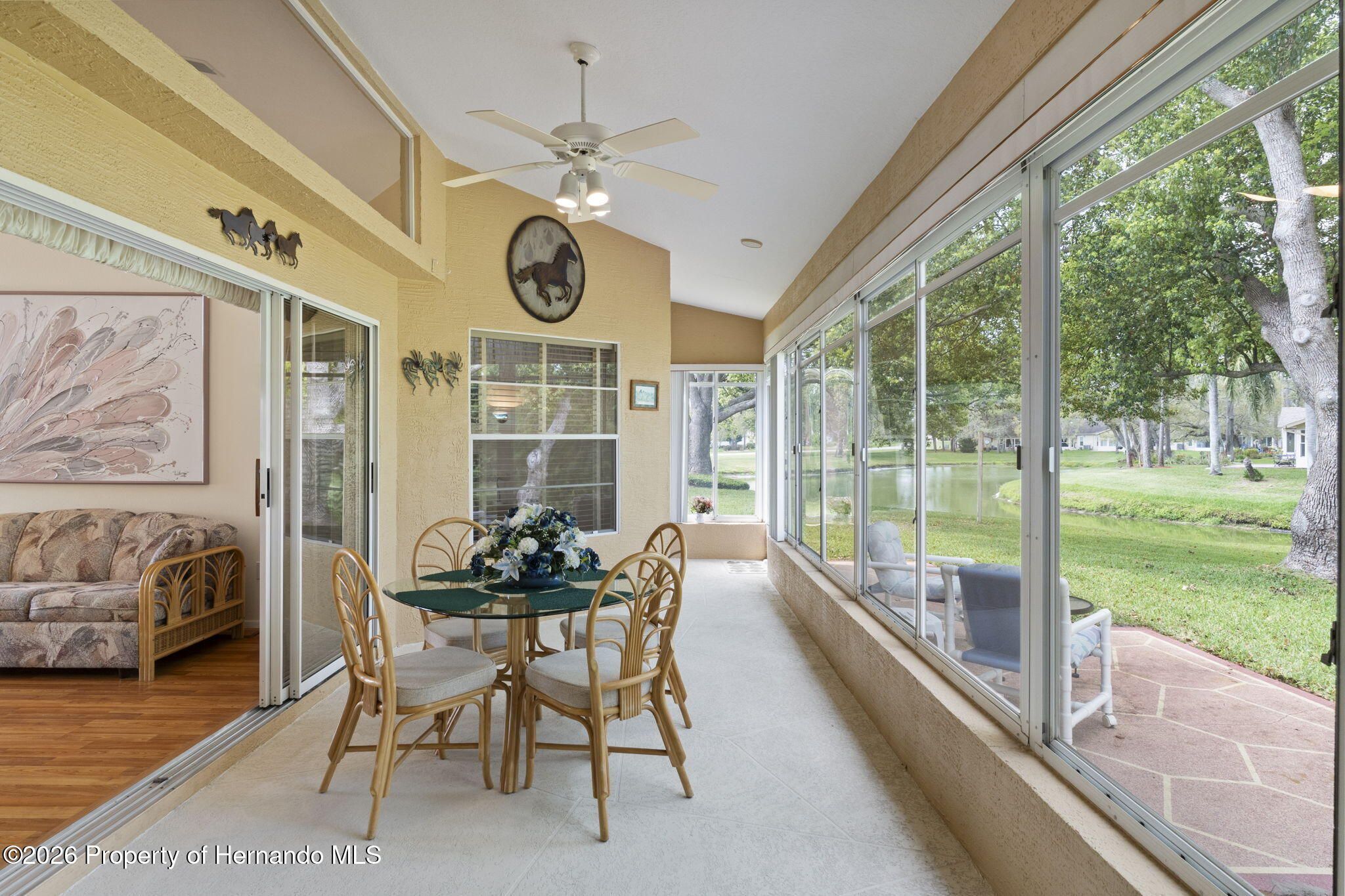 Welcome to 3047 Rippling Brook Way in the award-winning Timber Pines 55+gated golf community with its resort-style living! Situated in a quiet cul-de-sac and offering pond views, this custom 2 bedroom, 2 bath split floor plan home is furnished and move-in ready! Upon entering the home through the double glass doors, you will find a spacious and airy living and dining area with sliders to the lanai. The large kitchen features plenty of cabinets with pull out drawers and opens to the family room providing for a unique open floor plan and continuing the spacious airy feeling. All great for entertaining! Off the lanai you will find a paver outdoor patio to have your morning cup of coffee or afternoon beverage overlooking the pond setting. A corner window in the kitchen provides a seamless panoramic view of the backyard with the pond views. The spacious primary bedroom provides a large walk-in closet and ensuite bath with double sinks, jetted tub, walk-in shower and toilet. The roomy guest bedroom is conveniently located near the hall bath which features vanity and tub/shower combination. An inside laundry room with washer/dryer and utility sink leads to the two-car garage which has an epoxy floor and sliding screen door. HVAC (2022); Roof (2016). Life in Timber Pines means access to exceptional amenities--four pristine Golf Courses, Clubhouse and Restaurant, Performing Arts Center, state-of-the art Fitness & Wellness Center, award-winning Pickleball Courts, Tennis Courts, Resident Activity Center, Paws Park, Bocce, Billiards, Wood Shop, Arts & Crafts Center, 2 geothermal pools and over a 100+ clubs and activities. HOA dues includes Spectrum cable TV with two boxes and high-speed internet. Timber Pines is conveniently located next to local shopping, restaurants, hospitals and easy access to major highways to Tampa and Orlando, gulf beaches, along with attractions in Florida's Nature Coast. THIS HOME SHOWCASES DISTINCTIVE CUSTOM FEATURES!!! SCHEDULE YOUR PRIVATE SHOWING TODAY AND START ENJOYING RESORT STYLE LIVING!!!