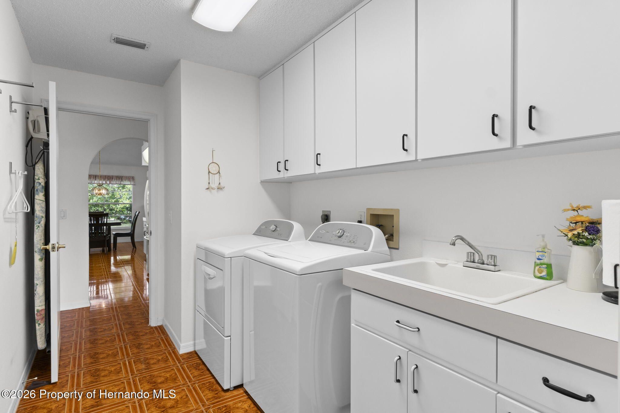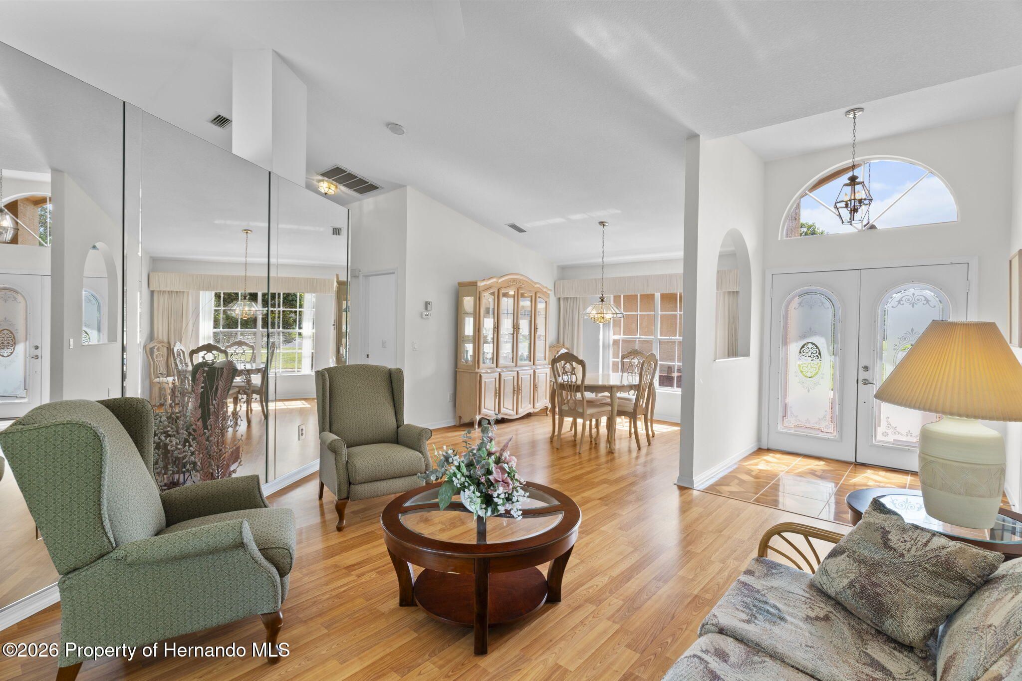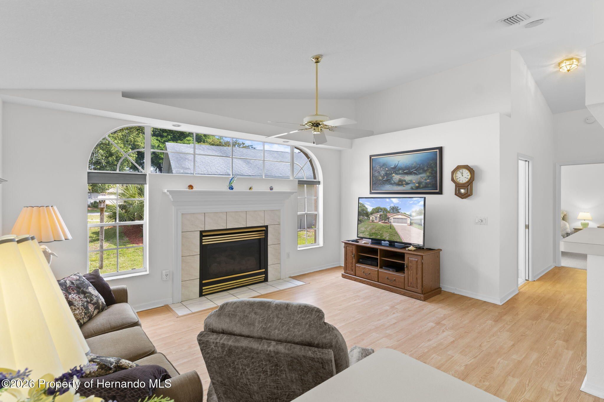 Welcome to 3047 Rippling Brook Way in the award-winning Timber Pines 55+gated golf community with its resort-style living! Situated in a quiet cul-de-sac and offering pond views, this custom 2 bedroom, 2 bath split floor plan home is furnished and move-in ready! Upon entering the home through the double glass doors, you will find a spacious and airy living and dining area with sliders to the lanai. The large kitchen features plenty of cabinets with pull out drawers and opens to the family room providing for a unique open floor plan and continuing the spacious airy feeling. All great for entertaining! Off the lanai you will find a paver outdoor patio to have your morning cup of coffee or afternoon beverage overlooking the pond setting. A corner window in the kitchen provides a seamless panoramic view of the backyard with the pond views. The spacious primary bedroom provides a large walk-in closet and ensuite bath with double sinks, jetted tub, walk-in shower and toilet. The roomy guest bedroom is conveniently located near the hall bath which features vanity and tub/shower combination. An inside laundry room with washer/dryer and utility sink leads to the two-car garage which has an epoxy floor and sliding screen door. HVAC (2022); Roof (2016). Life in Timber Pines means access to exceptional amenities--four pristine Golf Courses, Clubhouse and Restaurant, Performing Arts Center, state-of-the art Fitness & Wellness Center, award-winning Pickleball Courts, Tennis Courts, Resident Activity Center, Paws Park, Bocce, Billiards, Wood Shop, Arts & Crafts Center, 2 geothermal pools and over a 100+ clubs and activities. HOA dues includes Spectrum cable TV with two boxes and high-speed internet. Timber Pines is conveniently located next to local shopping, restaurants, hospitals and easy access to major highways to Tampa and Orlando, gulf beaches, along with attractions in Florida's Nature Coast. THIS HOME SHOWCASES DISTINCTIVE CUSTOM FEATURES!!! SCHEDULE YOUR PRIVATE SHOWING TODAY AND START ENJOYING RESORT STYLE LIVING!!!