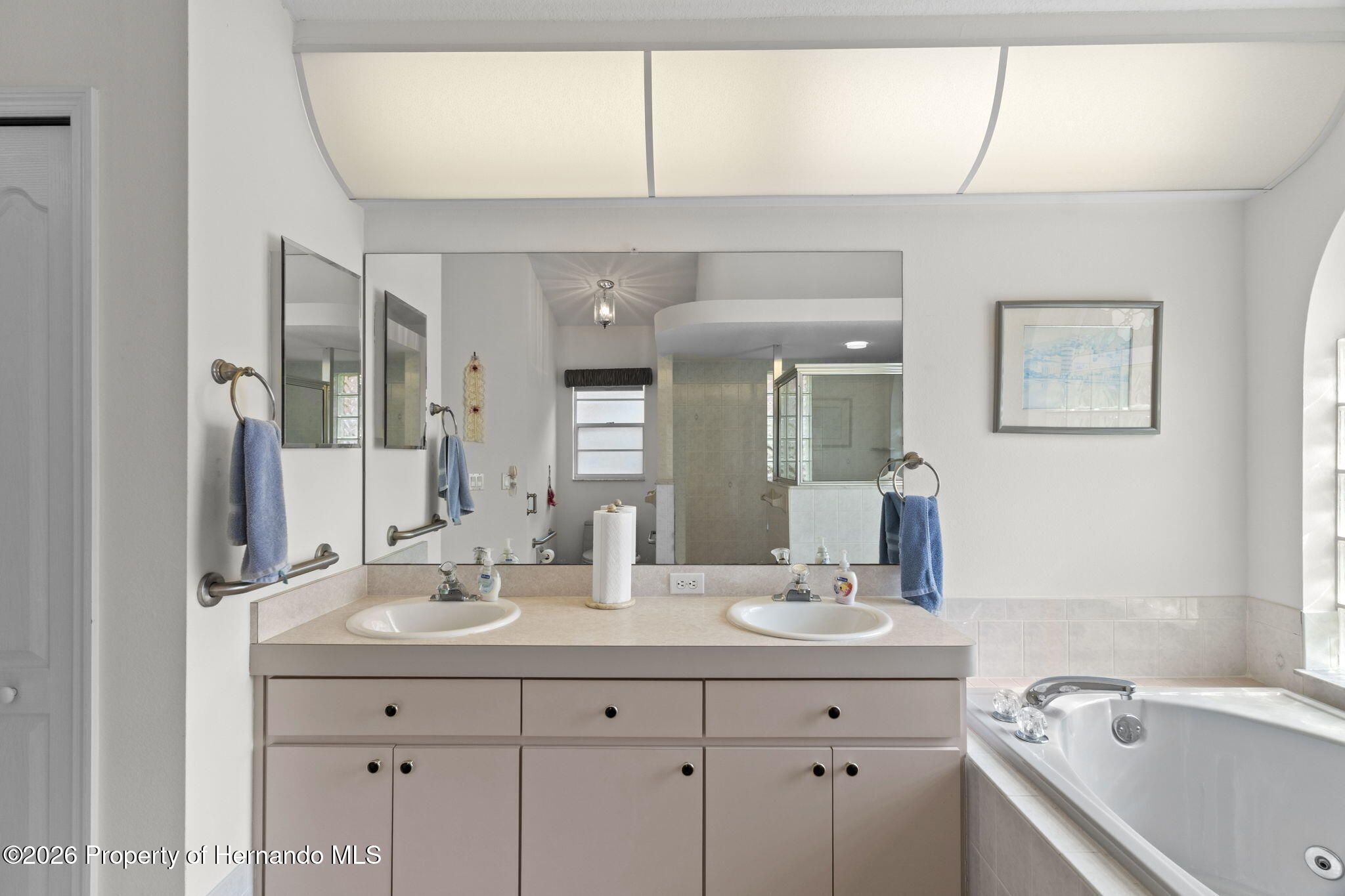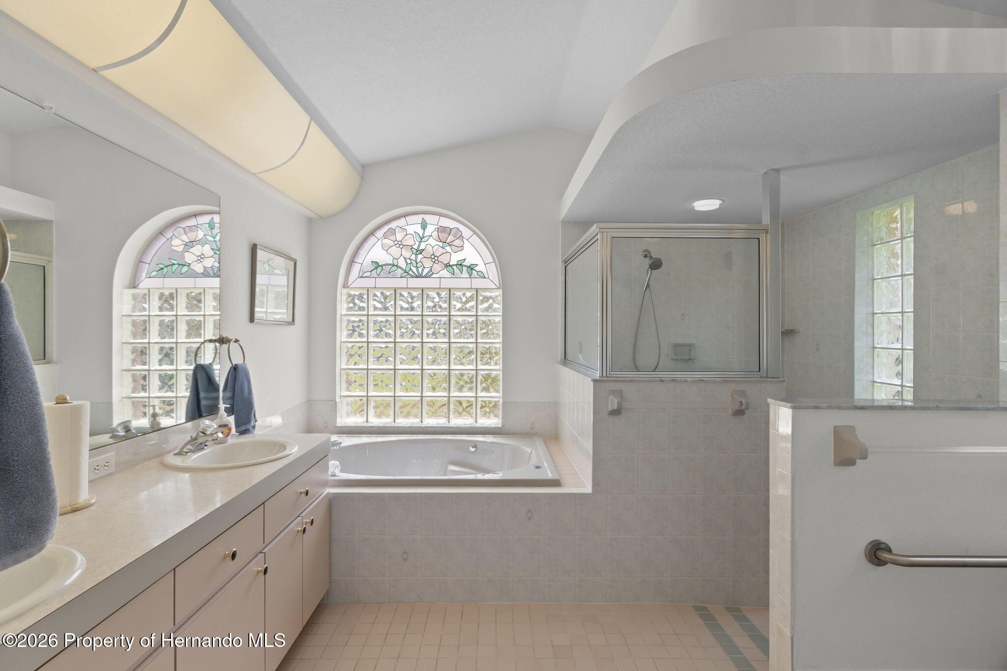 - Ceiling Fan(s), Double Vanity, Eat-in Kitchen, Entrance Foyer, Guest Suite, Jack and Jill Bath, Primary Bathroom -Tub with Separate Shower, Split Bedrooms, Vaulted Ceiling(s), Walk-In Closet(s), Split Plan
