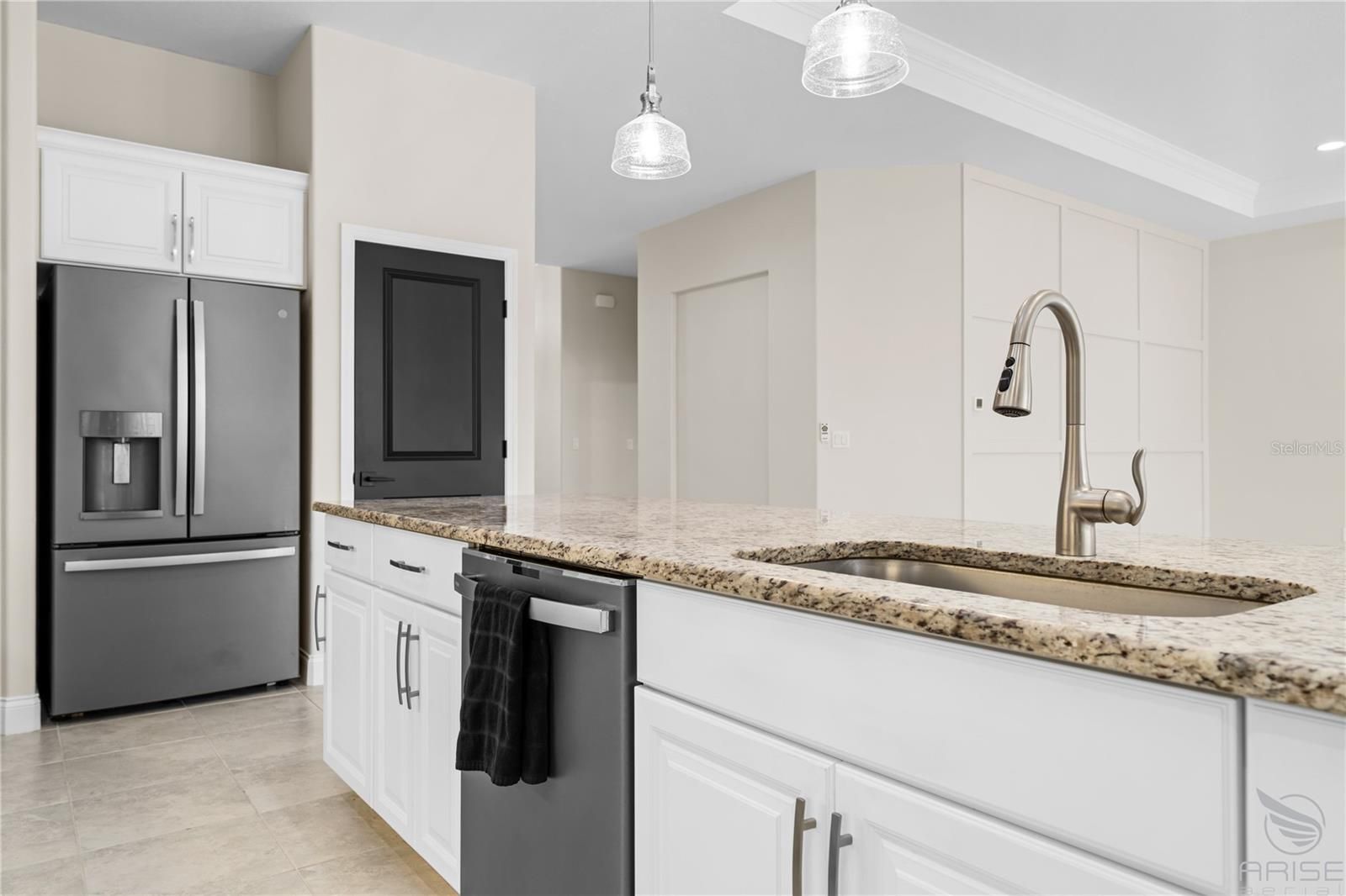 One or more photo(s) has been virtually staged. 3BD/2BA Pool Home in Venetian Bay – Corner Lot | Built in 2020. Beautiful Sabal floor plan by Paytas Homes with added square footage from the original plan, located in the sought-after Palms subdivision of Venetian Bay. This 3-bed, 2-bath home offers 2,214 sq ft of interior living space, approximately 200 sq ft more than the standard Sabal floor plan including a larger master suite, garage, and covered lanai. Situated on a prime corner lot just 15 minutes from the beach, this home features 10-ft ceilings, tray ceilings, and a bright, open layout with designer touches throughout. Interior upgrades include crown molding, custom woodwork, transom windows, and all solid-surface floors and countertops. The kitchen is a showstopper with granite countertops, GE appliances, and a spacious pantry. The expanded master retreat includes a walk-in closet, garden tub, double vanities, and walk-in shower. Step outside to your private screened pool with solar heating, water features, and app-based control for ultimate convenience. Additional features include WIFI-enabled garage door with battery backup, and Energy-efficient insulation. Meticulously maintained and move-in ready—why wait to build when this upgraded model is ready now?