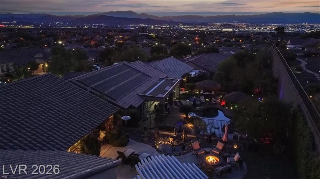 Welcome to this 2,190 sqft Montgomery model featuring 3 true bedrooms, 2 bathrooms & Stunning VIEWS in Sun City Anthem! The private primary suite boasts laminate wood flooring, plantation shutters, glass slider doors with patio access, spa-like bath with Roman tub, separate shower, infrared sauna, custom walk-in closet & extra storage. Enjoy breathtaking city & mountain VIEWS from the family room & the oversized backyard (fully fenced) with custom stoned built-in BBQ island, sunken Jacuzzi, gas fire pit & covered patio—perfect for entertaining. The renovated kitchen offers Kitchen Aid SS appliances, granite counters, white cabinetry with pullouts & pantry. Upgrades include LVP flooring, surround sound, crown molding, custom lighting, Alkaline water system, spacious laundry room with utility sink & flex space. Newer Trane A/C (2024), Air-cooled 2+ car garage(room for a GOLF cart)features epoxy floors, storage cabinets & overhead racks.Endless community amenities in Sun City Anthem.