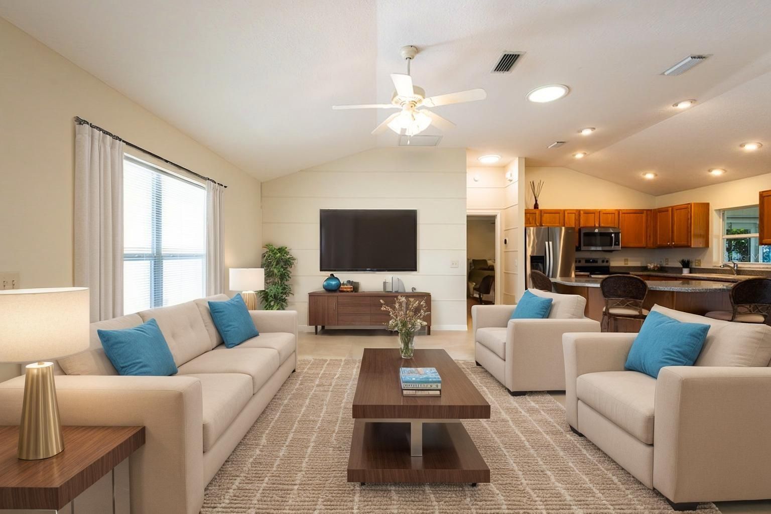 One or more photo(s) has been virtually staged. AGENTS - PLEASE VIEW REALTOR REMARKS IN THE MLS. Welcome to this stunning 3-bedroom, 2-bathroom home located in the Villages of Glenwood, where comfort meets style in a generous 1,404 square foot well-maintained home. As you step inside, you'll be greeted by a bright and airy open-concept layout that seamlessly blends living, dining, and kitchen spaces, enhanced by two SOLAR TUBES that infuse the living room with delightful natural sunlight. The heart of the home features very high ceilings with recessed lighting and the kitchen comes with BRAND NEW STAINLESS STEEL APPLIANCES making meal preparation an enjoyable experience. NEW INTERIOR PAINT sets a sophisticated tone throughout, complimented by new smoke and carbon monoxide alarms for your peace of mind. You'll find NO CARPET throughout the entire home! A luxurious primary bedroom awaits, complete with an en-suite bathroom that boasts a thoughtfully separated lavatory for added privacy. The FULLY ENCLOSED LARGE HEATED AND COOLED LANAI offers an ideal retreat or space for entertaining, while the newer roof and hot water heater ensure reliability for years to come. Additional highlights like a compact roll screen door at the entrance and stylish awnings enhance both functionality and charm in this delightful home. Take pleasure in the privacy afforded by the thick vegetation ensuring a tranquil, quiet setting. The garage door comes with a privacy screen door and utility sink to add ease to your daily routine. Enjoy the lush greenery year-round with the property's built in sprinkler system. This home is close to all the action in The Villages, including Savannah Recreation Center, Saddlebrook Softball Fields, Villages Polo Fields, Glenview Country Club and many shopping, dining and entertainment venues. To truly appreciate the unique details of this home, contact your agent to schedule a showing today! Offers may be entered ONLINE through Monday, December 8, 2025 at 2:00 pm. AT SELLER'S DISCRETION, A SUBMISSION MAY BE ACCEPTED AT ANY TIME.