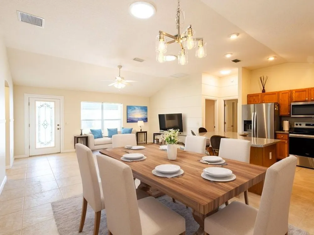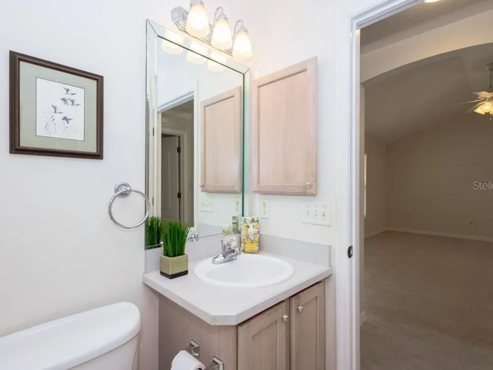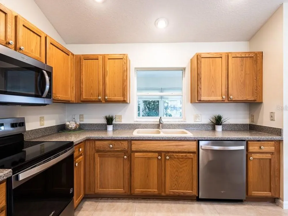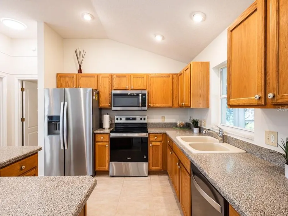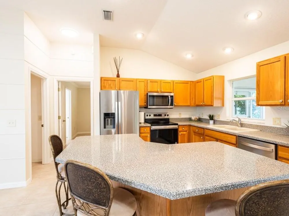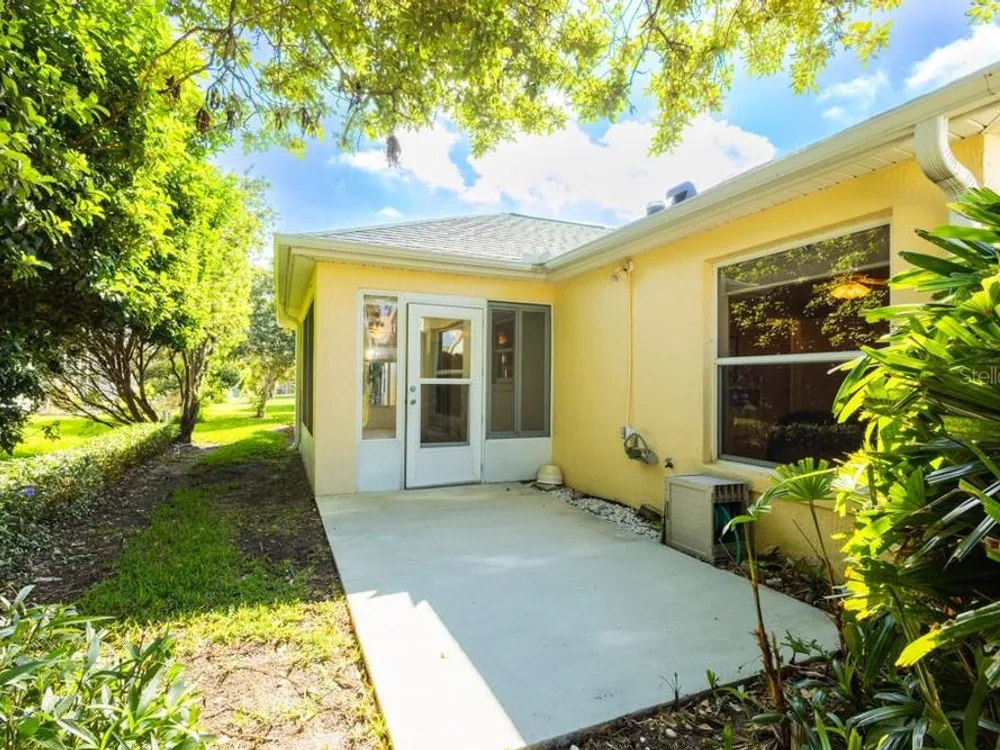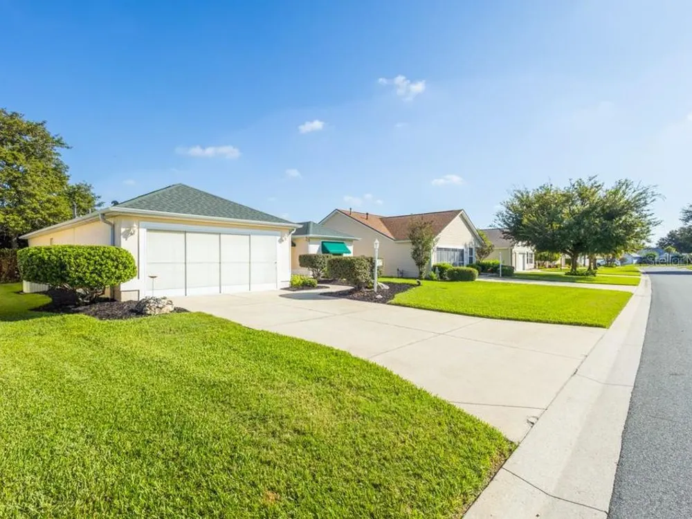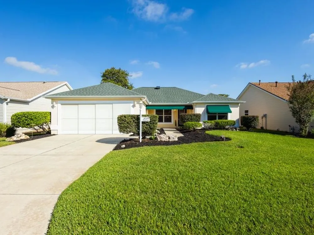 One or more photo(s) has been virtually staged. **CHECK OUT THE 3D VIRTUAL TOUR** Welcome to this stunning 3-bedroom, 2-bathroom home located in the Villages of Glenwood, where comfort meets style in a generous 1,404 square foot well-maintained home. As you step inside, you'll be greeted by a bright and airy open-concept layout that seamlessly blends living, dining, and kitchen spaces, enhanced by two SOLAR TUBES that infuse the living room with delightful natural sunlight. The heart of the home features very high ceilings with recessed lighting and the kitchen comes with BRAND NEW STAINLESS STEEL APPLIANCES making meal preparation an enjoyable experience. NEW INTERIOR PAINT sets a sophisticated tone throughout, complimented by new smoke and carbon monoxide alarms for your peace of mind. You'll find NO CARPET throughout the entire home! A luxurious primary bedroom awaits, complete with an en-suite bathroom that boasts a thoughtfully separated lavatory for added privacy. The FULLY ENCLOSED LARGE HEATED AND COOLED LANAI offers an ideal retreat or space for entertaining, while the newer roof and hot water heater ensure reliability for years to come. Additional highlights like a compact roll screen door at the entrance and stylish awnings enhance both functionality and charm in this delightful home. Take pleasure in the privacy afforded by the thick vegetation ensuring a tranquil, quiet setting. The garage door comes with a privacy screen door and utility sink to add ease to your daily routine. Enjoy the lush greenery year-round with the property's built in sprinkler system. This home is close to all the action in The Villages, including Savannah Recreation Center, Saddlebrook Softball Fields, Villages Polo Fields, Glenview Country Club and many shopping, dining and entertainment venues. To truly appreciate the unique details of this home, contact your agent to schedule a showing today!