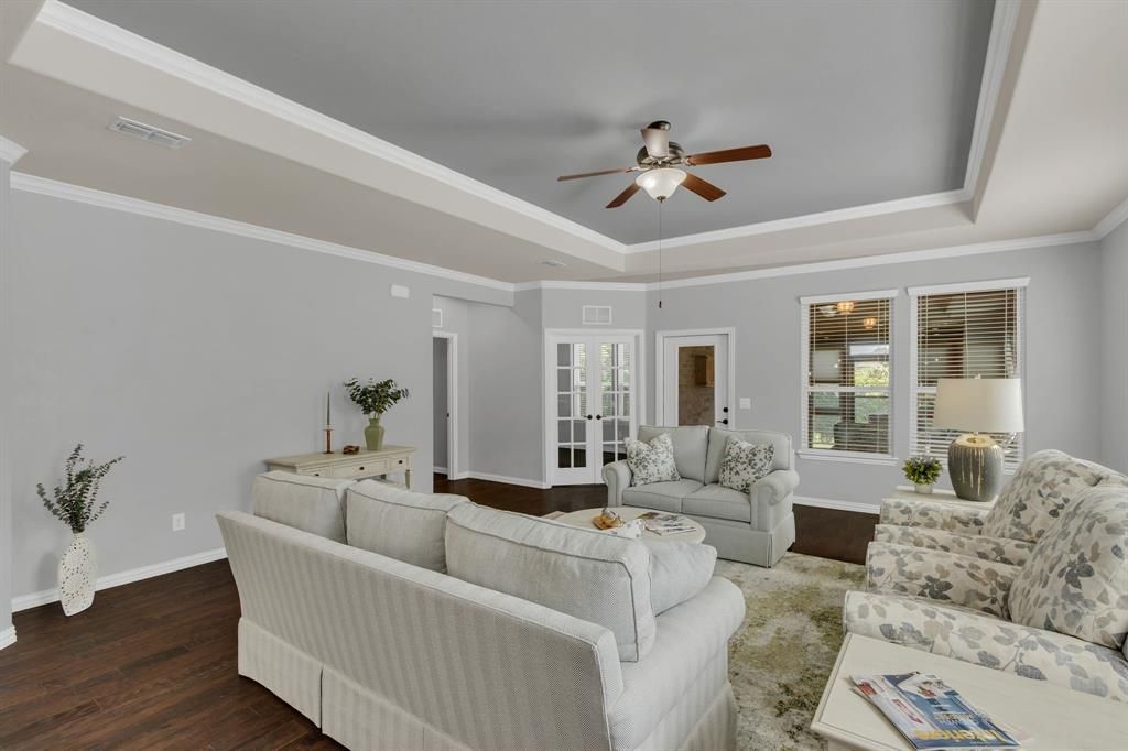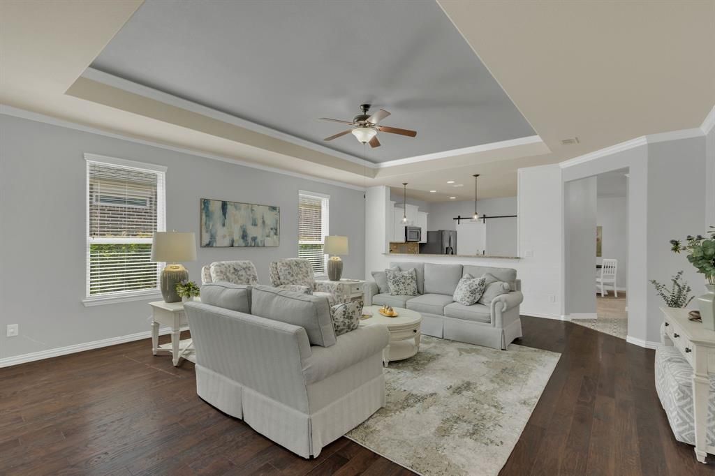 HUGE PRICE REDUCTION! ; ACT QUICKLY SO YOU CAN BE ALL MOVED IN TO ENJOY THE HOLIDAYS. Welcome to 305 Balboa Court, a Private Retreat in Frisco Lakes by Del Webb Nestled in a vibrant 55+ active adult community on Lake Lewisville. This beautifully updated home with an office is perfectly situated on an over sized cul-de-sac lot backing to a tranquil nature preserve. With no rear neighbors & lush grassy areas on the side, you'll enjoy the peace & privacy of your own personal sanctuary. Step inside to a flowing floor plan with fresh designer paint, giving the home a soothing, cohesive feel. The chef-inspired kitchen features bright white cabinetry, granite counter tops, a spacious island, & an extended bar that opens to the inviting living area. The enclosed outdoor living area is a crown jewel of this home—with an electric fireplace, heating units, ceiling fans, & fully operable windows. Whether you’re watching your favorite sports teams or enjoying a quiet evening, this space is designed for year-round comfort. Thoughtful additions like a dog door leading into both the office and backyard make it as practical as it is charming. Enjoy tray ceilings, hardwood floors in the living areas, & tile in wet areas, plus cool sliding doors that add character and functionality in separating the kitchen & laundry room & the spa-like primary bath from the serene owner’s suite overlooking the private backyard. Guests will love the privacy of the front-facing bedroom & full bath. Frisco Lakes is loaded with amenities including an 18-hole championship golf course, three fitness centers, indoor & outdoor pools, pickle ball, tennis courts, and hundreds of clubs and social activities. If it’s your first time, prepare to fall in love. Come see it today—your private retreat awaits! SQUARE FEET TOTAL DOES NOT INCLUDE THE ENCLOSED OUTDOOR LIVING AREA WITH AROUND 230 SQUARE FEET.