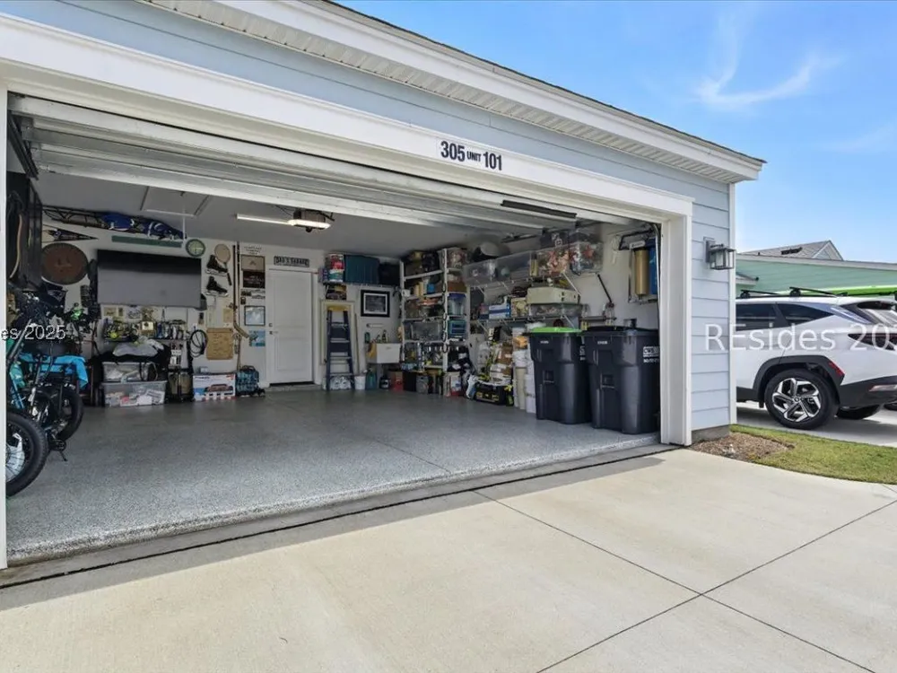 Your Slice of Paradise Awaits in Latitude Margaritaville! Relax and unwind in this beautifully upgraded cottage home, perfectly situated on a prime lot with sweeping, serene landscape views. From the moment you step inside, you're welcomed by a sense of warmth and comfort that makes this home truly special. The gourmet kitchen is a chefs dream, featuring designer countertops, 42-inch soft-close cabinets with elegant crown molding, under-cabinet lighting, a classic subway tile backsplash, and double ovens, perfect for entertaining or enjoying a quiet night in. Both bathrooms exude spa-like luxury with seamless glass showers, floor-to-ceiling tile, and upgraded quartz countertops with undermount square sinks. Thoughtful upgrades continue into the garage, which includes a smart garage door opener, basin sink, shelving and cabinetry, a water filtration system, whole-home surge protector, and pull-down stairs to an insulated, floored attic coffering plenty of extra storage space. Both the garage and lanai feature a durable, sleek epoxy finish. With high-end finishes, smart upgrades, and an unbeatable location, this is more than a home, it's your own personal paradise in the heart of Latitude Margaritaville.