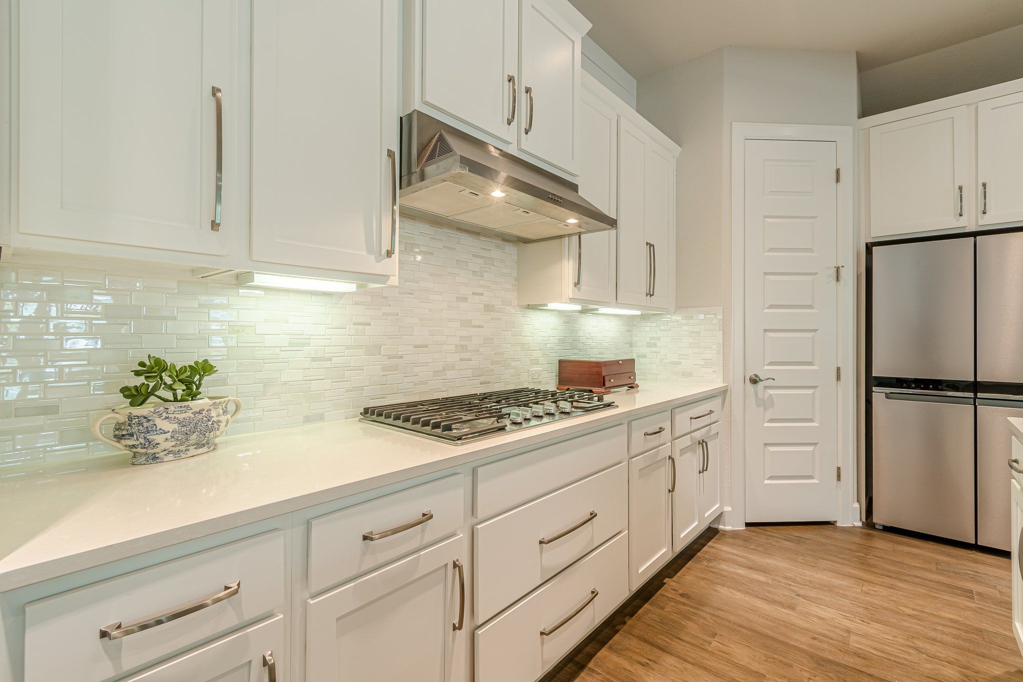 - Built-In Oven, Dishwasher, Gas Cooktop, Disposal, Gas Water Heater, Microwave, Oven, Range Hood, Stainless Steel Appliance(s)