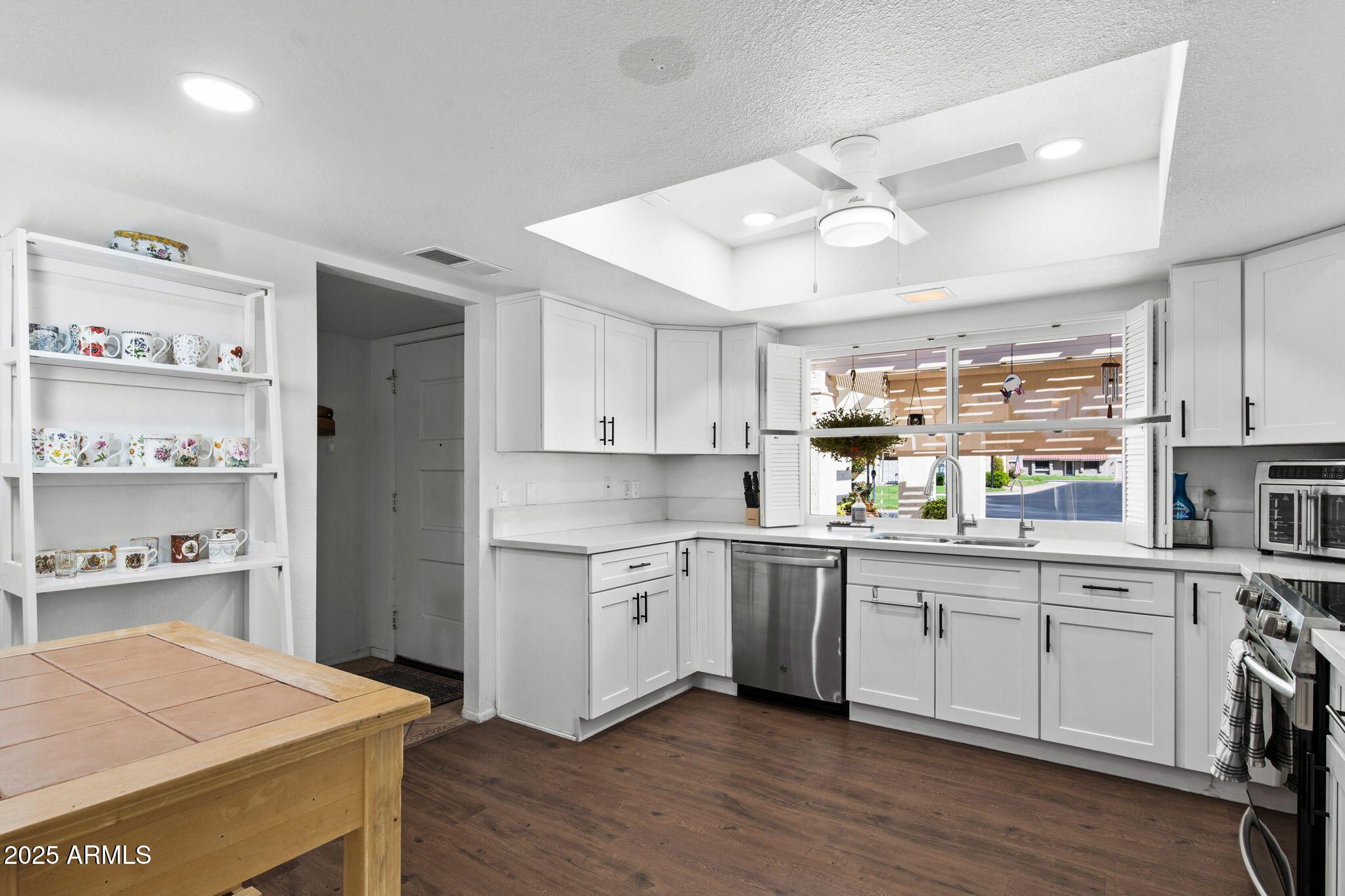 Beautifully Updated Home! This stunning 3 bd/2 ba home has been completely updated and is move - in ready! Enjoy brand - new flooring throughout, a spacious kitchen with quartz countertops, all - new cabinets, and appliances. The bathrooms feature tile walk - in shower, quartz vanities, and tubular skylight for natural light. Additional upgrades include new dual pane windows and sliding doors, new blinds, sunshades, modern ceiling fans with lights, a new water heater and pump, water softener and a large two car garage. With two inviting front patios and a private back patio, this homes perfect for relaxing and entertaining. Located in the Premier Active Adult Community of Leisure World, where you'll enjoy 36 holes of golf, swimming pools, pickle ball, fitness center, and so much more!