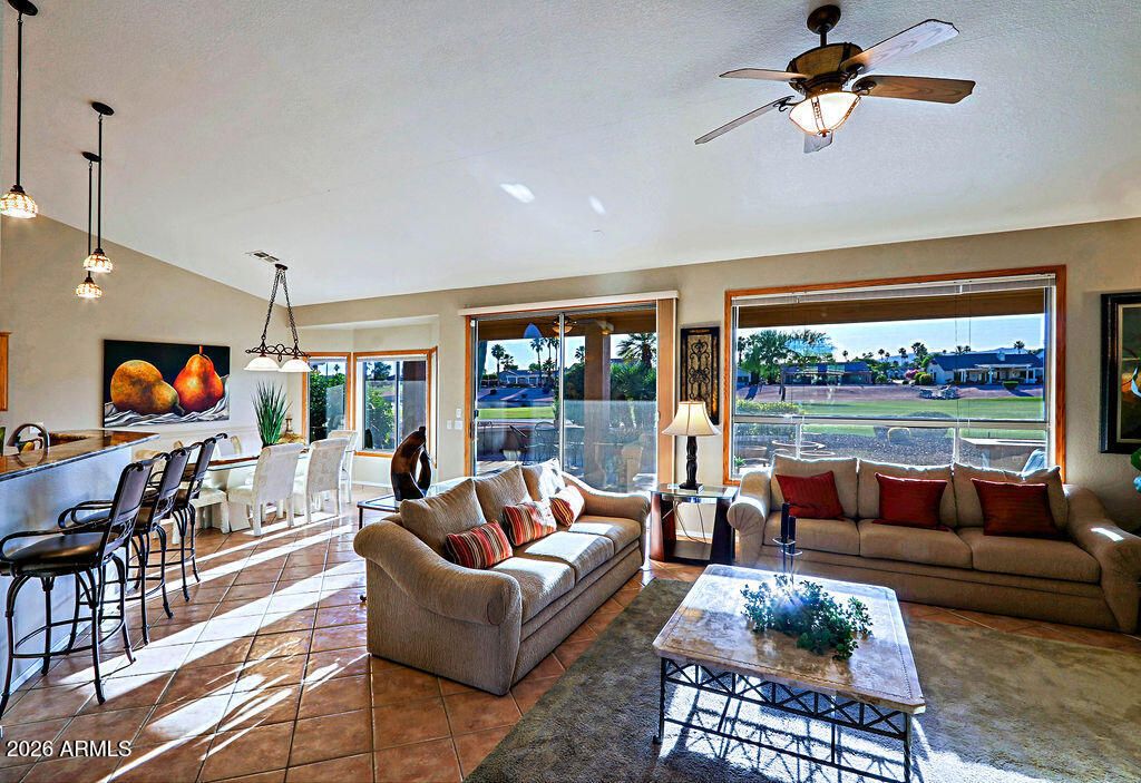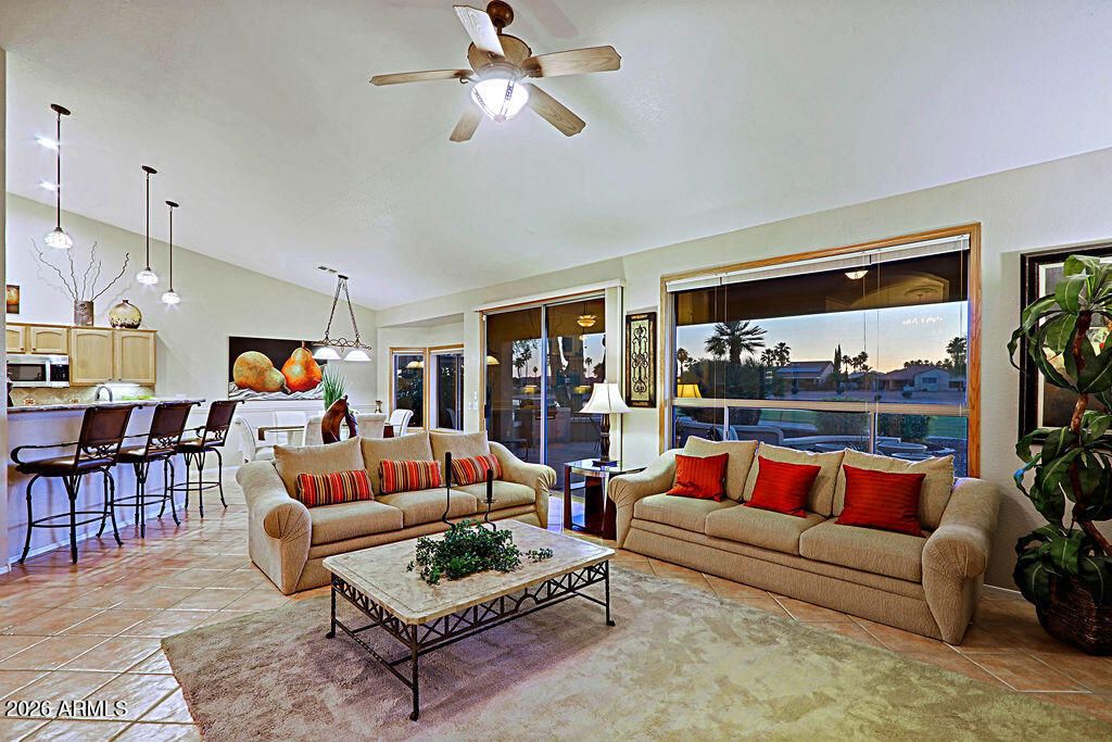 Beautiful golf course home featuring an expansive patio overlooking the 11th fairway of the East Course, with stunning sunsets and sweeping views of the mountains and lake. Mature landscaping enhances the serene setting. Ideally located near the Tuscany Falls clubhouse complex, this home offers both convenience and resort-style living. The great room floor plan allows for effortless, gracious entertaining. Highlights include neutral tones, granite countertops, vaulted ceilings, and more. The oversized garage provides ample storage with built-in cabinets. HVAC updated in 2024. Enjoy a true resort-style lifestyle filled with amenities & activities for every interest. With 54 holes of golf, pickleball, tennis, two fitness centers, restaurants, a theater, a Creative Arts Center, plus countless clubs, there's always something to do. Come experience the energy and connection of Pebblecreek. Furnishings, Golf Cart & Artwork available by separate bill of sale.