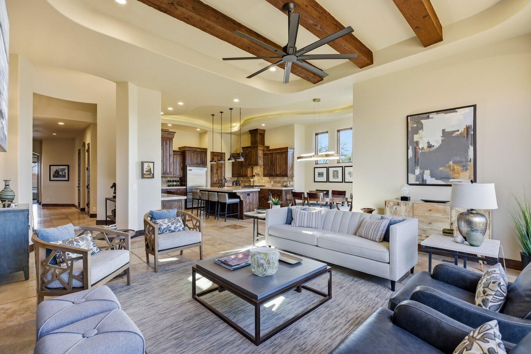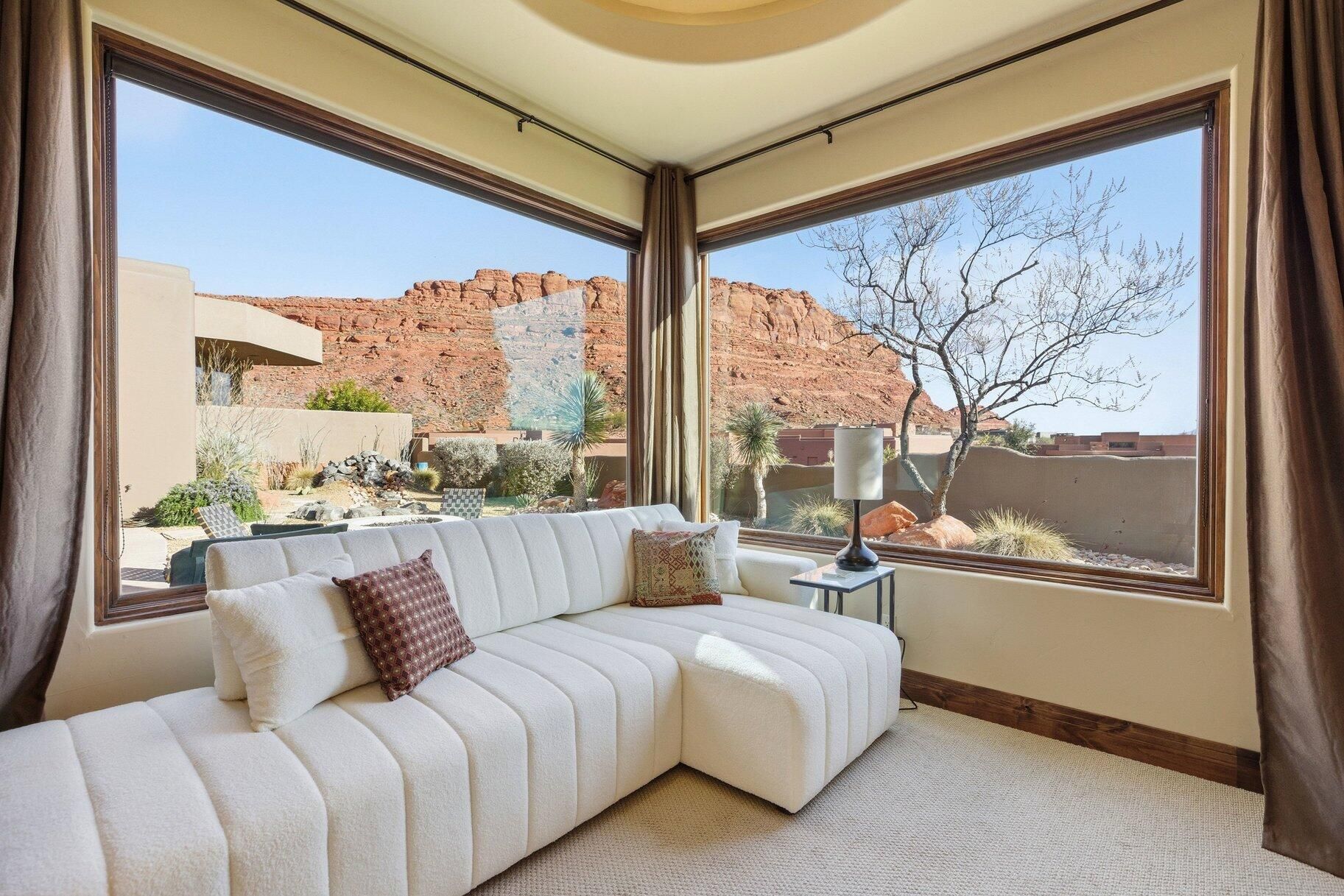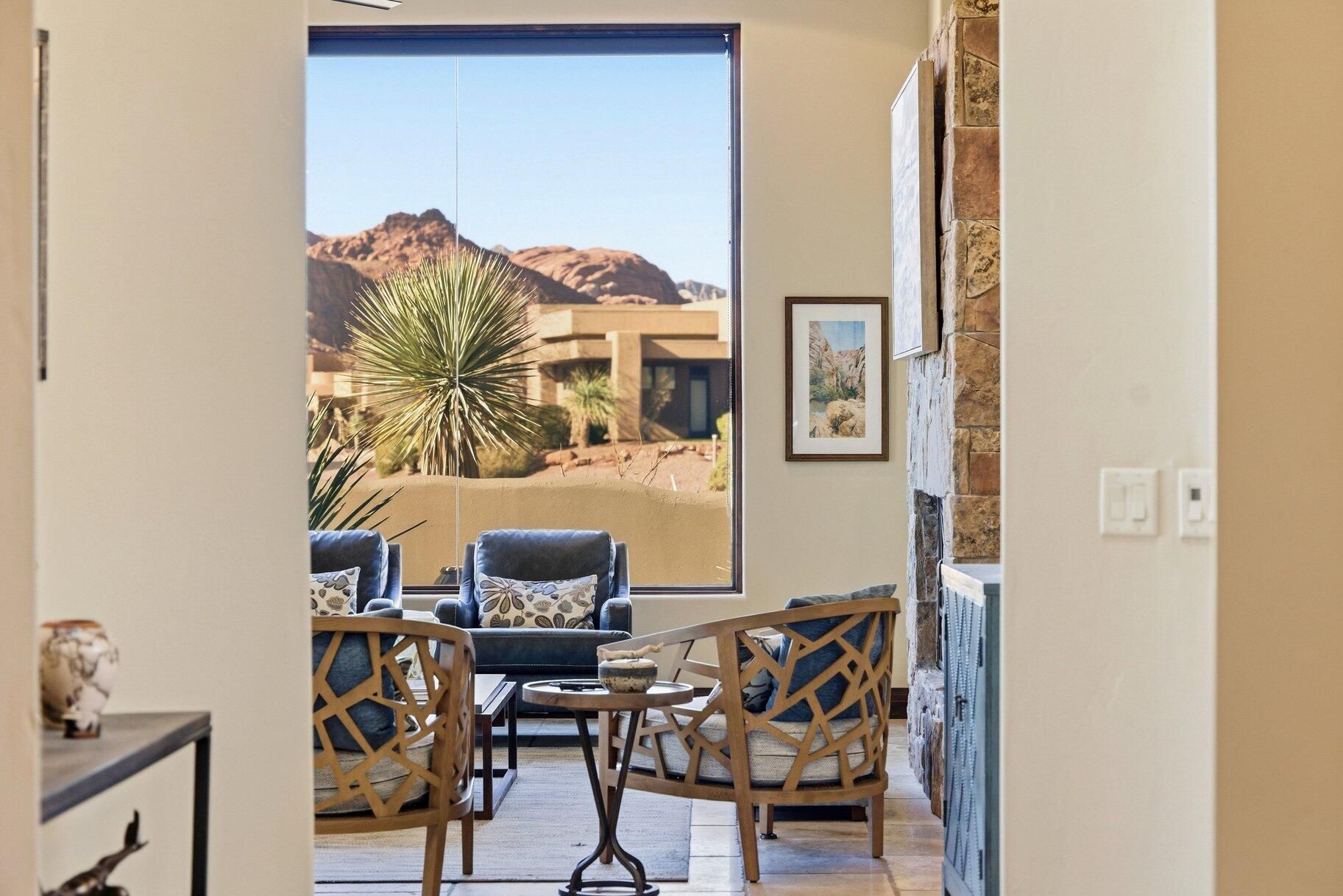 This exceptional home blends timeless architecture with extensive modern upgrades, all set against breathtaking red rock views from both the front and back of the property. A grand circular entry welcomes you into a residence defined by quality craftsmanship and refined finishes. Inside, you'll find solid wood doors throughout, rich wood beams both interior and exterior, accent ceiling details, and elegant travertine flooring that create warmth and architectural character. The chef's kitchen is beautifully appointed with stunning quartzite countertops, Viking appliances, solid wood cabinetry, and a walk-in pantry, all enhanced by thoughtfully updated lighting. Many significant upgrades have been completed since 2020, including a new roof membrane, exterior paint, two water heaters, a whole-house water filtration system, a soft water system, and most windows replaced. Designed for seamless indoor-outdoor living, the property features a large covered back patio overlooking the red rock views, along with a backyard fire pit and tranquil water feature. The driveway and walkways have been upgraded with a non-skid urethane coating, and professionally finished epoxy garage floors. The casita is complete with a full bath, mini kitchen, private entrance, and its own red rock views. The home also offers a private gated courtyard, enhancing both charm and privacy. Ideally located just minutes from Snow Canyon State Park, Tuacahn Amphitheatre, and Black Desert Resort, this home offers convenient access to hiking, world-class performances, golf, dining, and luxury amenities. The Cliffs neighborhood also offers the option to opt in to the Entrada Social Membership at Entrada at Snow Canyon Country Club, providing additional lifestyle and recreational opportunities. In addition, you are within a short drive to some of the Southwest's most iconic destinations, including Zion National Park, Bryce Canyon National Park, and Grand Canyon National Park. Many significant upgrades have been completed since 2020, including a new roof membrane, exterior paint, two water heaters, a whole-house water filtration system, a soft water system, and most windows replaced. Designed for seamless indoor-outdoor living, the property features a large covered back patio overlooking the red rock views, along with a backyard fire pit and tranquil water feature. The driveway and walkways have been upgraded with a non-skid urethane coating, and professionally finished epoxy garage floors. The casita is complete with a full bath, mini kitchen, private entrance, and its own red rock views. The home also offers a private gated courtyard, enhancing both charm and privacy. Owners enjoy access to the community pool, tennis courts, and clubhouse, with the option to join Entrada Country Club Social Membership. Ideally located just minutes from Snow Canyon State Park, Tuacahn Amphitheatre, and Black Desert Resort, this home offers convenient access to hiking, world-class performances, golf, dining, mountain biking and luxury amenities. In addition, you are within a short drive to some of the Southwest's most iconic destinations, including Zion National Park, Bryce Canyon National Park, and Grand Canyon National Park, making this an ideal primary residence or luxury retreat.