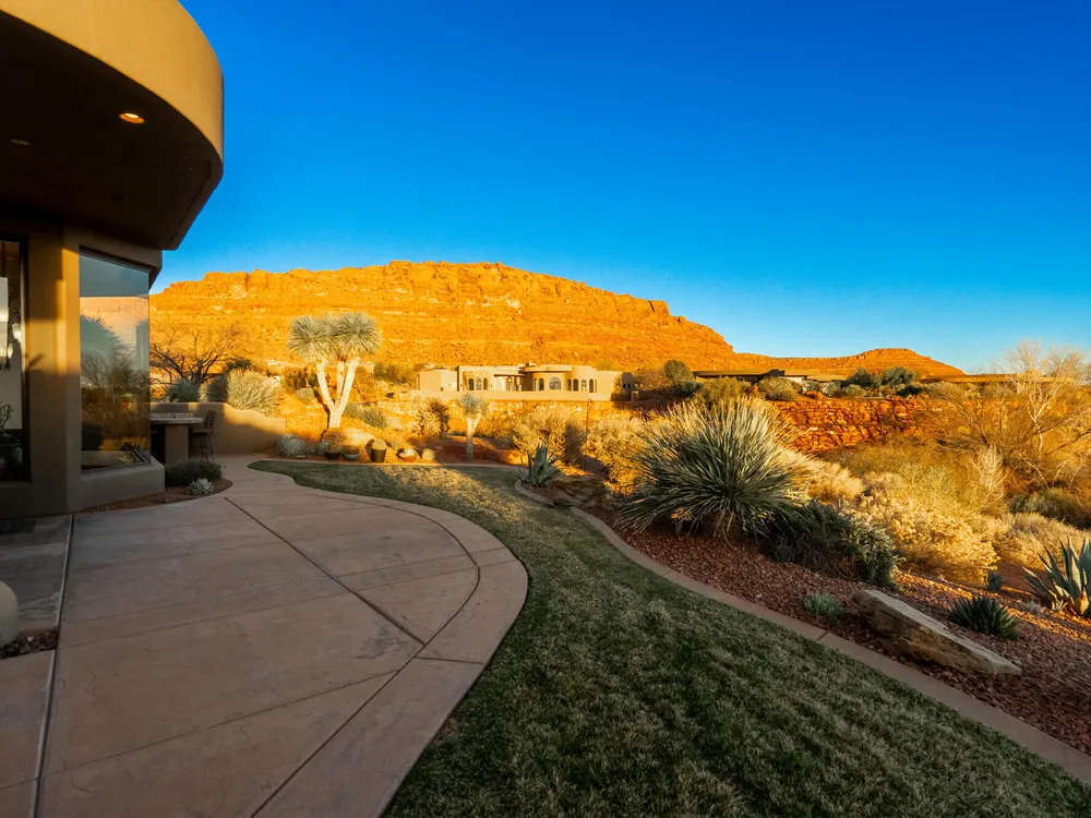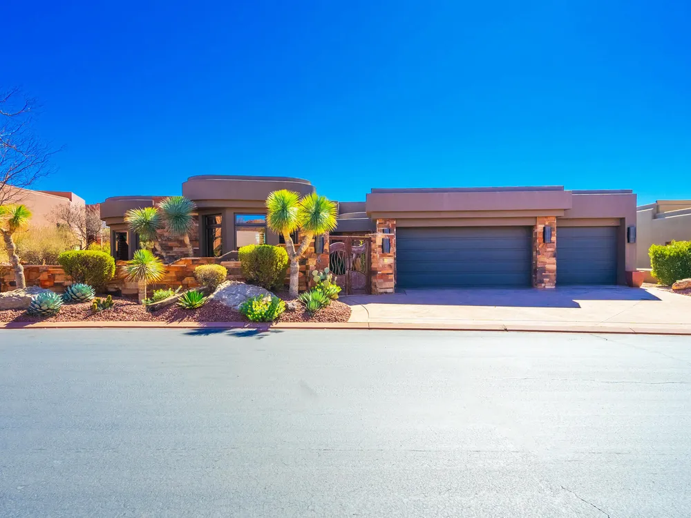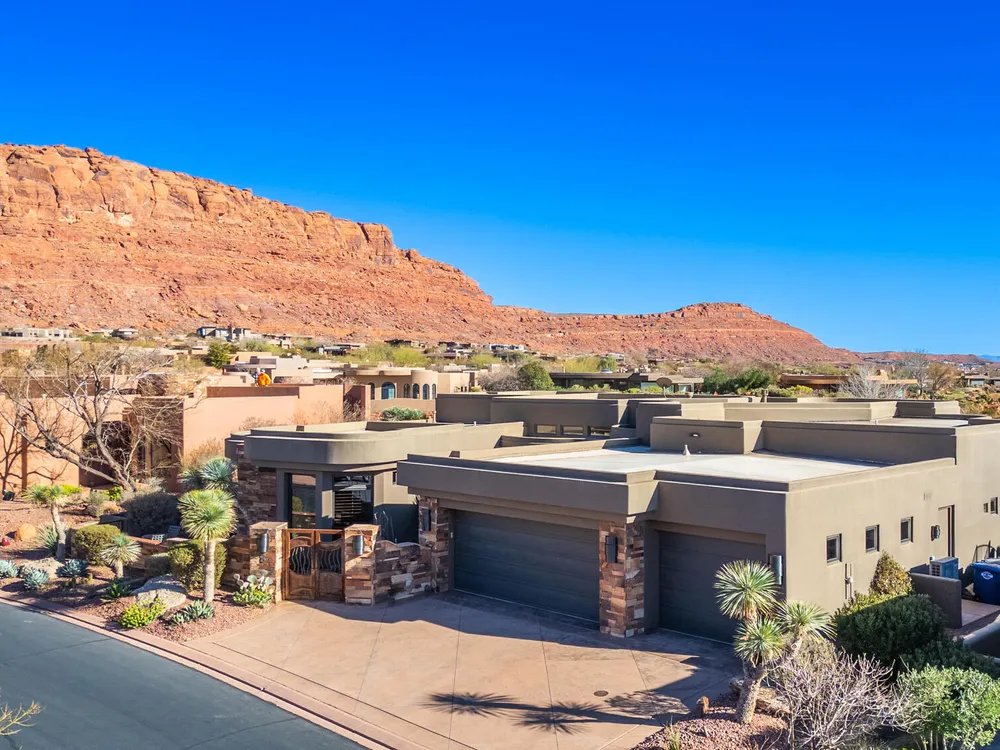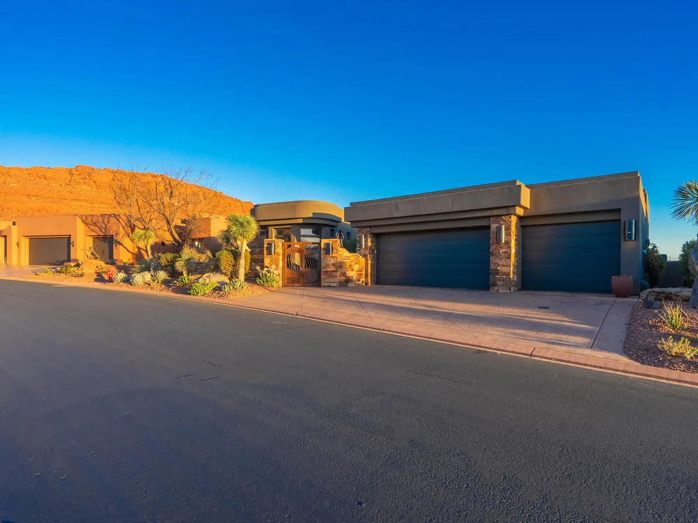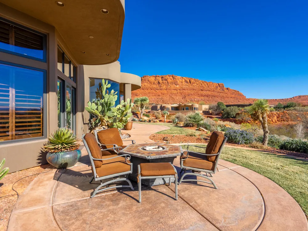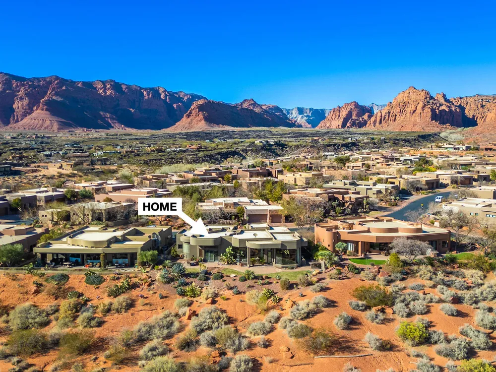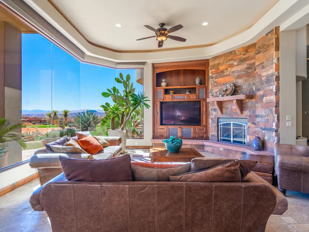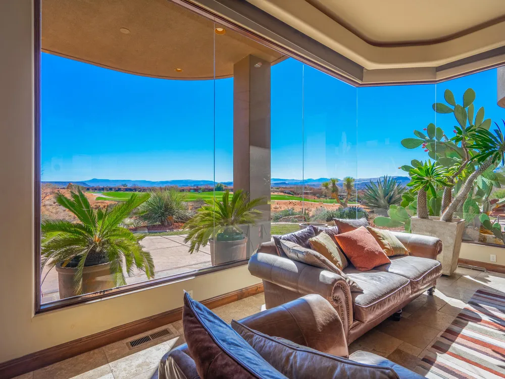 This is definitely a WOW home with STUNNING VIEWS of two fairways on the famous Entrada Golf Course! This home also boasts views of red rocks and Kachina Cliffs, Arizona Strip, Virgin River Gorge, and the western mountains from the main living area, dining area and kitchen, and master suite. Watch the shadows change on Red Mountain spanning around to Johnson Arch and the Scout Caves from the beautiful front courtyard. Amazing glass and wood front doors add to the luxury living and tasteful finishes of the home. As you enter, you will encounter those grand views again and the beauty of the main living area, stacked stone fireplace and entertainment center. The master suite also has floor to ceiling, wood clad, glass windows to enjoy the golf course and red rock views! Enjoy the ambience of stacked stone fireplace in master suite and wonderful master closet with access from garage to master bath and suite. Large master closet, too! The master bath has beautiful granite, large jetted tub and separate triple head shower to enjoy. The guest suites also enjoy privacy and access to the full bath on the east side of the home - separate from the main living area and master. WOW again on the executive office with wood floors and built-in book/trophy shelves with granite tops on lower cabinets. A closet has a safe, which is included in the price of the home. This area could be a wonderful craft room, too. The garage is extra deep and wide - plenty of room for toys and golf cart, along with 3 cars. FURNITURE INCLUDED. YOU HAVE TO EXPERIENCE THIS HOME AND VIEWS! Residents enjoy low HOA fees, which include access to a pool, tennis courts, and front yard maintenance. For those who join the Entrada Country Club, a variety of clubs and activities await, including pickle ball, tennis, swimming, yoga, and Pilates. Whether you're seeking outdoor adventures like hiking or exploring the area's breathtaking beauty, or simply wish to savor a meal at the on-site restaurant, Entrada offers something for everyone. It's a community where you can easily forge new friendships and create lasting memories. All property owners in The Cliffs of Entrada have the option to join the country club, which involves a monthly fee and an annual $800 food expense at the restaurant. Please note that golf membership is available at an additional cost.