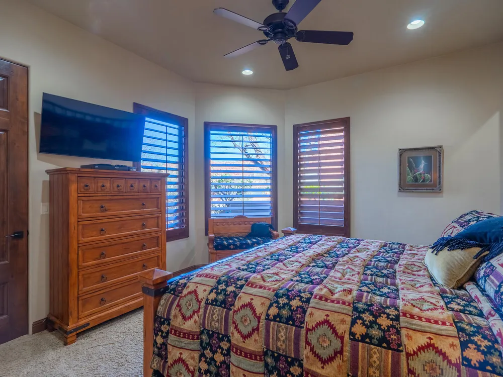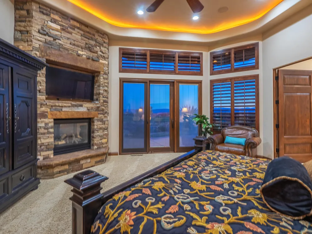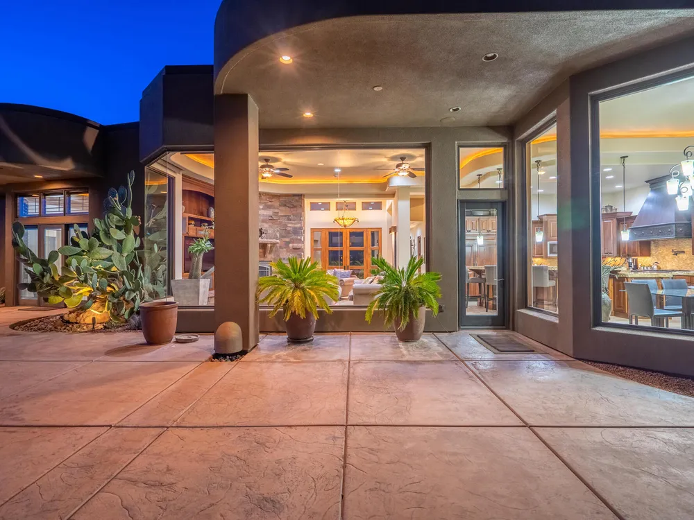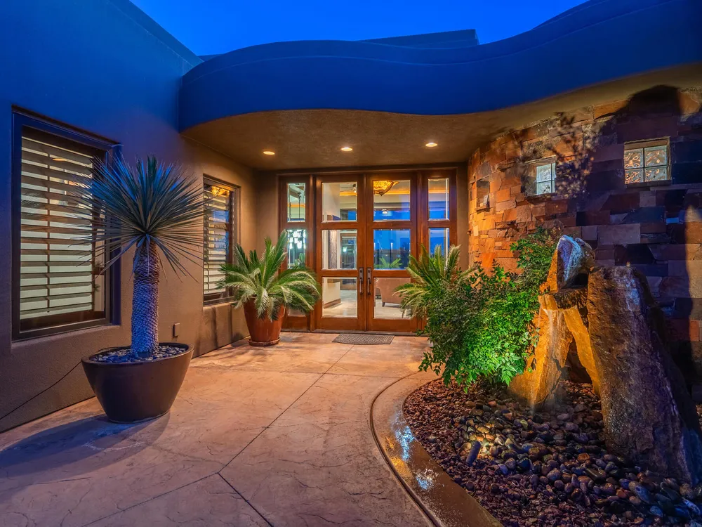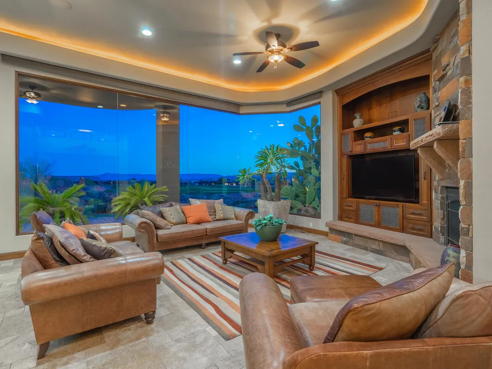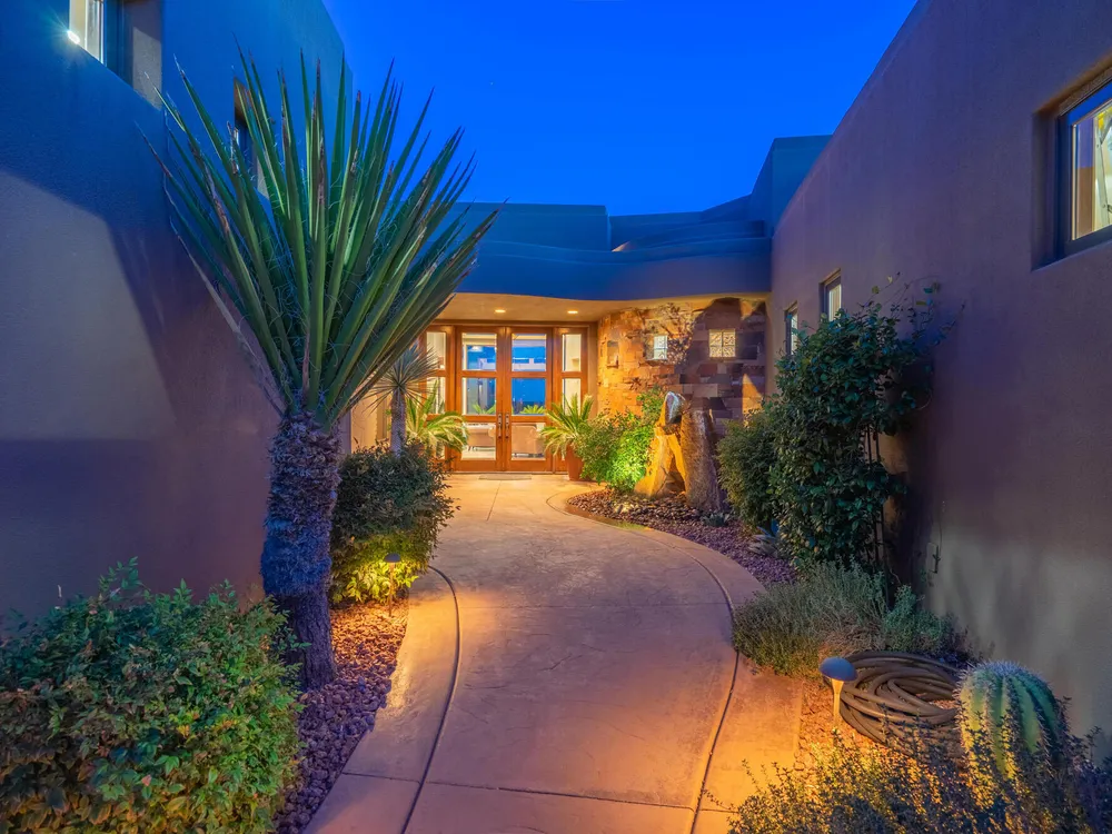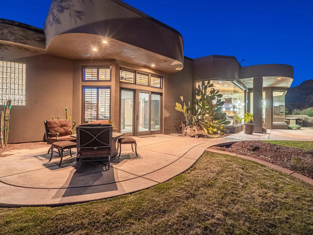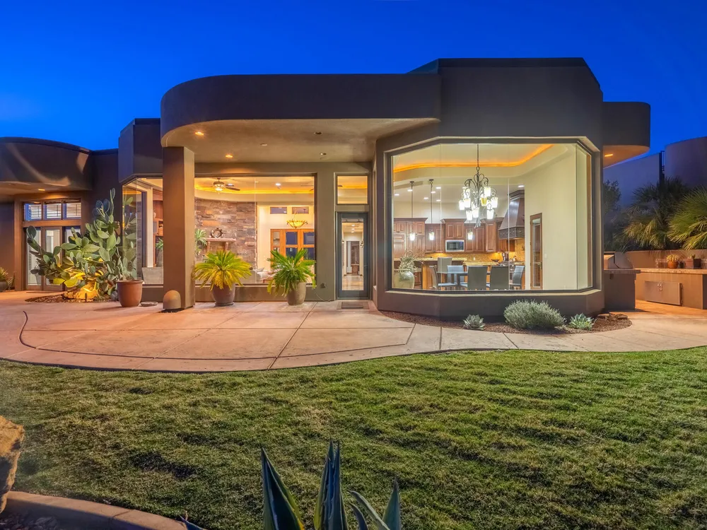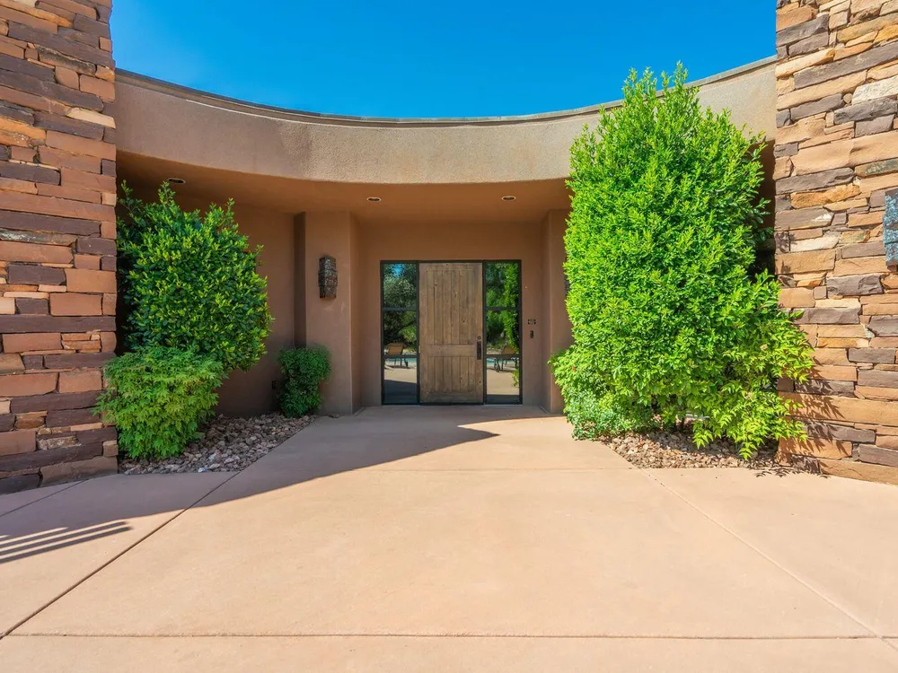 This is definitely a WOW home with STUNNING VIEWS of two fairways on the famous Entrada Golf Course! This home also boasts views of red rocks and Kachina Cliffs, Arizona Strip, Virgin River Gorge, and the western mountains from the main living area, dining area and kitchen, and master suite. Watch the shadows change on Red Mountain spanning around to Johnson Arch and the Scout Caves from the beautiful front courtyard. Amazing glass and wood front doors add to the luxury living and tasteful finishes of the home. As you enter, you will encounter those grand views again and the beauty of the main living area, stacked stone fireplace and entertainment center. The master suite also has floor to ceiling, wood clad, glass windows to enjoy the golf course and red rock views! Enjoy the ambience of stacked stone fireplace in master suite and wonderful master closet with access from garage to master bath and suite. Large master closet, too! The master bath has beautiful granite, large jetted tub and separate triple head shower to enjoy. The guest suites also enjoy privacy and access to the full bath on the east side of the home - separate from the main living area and master. WOW again on the executive office with wood floors and built-in book/trophy shelves with granite tops on lower cabinets. A closet has a safe, which is included in the price of the home. This area could be a wonderful craft room, too. The garage is extra deep and wide - plenty of room for toys and golf cart, along with 3 cars. FURNITURE INCLUDED. YOU HAVE TO EXPERIENCE THIS HOME AND VIEWS! Residents enjoy low HOA fees, which include access to a pool, tennis courts, and front yard maintenance. For those who join the Entrada Country Club, a variety of clubs and activities await, including pickle ball, tennis, swimming, yoga, and Pilates. Whether you're seeking outdoor adventures like hiking or exploring the area's breathtaking beauty, or simply wish to savor a meal at the on-site restaurant, Entrada offers something for everyone. It's a community where you can easily forge new friendships and create lasting memories. All property owners in The Cliffs of Entrada have the option to join the country club, which involves a monthly fee and an annual $800 food expense at the restaurant. Please note that golf membership is available at an additional cost.